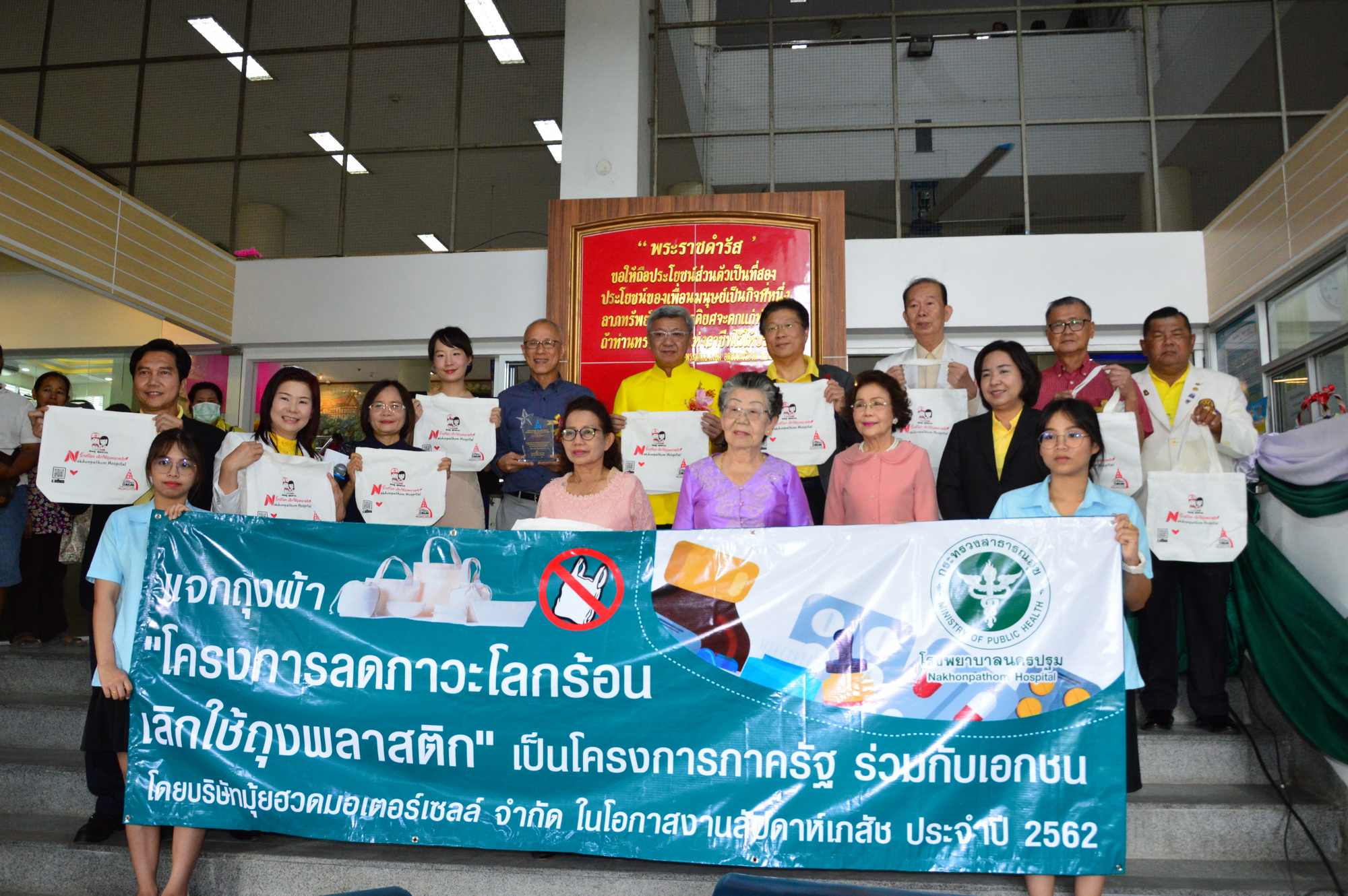 วันที่ 18 มิถุนายน 2562 ที่โรงพยาบาลนครปฐม อำเภอเมือง จังหวัดนครปฐม นายชาญนะ เอี่ยมแสง ผู้ว่าราชการจังหวัดนครปฐม เป็นประธานเปิดโครงการลดภาวะโลกร้อน เลิกใช้ถุงพลาสติก และงานสัปดาห์เภสัชกรรม “เภสัชกรอยู่ใกล้ มั่นใจ ใช้ยาปลอดภัย ” โดยนายวีรศักดิ์ ครองลาภเจริญ ผู้อำนวยการโรงพยาบาลนครปฐม กล่าวว่า กระทรวงสาธารณสุขได้ประกาศให้โรงพยาบาลเป็นมิตรกับสิ่งแวดล้อม โดยให้ประชาชนนำถุงผ้ามาใส่ยาเมื่อมารับบริการที่โรงพยาบาลทุกครั้ง เพื่อลดการใช้พลาสติก ลดภาวะโลกร้อน ทั้งนี้โรงพยาบาลนครปฐม และบริษัทมุ้ยฮวดมอเตอร์เซลล์ จำกัด ได้ร่วมกันจัดโครงการดังกล่าวขึ้น โดยมีกิจกรรมรณรงค์ลดการใช้ถุงพลาสติก และแจกถุงผ้าเพื่อรับยาแทนการใช้ถุงพลาสติก นอกจากนี้ได้จัดกิจกรรมงานสัปดาห์เภสัชกรรม ภายใต้คำขวัญว่า “เภสัชกรอยู่ใกล้ มั่นใจ ใช้ยาปลอดภัย” เพื่อรณรงค์ให้ผู้ป่วย ครอบครัว และชุมชนมั่นใจว่าหากมีเภสัชกรอยู่ใกล้แล้วจะได้รับการดูแลให้ใช้ยาได้อย่างปลอดภัย และยิ่งในกระแสที่ประชาชนมีความสนใจในประเด็นการใช้กัญชาทางการแพทย์ เภสัชกรก็พร้อมจะให้ความรี่ถูกต้องเกี่ยวกับเรื่องนี้ด้วยเช่นกัน