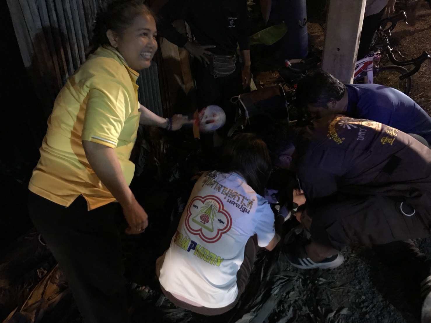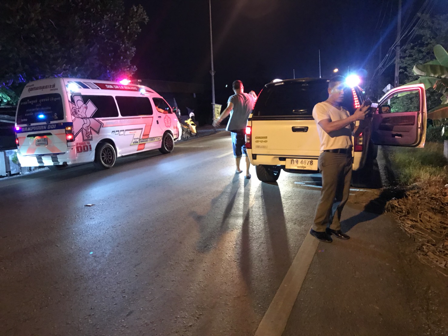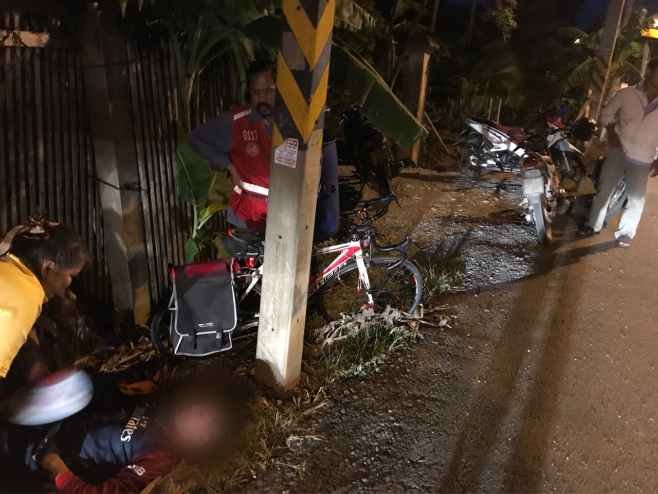 เบื้องต้นผู้ขับขี่รถจักรยายนยนต์ไม่ได้รับบาดเจ็บและยืนรอเจ้าหน้าที่ตำรวจแจ้งว่าตนขับมาตามถนนและมองไม่เห็นรถจักรยานจึงชนเข้าอย่างแรงทำให้มีผู้บาดเจ็บดังกล่าว