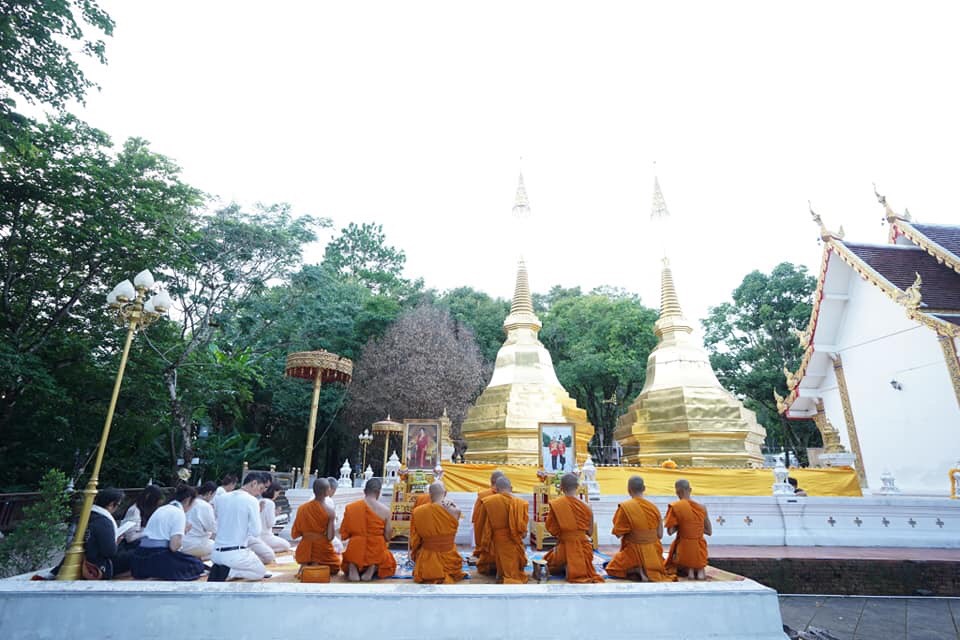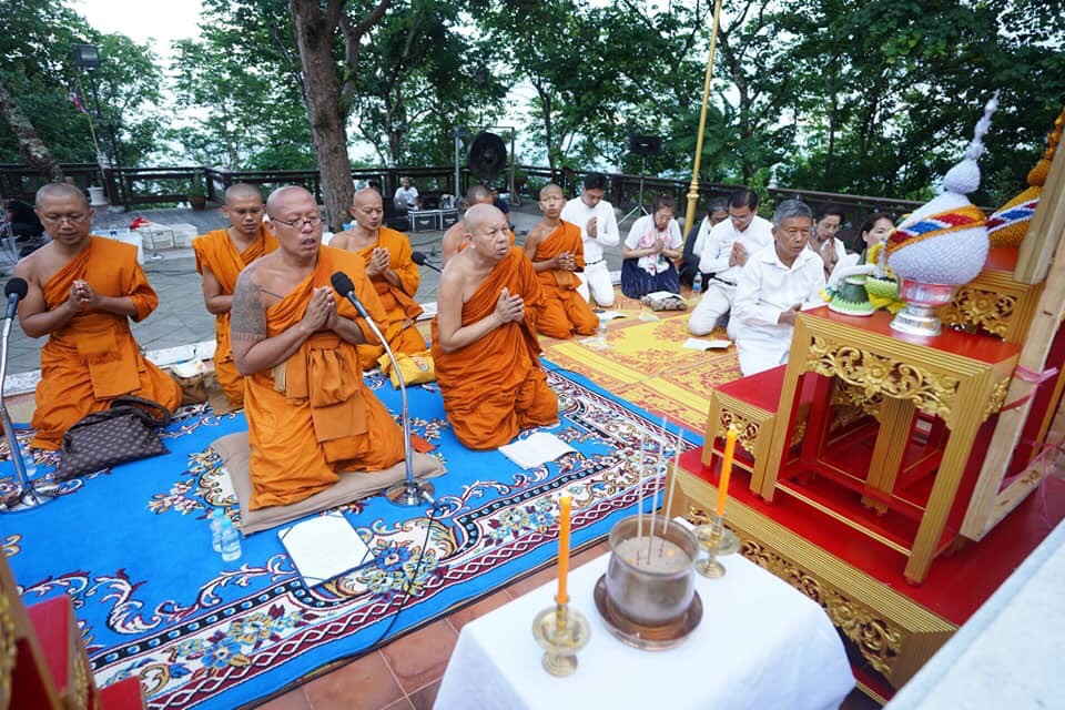 หลวงพี่น้ำฝนเจ้าอาวาสวัดไผ่ล้อม จ.นครปฐมนำโยม สวดเจริญพระพุทธมนต์ ณ พระธาตุแช่แห้ง-ช่อแฮ ประจำปี‘เถาะ-ขาล’