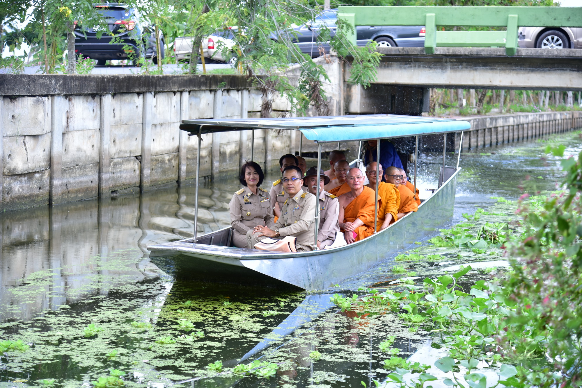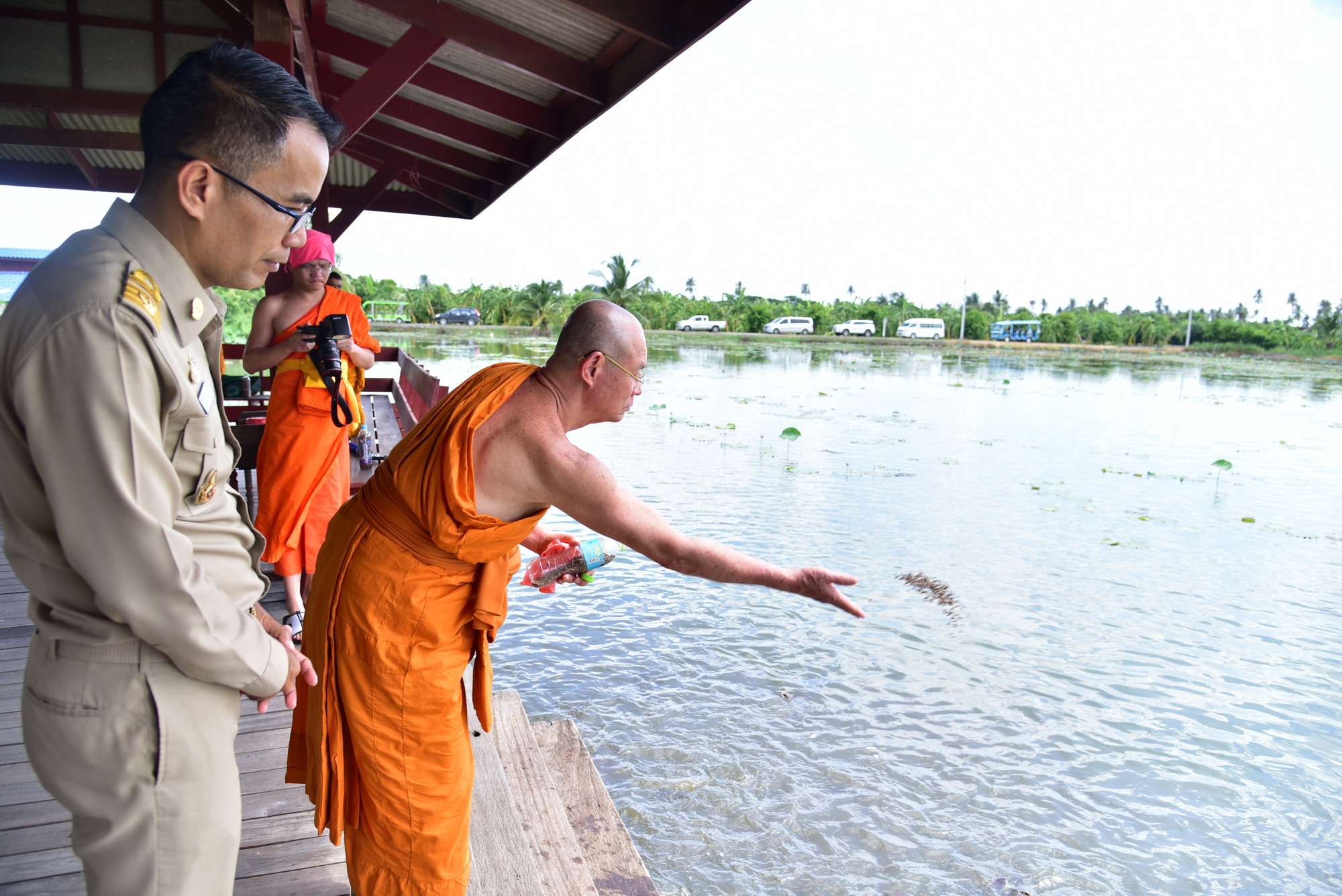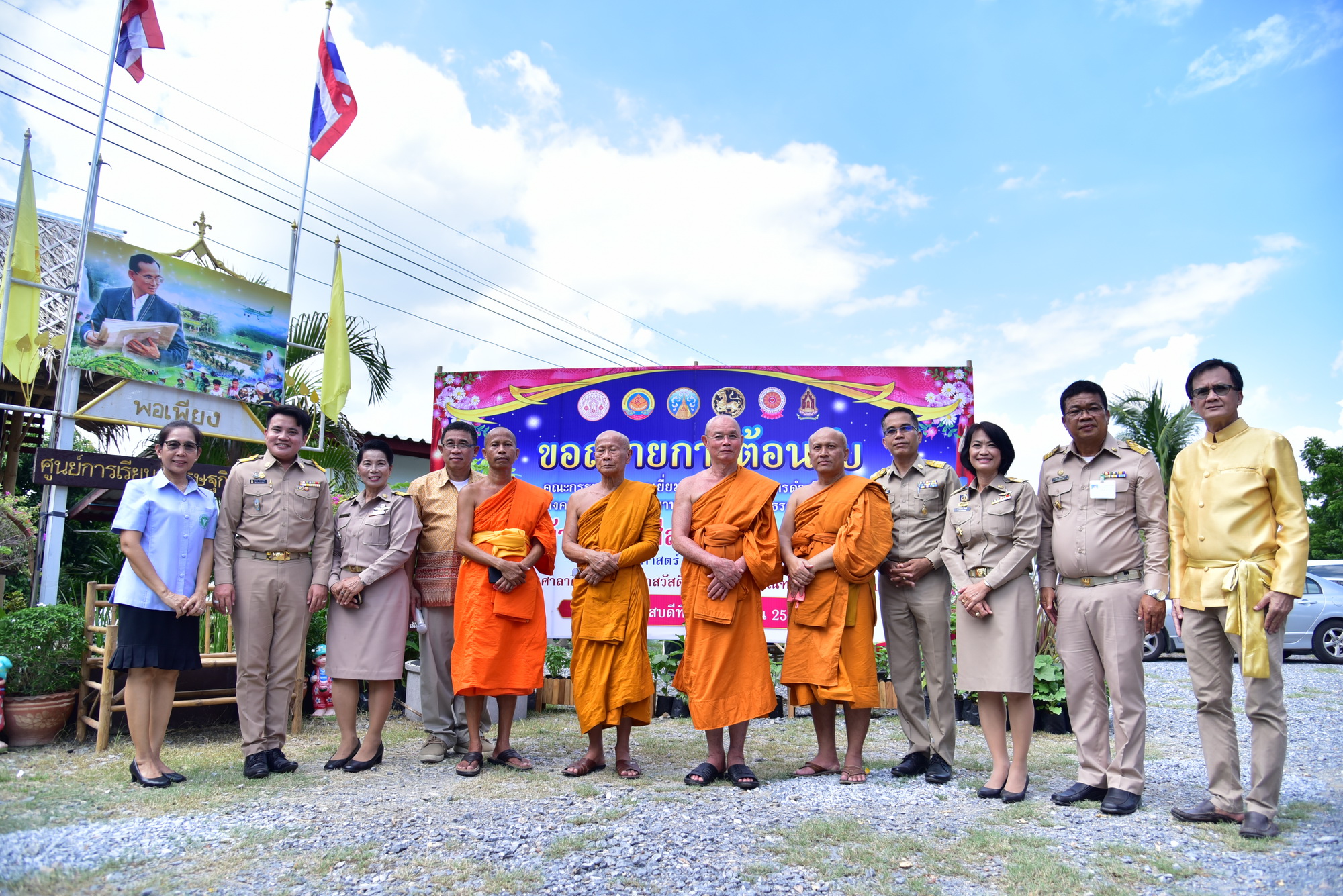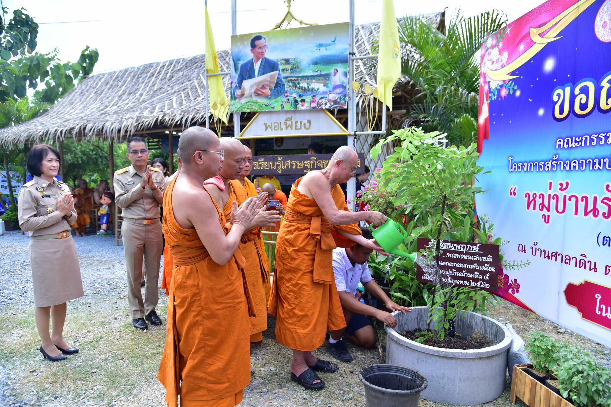 จากนั้นเดินทางไปยังวัดสุวรรณนาราม อำเภอพุทธมณฑล รับฟังบรรยายสรุปผลการดำเนินโครงการ จากนั้นชมนาบัวลุงแจ่ม และการดำเนินโครงการ กิจกรรมที่หมู่บ้านศาลาดิน ซึ่งบ้านศาลาดินแห่งนี้ มีการทำกลุ่มออมทรัพย์ กลุ่มอาชีพแม่บ้านเกษตรแปรรูป กองทุนหมู่บ้านให้เงินยืมไปประกอบอาชีพ กลุ่มปุ๋ยอินทรีย์ กองทุนแม่ของแผ่นดิน ร้านค้าชุมชน แหล่งท่องเที่ยวเชิงเกษตร และหมู่บ้านเศรษฐกิจพอเพียง