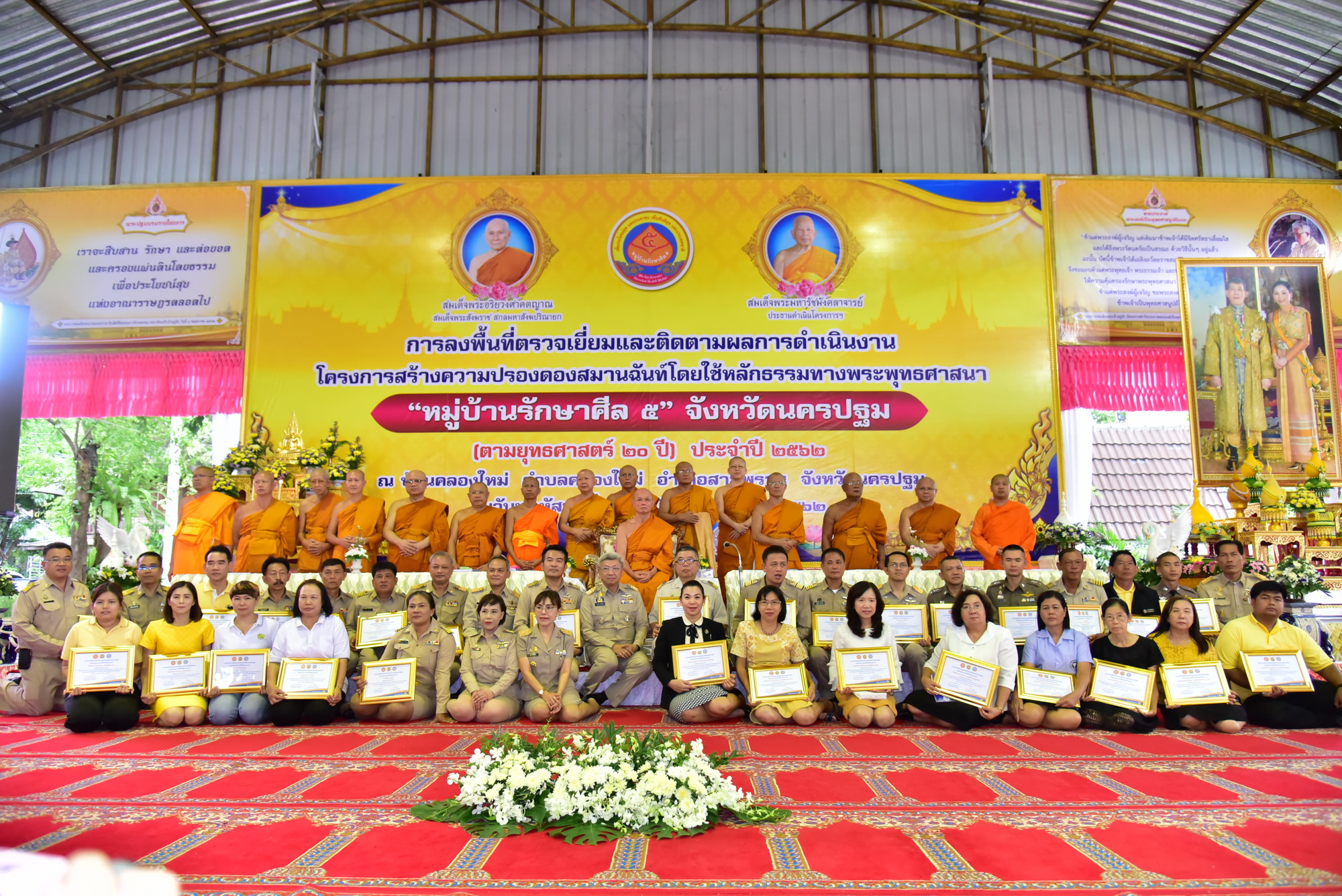 วันที่ 20 มิถุนายน 2562 พระพรหมเสนาบดี ประธานคณะกรรมการขับเคลื่อนโครงการสร้างความปรองดองสมานฉันท์โดยใช้หลักธรรมทางพระพุทธศาสนา หมู่บ้านรักษาศีล 5 พร้อมคณะ ลงพื้นที่ตรวจติดตามผลการดำเนินโครงการสร้างความปรองดองสมานฉันท์โดยใช้หลักธรรมทางพระพุทธศาสนา “หมู่บ้านรักษาศีล 5” ของจังหวัดนครปฐม