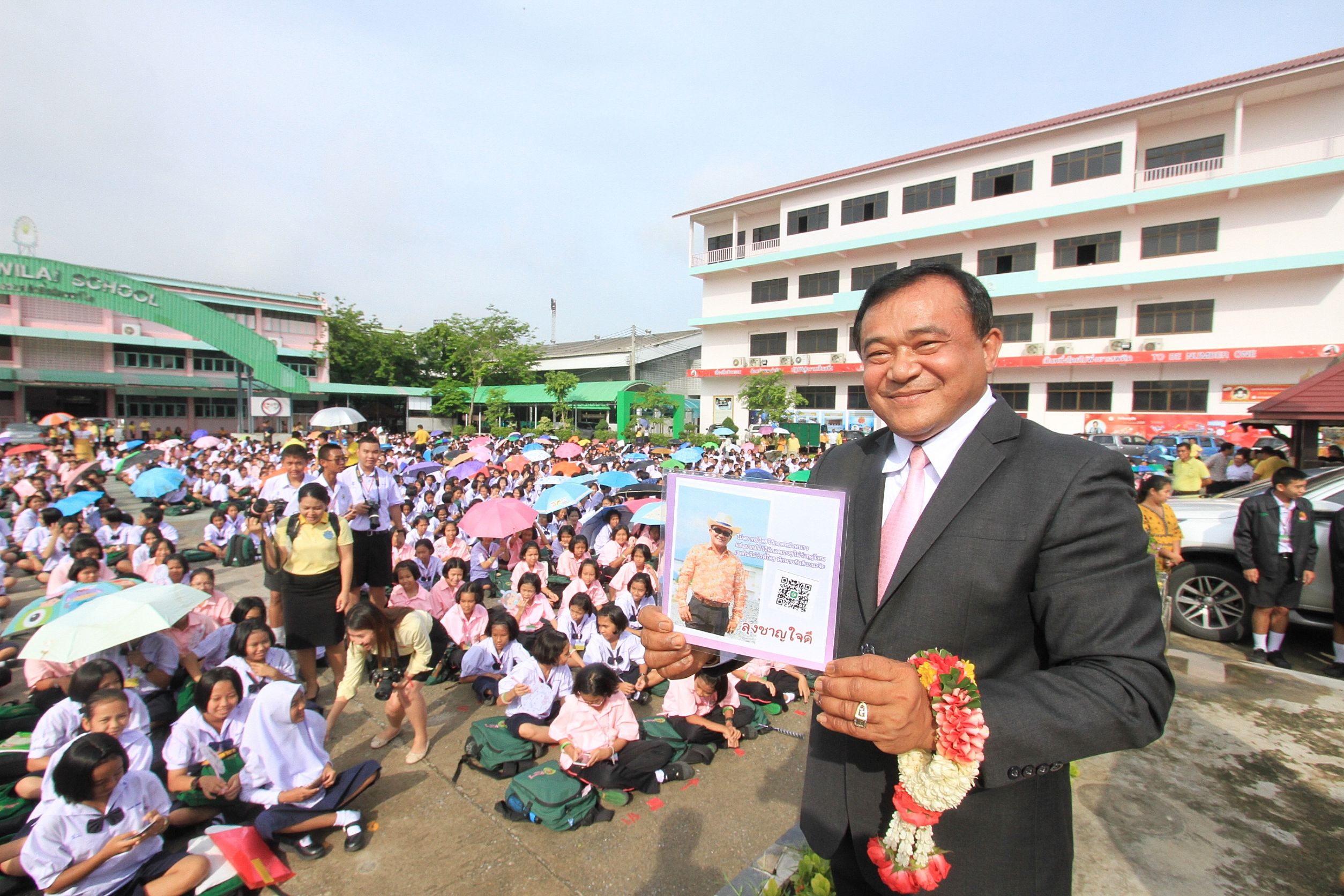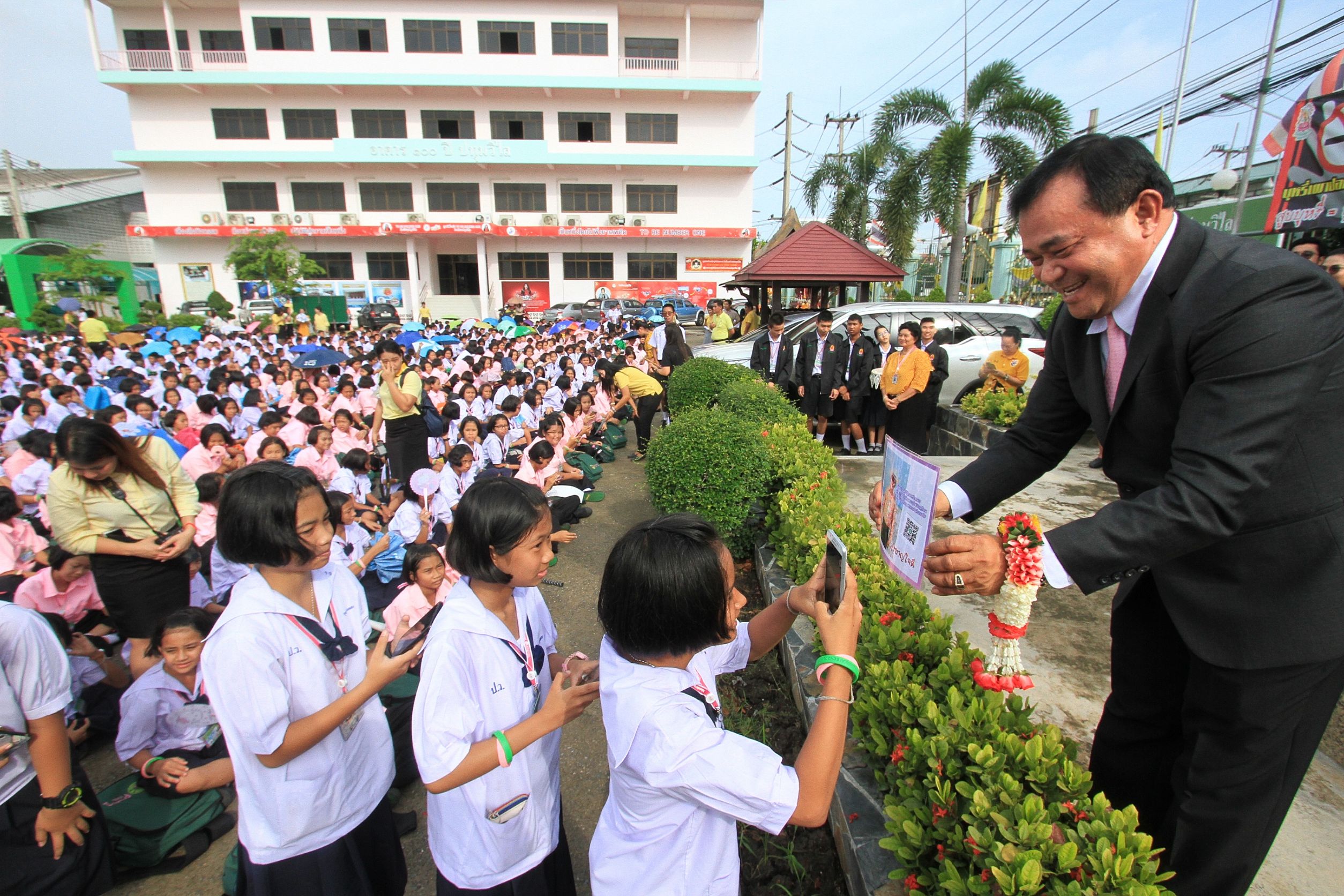 นายก อบจ.ปทุมธานี เยี่ยมให้กำลังใจเด็กนักเรียน พร้อมโชว์คิวอาร์โค้ดไลน์เพื่อให้เด็กเข้าถึงได้โดยตรงในวางแผนพัฒนาโรงเรียน