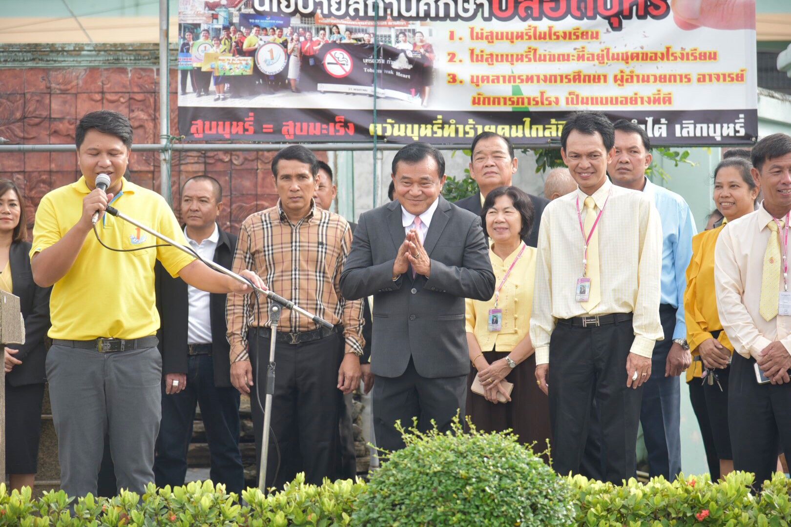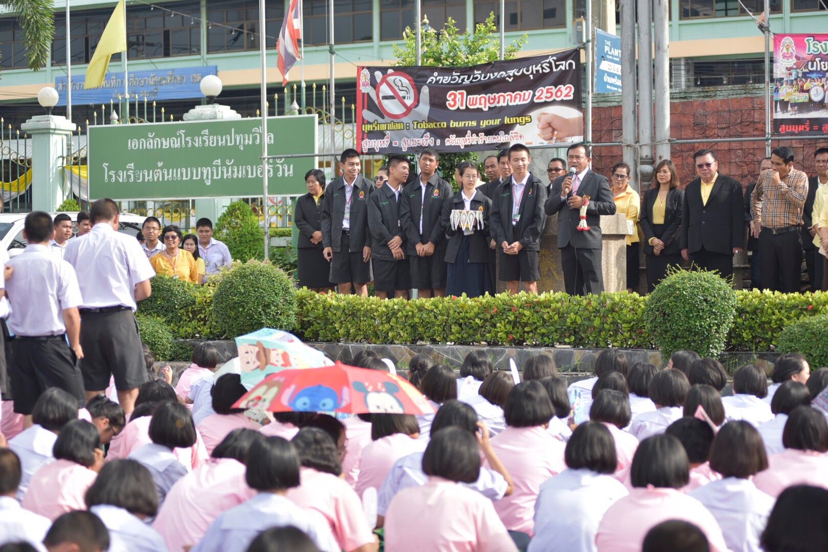 นายชาญ พวงเพ็ชร์ นายกองค์การบริหารส่วนจังหวัดปทุมธานี กล่าวว่า ที่เดินทางมาพบปะนักเรียนในวันนี้เพื่อร่วมพูดคุยแลกเปลี่ยนข้อคิดเห็นและรับข้อเสนอแนะ และถามความคิดเห็นจากเด็กนักเรียนว่า อยากได้อะไรบ้างในการพัฒนาการศึกษา โรงเรียนยังขาดอะไรเพื่อจะได้จัดสรรงบประมาณมาสนับสนุนได้อย่างถูกต้องตามความต้องการและพร้อมสนับสนุนให้คุณภาพการศึกษามีประสิทธิภาพมากยิ่งขึ้นต่อไป นายชาญ ยังให้โอวาทเด็กนักเรียน ให้ตั้งใจเรียน เป็นคนดีของสังคมและทดแทนพระคุณพ่อแม่