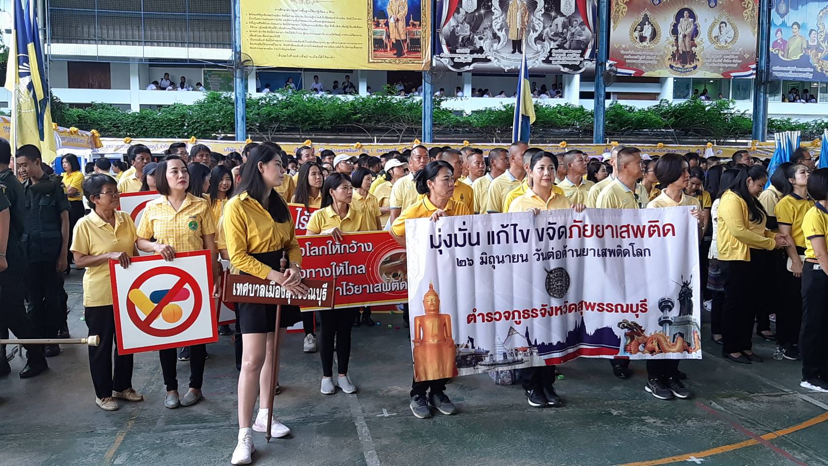 ตามมติการประชุมสมัชชาใหญ่องค์กรสหประชาชาติ ได้กำหนดให้วันที่ 26 มิถุนายน ของทุกปี เป็นวันต่อต้านยาเสพติดโลก ประเทศไทยได้ยึดถือและปฏิบัติร่วมกับประชาคมโลกในการรณรงค์ต่อต้านยาเสพติดศูนย์อำนวยการป้องกันและปราบปรามยาเสพติดจังหวัดสุพรรณบุรี จึงได้จัดโครงการรวมพลังต่อสู้เอาชนะยาเสพติด เนื่องในวันต่อต้านยาเสพติดโลก ขึ้นเพื่อยืนยันเจตนารมณ์อย่างแน่วแน่ ที่จะร่วมกับประชาคมโลกในการสร้างกระแสและปลุกจิตสำนึกให้ทุกคนร่วมมือกัน ที่จะต่อสู้เอาชนะยาเสพติด ให้ได้อย่างรวดเร็วภายใต้แนวคิด“ ชาวสุพรรณร่วมใจ ต้านภัยยาเสพติด“โดยได้จัดกิจกรรมรณรงค์ต่อต้านยาเสพติด 4 ประเภทด้วยกันได้แก่การเดินขบวนรณรงค์ประชาสัมพันธ์ต่อต้านยาเสพติดการรวมพลังมวลชนเพื่อร่วมกันประกาศเจตนารมณ์ต่อต้านยาเสพติด การจัดกิจกรรมเชิงสร้างสรรค์เกี่ยวกับพิษภัยและบทลงโทษสำหรับผู้ที่เข้าไปเกี่ยวข้องกับยาเสพติด บนเวทีของนักเรียน นักศึกษาและหน่วยงานต่างๆ และการจัดแสดงนิทรรศการรณรงค์ต่อต้านยาเสพติดจากหน่วยงานที่เกี่ยวข้อง