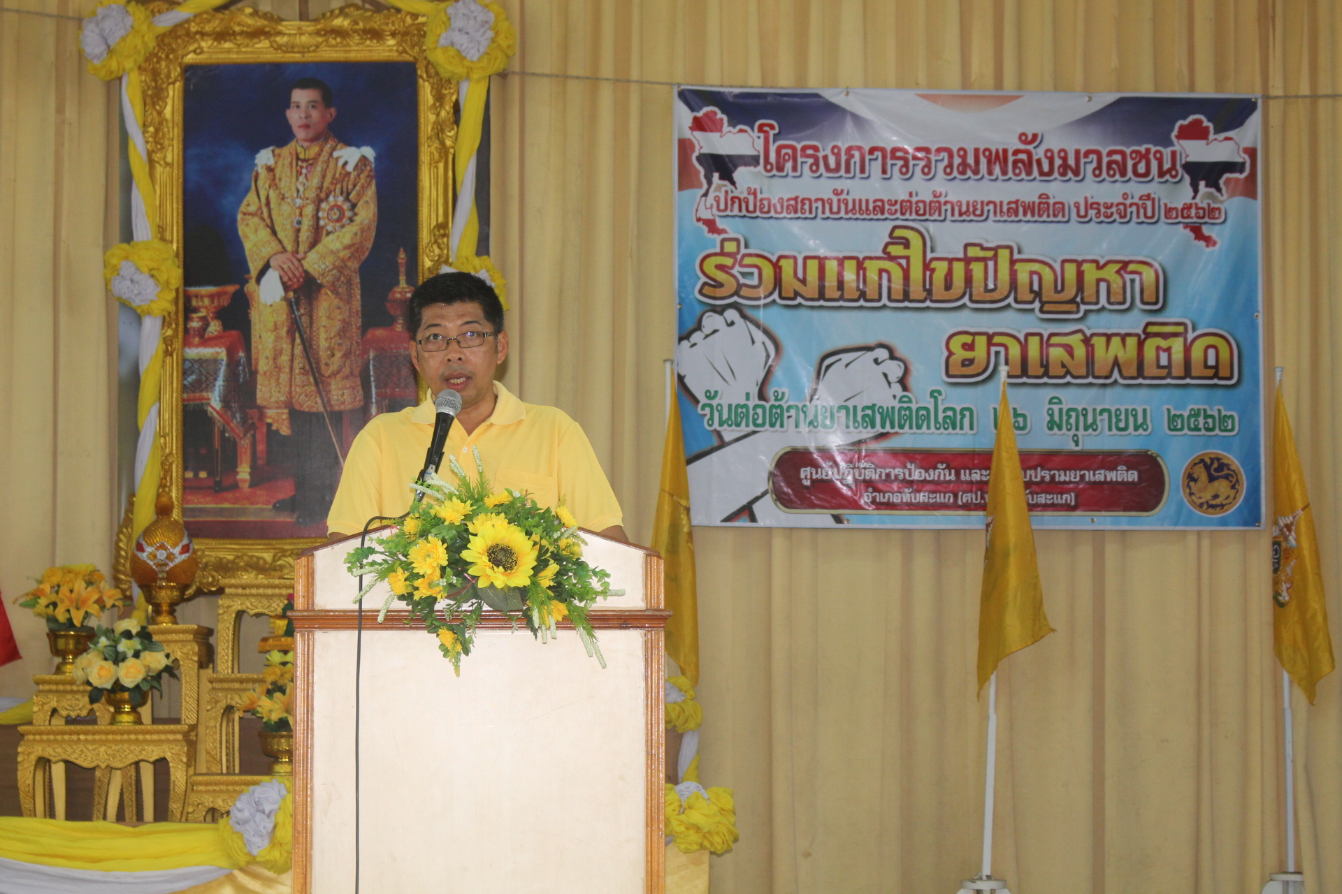 วันที่ 26 มิถุนายน 2562 ที่หอประชุมอำเภอทับสะแก จังหวัดประจวบคีรีขันธ์ นายปรีดา สุขใจนายอำเภอทับสะแก ในฐานะผู้อำนวยการศูนย์ปฏิบัติการป้องกันและปราบปรามยาเสพติดอำเภอทับสะแก เป็นประธานเปิดกิจกรรม โครงการรวมพลังมวลชนปกป้องสถาบันและต่อต้านยาเสพติด ประจำปี 2562 เนื่องในวันยาเสพติดโลก