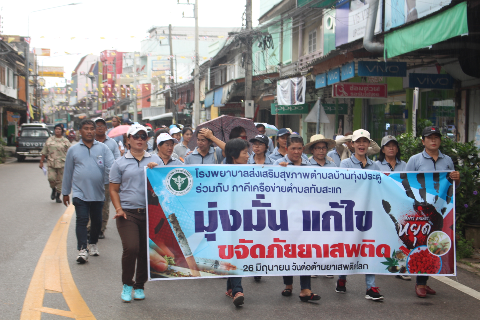 รวมถึงการรณรงค์ประชาสัมพันธ์สร้างการรับรู้ให้กับประชาชนให้มีความรู้ความสามารถและตระหนักถึงการให้ความสำคัญในการแก้ไขปัญหายาเสพติดเพื่อให้ประชาชนเข้ามามีส่วนร่วมในการป้องกันและแก้ไขปัญหายาเสพติดในหมู่บ้านและชุมชนของตนเอง ให้ปลอดภัยและห่างไกลจากยาเสพติดอย่างยั่งยืนซึ่งวันนี้ อำเภอทับสะแก ได้รวมพลังข้าราชการพลเรือน ทหาร ตำรวจ กำนัน ผู้ใหญ่บ้าน องค์กรปกครองส่วนท้องถิ่น นักเรียนนักศึกษา ประมาณ 600 คน