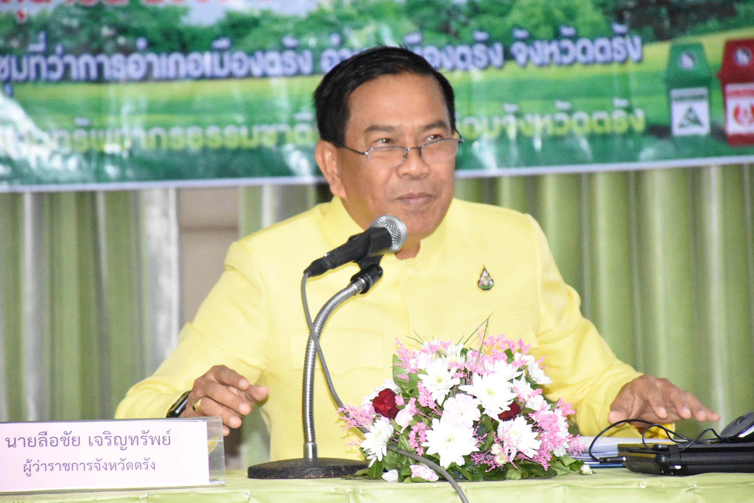 นายลือชัย เจริญทรัพย์ ผู้ว่าราชการจังหวัดตรัง เป็นประธานในพิธีเปิดการประชุมโครงการจัดการขยะมูลฝอยและขยะตกค้างจังหวัดตรัง ปีงบประมาณ 2562 ณ ห้องประชุมที่ว่าการอำเภอเมืองตรัง