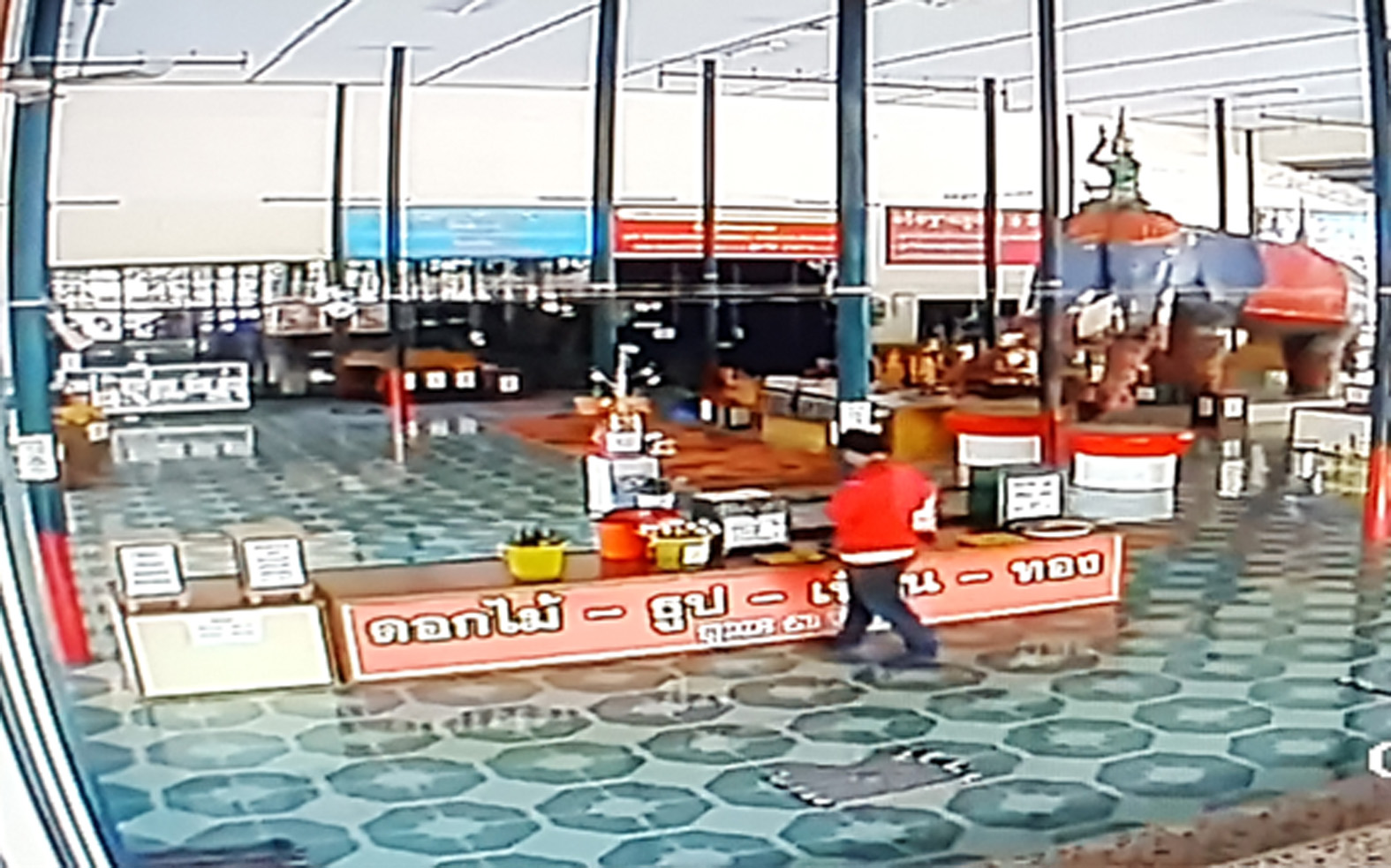 สุพรรณบุรี วงจรปิดจับภาพโจรใจบาปลักเงินพุ่มผ้าป่าเจ้าคณะตำบลจับตัวรอตำรวจเกือบชม.อ้างรอกินข้าว