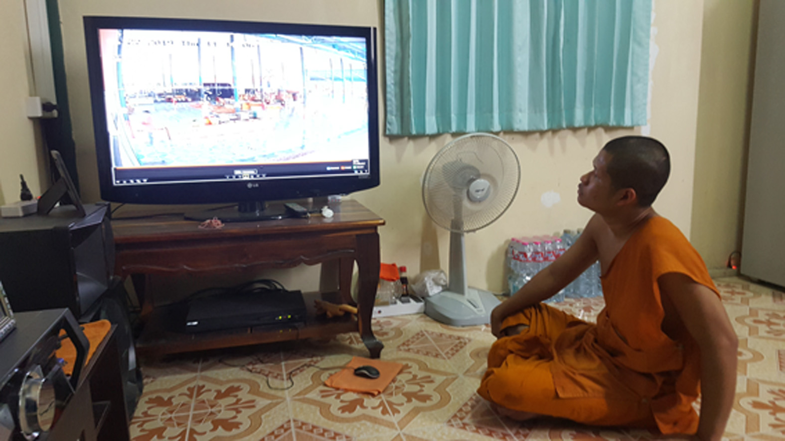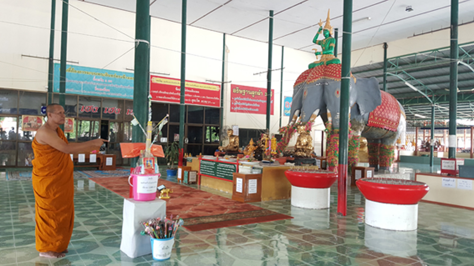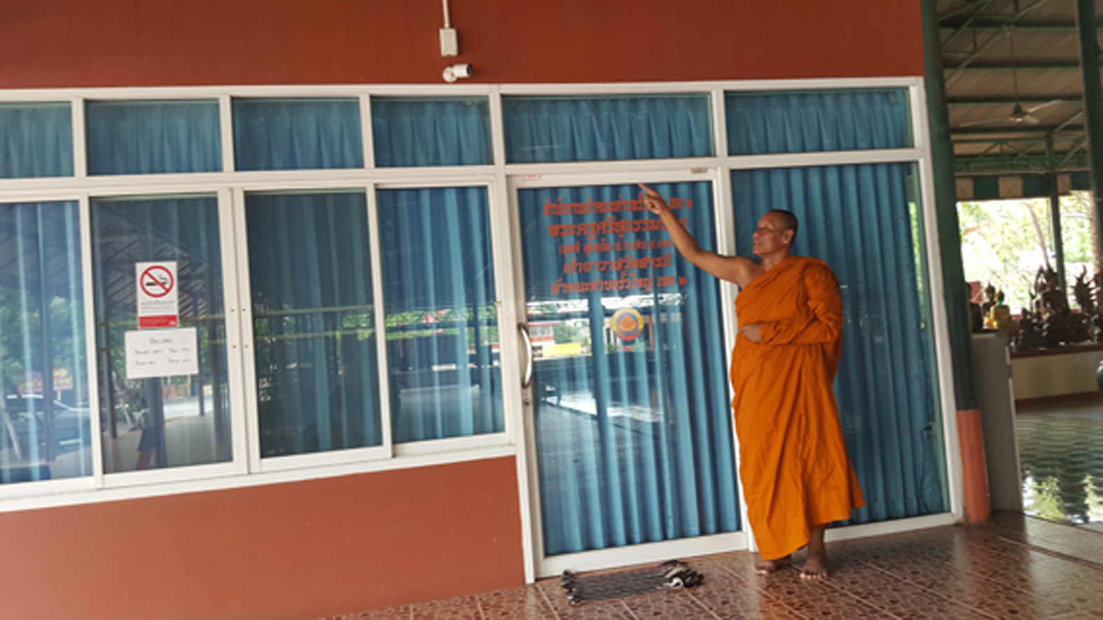 จากนั้นไม่นานคนร้ายเดินเข้าไปในวิหารหลวงพ่อพุทธมุนีศรีมงคล หลวงใหญ่ พระประธาน พระพุทธรูปศักดิ์สิทธิ์ ก่อนจะเดินกลับไปที่วิหารพระอินทร์ทรงช้างเอราวัณ อาตมาเห็นผิดสังเกตจึงได้ให้ญาติโยมที่มาช่วยจัดเตรียมสถานที่ไปคุมเชิงที่รถจักรยานยนต์ของคนร้ายเอาไว้ ส่วนอาตมาได้ไปหยิมไม้คมแฝกมาถือไว้ก่อนจะเดินไปถามคนร้ายว่าได้ขโมยเงินที่ติดพุ่มผ้าป่าไปหรือไม่ เบื้องต้นคนร้ายปฏิเสธว่าไม่ได้เอาไปอาตมาจึงบอกว่าถ้าเปิดกล้องวงจรปิดดูและพบว่าเป็นคนขโมยเงินไปอาตมาจะตีด้วยไม้คมนะ คนร้ายกลัวถูกตีจึงยอมรับสารภาพว่าเป็นคนเอาเงินไปและยอมรับผิดพร้อมกับคืนเงินที่ติดพุ่มผ้าป่าจำนวน 90 บาท