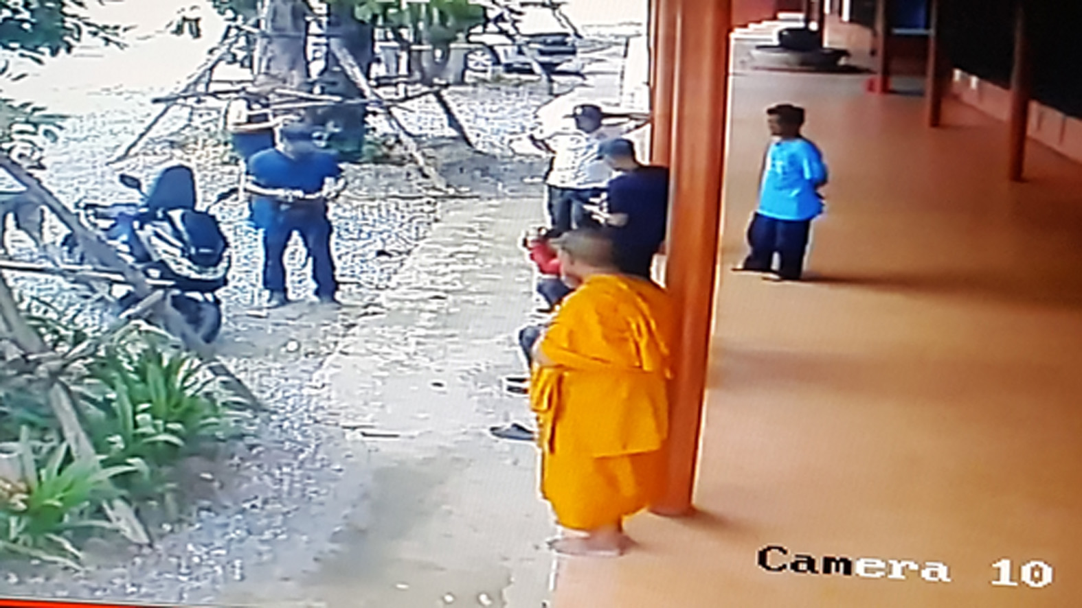 จากการสอบถามพระครูศรีสุธรรมนาถ เจ้าอาวาสและเจ้าคณะตำบลรั้วใหญ่ เล่าว่าก่อนเกิดเหตุช่วงสายวันที่ 27 มิ.ย.ขณะที่อาตมารวมทั้งพระลูกวัดและญาติโยมได้ช่วยกันทำความสะอาดจัดเตรียมความพร้อมสถานที่เพื่อจะประกอบพิธีสวดเจริญพระพุทธมนต์ถวายเป็นพระราชกุศลพระบาทสมเด็จพระปรเมนทรรามาธิบดีศรีสินทรมหาวชิราลงกรณ พระวชิรเกล้าเจ้าอยู่หัว อยู่นั้นสังเกตเห็นคนร้ายเป็นชายรูปร่างล่ำสันขับขี่รถจักรยานยนต์ สวมหมวกกันน็อกเข้ามาจอดบริเวณหน้าวิหารพระอินทร์ทรงช้างเอราวัณ จากนั้นคนร้ายได้เดินเข้าไปภายในวิหาร