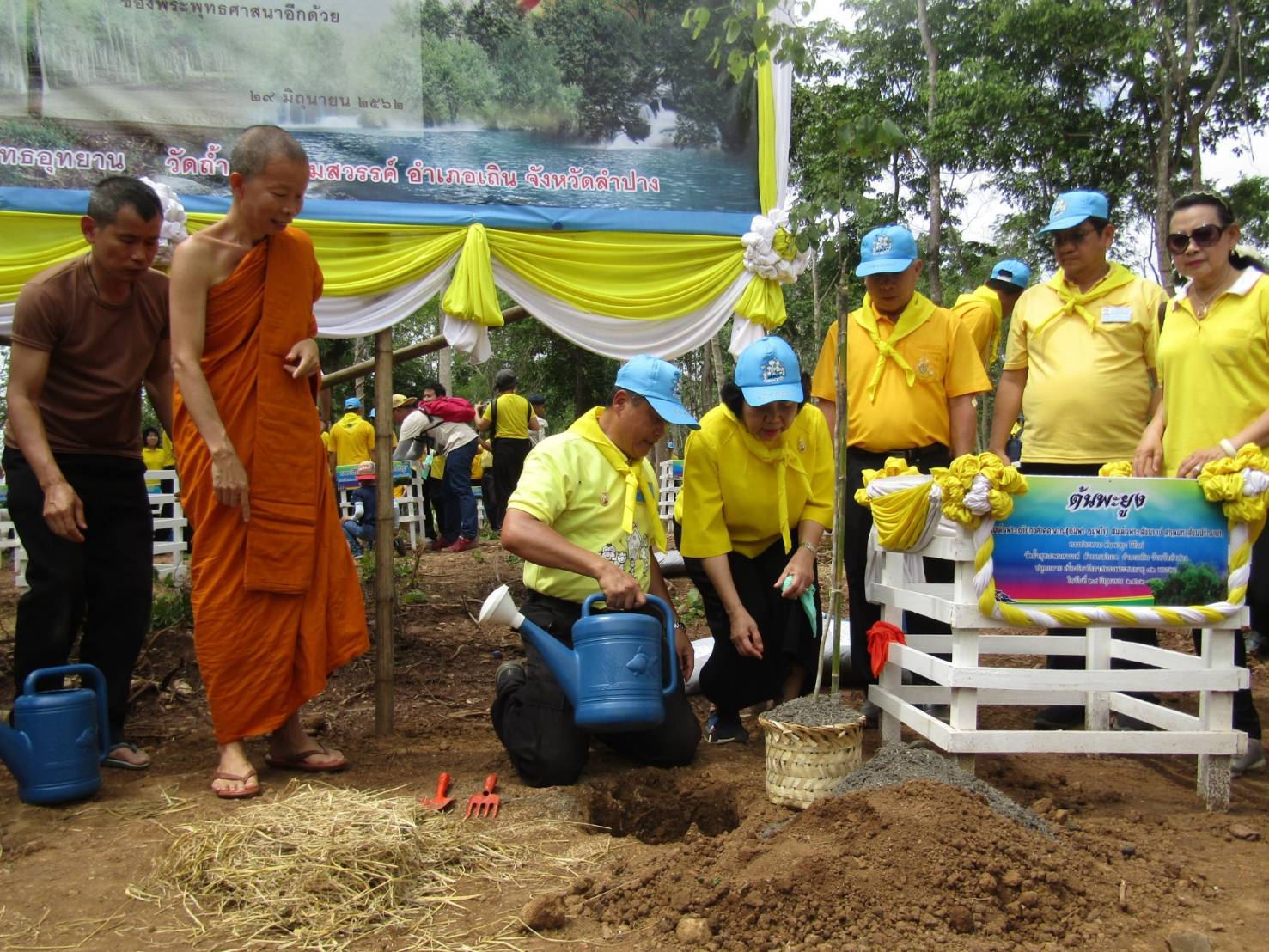 อธิบดีกรมส่งเสริมการปกครองท้องถิ่น ได้กล่าวชมเชยทางคณะสงฆ์ รวมทั้งนายก อบต.แม่ถอด , อบจ.ลำปาง ที่ได้ช่วยปรับปรุงพื้นที่และดูแลรดน้ำต้นไม้ โดยมีการจัดเวรผู้มีจิตอาสาเข้าช่วยรดน้ำต้นไม้ทุกวันจนทำให้ต้นไม้ที่ปลูกไว้เมื่อปีที่แล้ว ยืนต้นรอดตายงอกงามเกือบครบทุกต้น การช่วยกันในครั้งนี้นอกจากเป็นการปฏิบัติบูชาถวายพระพรแด่สมเด็จพระสังฆราชแล้ว ยังเป็นการช่วยทำสิ่งที่ดีต่อมวลมนุษยชาติทั้งหมด ในการทำให้สภาพแวดล้อมของโลกดีขึ้น ที่สำคัญอีกประการหนึ่งคือในปีนี้ทางองค์การบริหารส่วนจังหวัดลำปาง ยังได้ช่วยดำเนินการจัดสร้างฝายน้ำล้นและธนาคารน้ำใต้ดินระบบปิดเพื่อช่วยกักเก็บน้ำไว้ให้เกิดความสมบูรณ์ของพื้นที่เพิ่มมากขึ้นด้วย