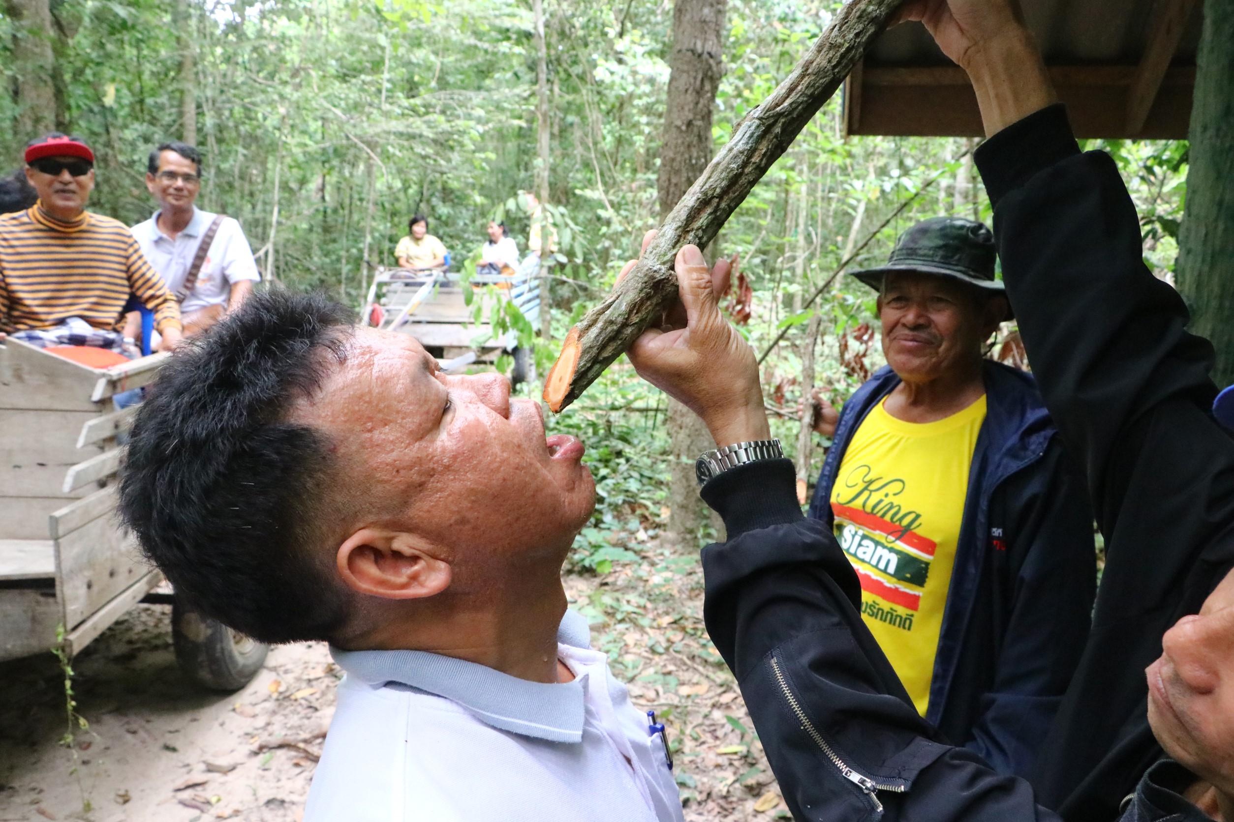 โดยมี พระครูสุขุมวรรโณภาส ผู้อำนวยการศูนย์พุทธธรรมพรหมวชิรญาณป่าดงใหญ่วังอ้อ ร่วมด้วย คณะทำงาน บวรคุณธรรม วัฒนธรรมจังหวัดอุบลราชธานี โรงพยาบาลส่งเสริมสุขภาพประจำตำบล โรงเรียนบ้านวังอ้อ ยอดสังข์วิทยาคาร กลุ่มวิสาหกิจชุมชนอินทรีย์วิถีไทย ผู้นำชุมชม ชาวบ้านวังอ่อ ร่วมในกิจกรรม ชมศูนย์เรียนรู้เศรษฐกิจพอเพียงรูปแบบ โคก หนอง นา ดงใหญ่ โมเดล นั่งรถไถนา ชมฐานต่างๆ ไม่ว่าจะเป็น ฐานดื่มน้ำจากเถาวัลย์ ฐานทำลาย”เตาเผาถ่าน ฐานสมุนไพร ล่องแพชมลำเซบาย สัมผัส น้ำใส ไหลเย็น และชมการแสดงประเพณีวัฒนธรรมท่องถิ่นของชาวบ้านในพื้นที่