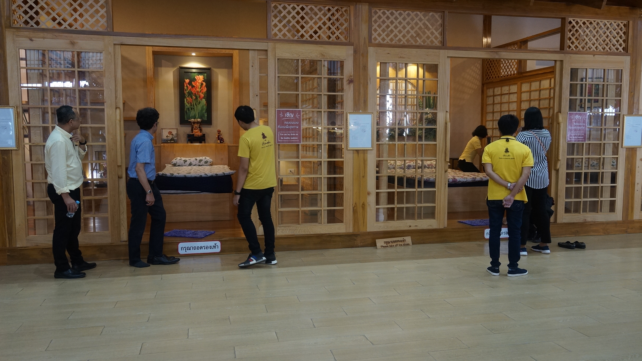 โดยมีนายอนิรุทธ์ จึงสุดประเสริฐ ประธานบ้านฮิโนกิแลนด์ มาเป็นพิธีกรสนามให้การแลกเปลี่ยนความรู้และประสบการณ์ในวันนี้ และมุ่งเน้นเรื่องการจะอยู่รอดได้อย่างไรโดยมีชาวบ้าน1,200 ครอบครัวที่ต้องรับผิดชอบและให้งานให้โอกาสให้อาชีพให้ครอบครัวของเขาอยู่รอดได้และจะต้องเดินไปด้วยกันอย่างมีคุณภาพ การผลิตที่นอนสุขภาพไม้หอมฮิโนกิ นั้นได้จดสิทธิบัตร และการผลิตไม่พอขาย ซึ่งลูกค้าต้องสั่งจองและจ่ายเงินผ่านธนาคารในวันนี้ และจะได้รับสิ้นค้าในช่วงปลายเดือนกรกฎาคม เพราะว่าผลิตไม่ทัน มีคนสั่งจองมามากเหลือเกิน