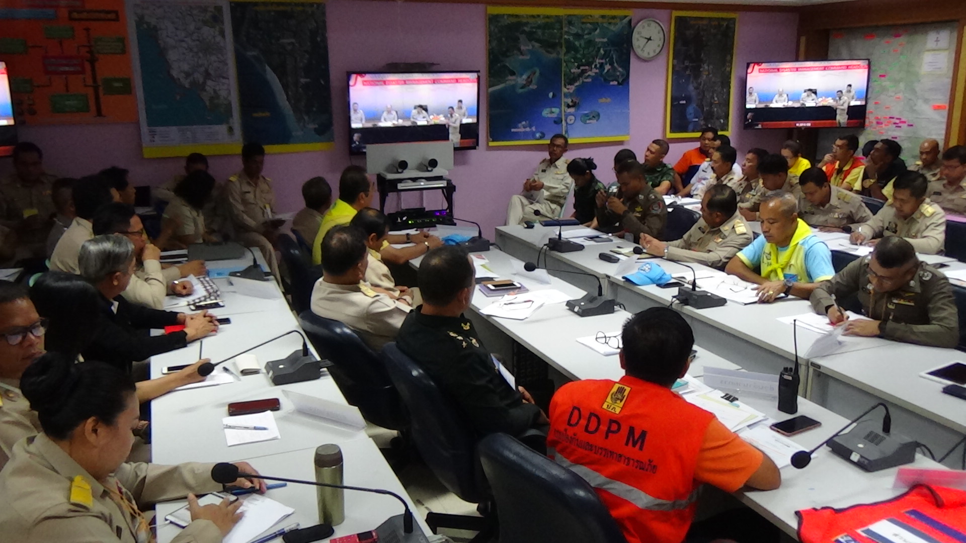ผู้ว่าราชการจังหวัดตรัง นำหน่วยงานที่เกี่ยวข้อง รับฟังคอนเฟอเร้นท์จากกระทรวงมหาดไทย ในการฝึกการป้องกันและบรรเทาสาธารณภัยแบบบูรณาการ พ.ศ.2562 คำถามFEXการฝึกเฉพาะหน้าที่กรณีจากภัยสึนามิ