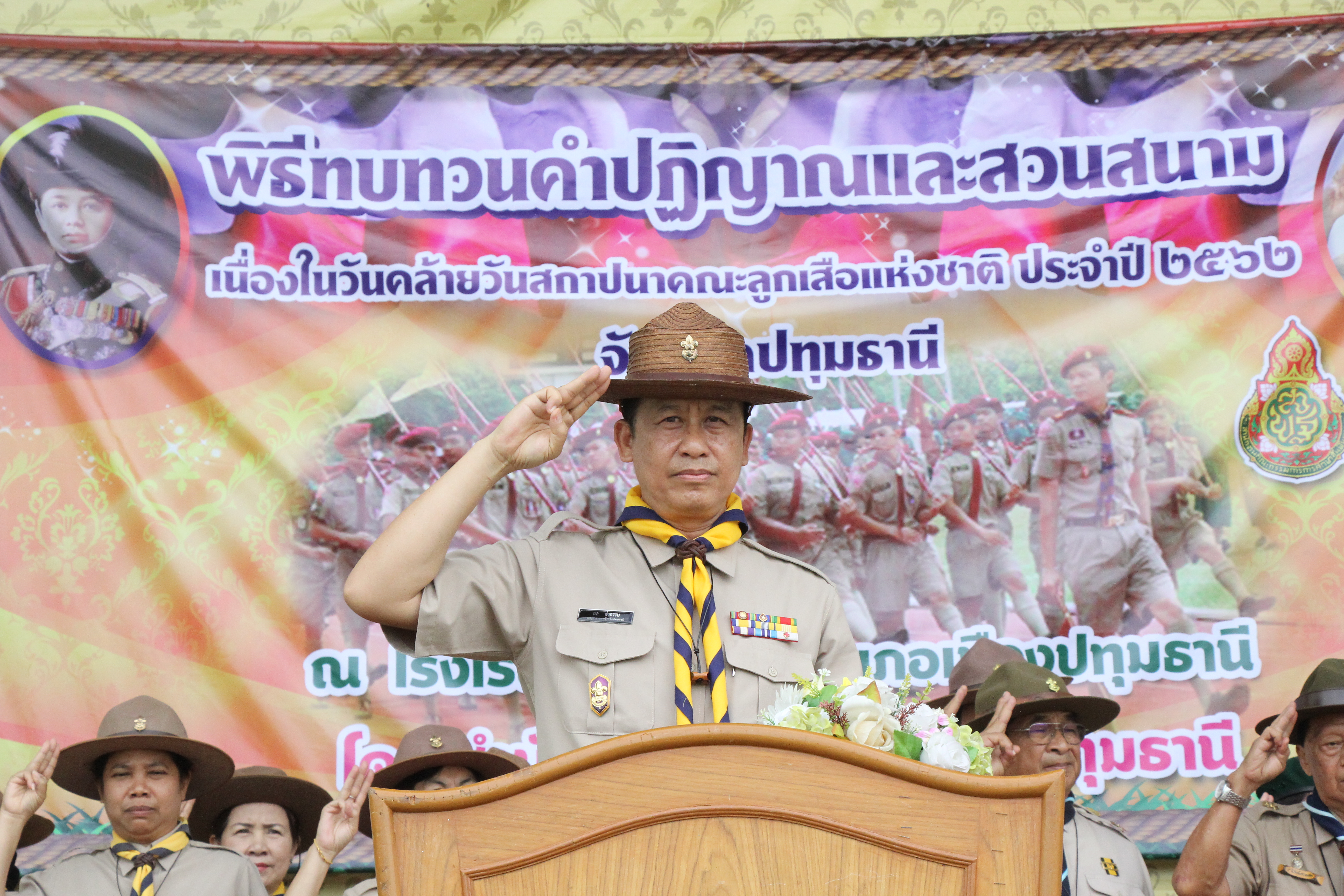 เมื่อเวลา 09.30 น.วันที่1 ก.ค.62 ที่ สนามโรงเรียนปทุมวิไล อำเภอเมือง จังหวัดปทุมธานี นายผล ดำธรรม รองผู้ว่าราชการจังหวัดปทุมธานี ประธานพิธีเปิดงานวันคล้ายวันสถาปนาคณะลูกเสือแห่งชาติจังหวัดปทุมธานี พิธีทบทวนคำปฏิญาณและสวนสนามของลูกเสือ โดยมี นายสมบัติ จันทร์มีชัย ผู้อำนวยการลูกเสือเขตพื้นที่การศึกษาปทุมธานี เขต 1 ผู้บังคับบัญชาลูกเสือ กองลูกเสือ เนตรนารี เข้าร่วมพิธี จำนวน 21 หน่วย/โรงเรียน จำนวน 1,020 คน