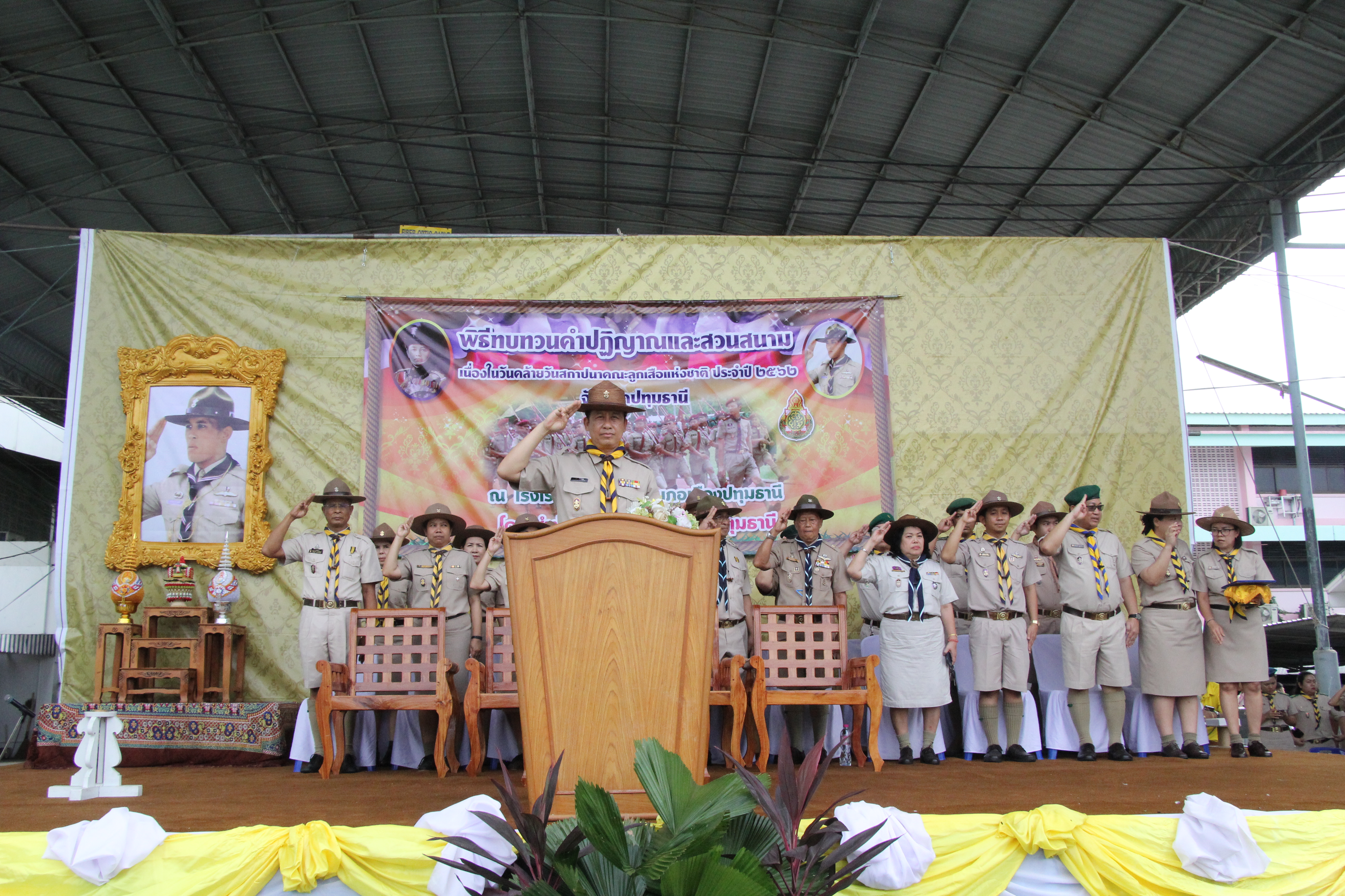 ปทุมธานี จัดพิธีวันคล้ายวันสถาปนาคณะลูกเสือแห่งชาติจังหวัดปทุมธานี พิธีทบทวนคำปฏิญาณและสวนสนามของลูกเสือ