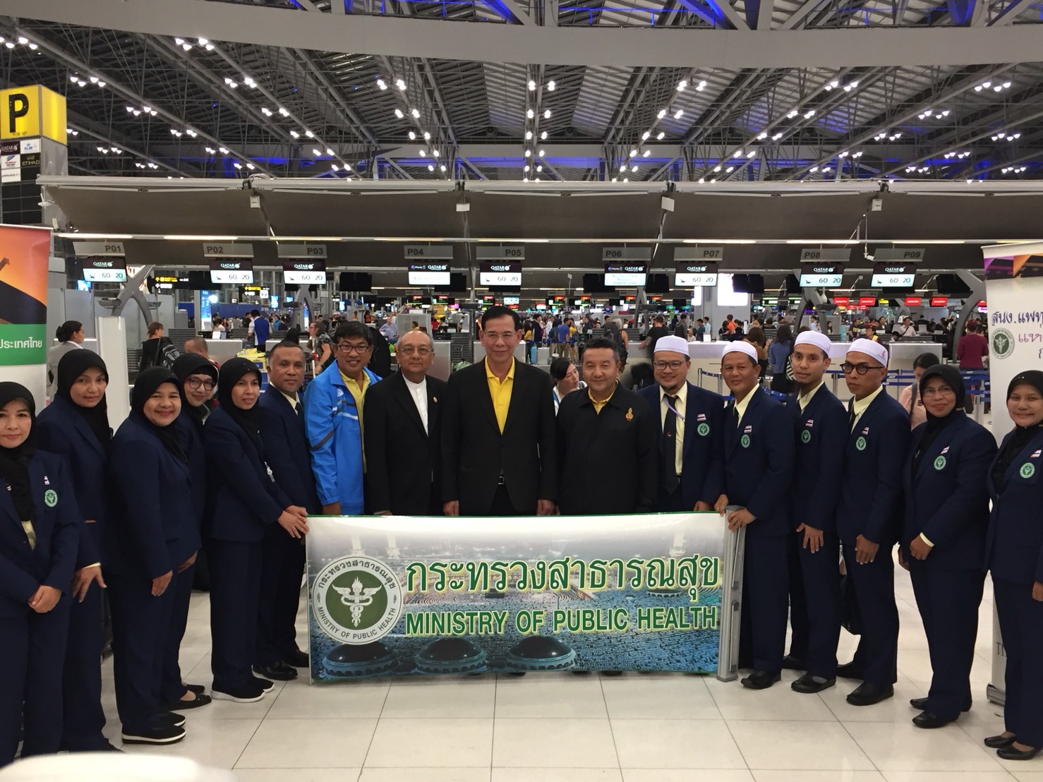 ***** เมื่อเวลา 19.30 น.วันที่ 2 ก.ค.2562 ที่สนามบิน สุวรรณภูมิ ชั้น 4 ขาออก สมุทรปราการ นายแพทย์สุขุม กาญจนพิมาย ปลัดกระทรวงสาธารณสุข พร้อมคณะเดินทางมาส่ง นายแพทย์ซุลกิฟลี ยูโซะ ผู้อำนวยการโรงพยาบาลไม้แก่น จังหวัดปัตตานี ปฏิบัติหน้าที่หัวหน้าสำนักงานแพทย์เพื่อกิจการฮัจย์แห่งประเทศไทย นำทีมแพทย์ชุดแรก จำนวน 12 คน เดินทางไปประเทศซาอุดิอาระเบีย เพื่อดูแลสุขภาพผู้เดินทางไปประกอบพิธีฮัจย์ ประจำปี 2562 จำนวนกว่า 8,000 คน ณ ราชอาณาจักรซาอุดิอาระเบีย