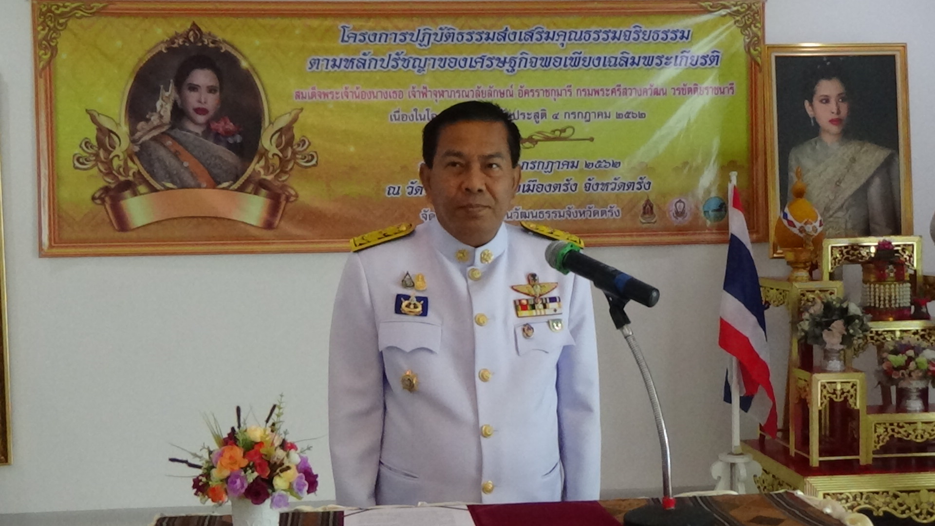 ผู้ว่าฯ ตรัง เปิดโครงการปฏิบัติธรรมส่งเสริมคุณธรรมจริยธรรม ตามหลักปรัชญาของเศรษฐกิจพอเพียง เฉลิมพระเกียรติสมเด็จพระเจ้าน้องนางเธอเจ้าฟ้าจุฬาภรณ์วลัยลักษณ์ อัครราชกุมารี กรมพระศรีสวางควัฒนวรขัตติยราชนารี เนื่องในโอกาสวันคล้ายวันประสูติ 4 ก.ค.2562 ที่วัดพระงาม อ.เมืองตรัง นายลือชัย เจริญทรัพย์ ผู้ว่าราชการจังหวัดตรัง