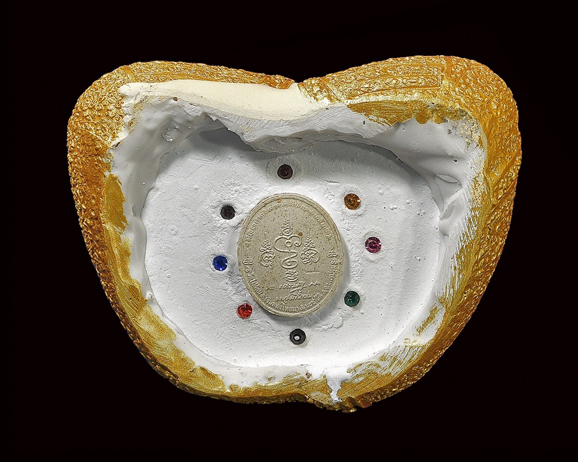 พระปิดตามหาลาภ ทรงเครื่อง มีใบหน้าโดดเด่น บ่งบอกความเพียบพร้อมในความสมบูรณ์พูลสุข พระกรหรือมือปิดที่ส่วนใบหน้า ตามค่านิยมความเชื่อ จากคำเล่าขานในอดีต เรื่องเมตตาค้าขายดีมีกำไร เสริมสิริมงคลแก่ผู้บูชา