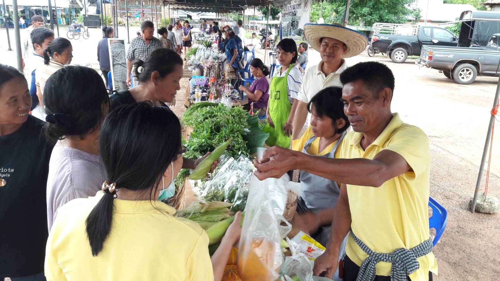 นำสินค้าเเกษตรที่ได้มาจากการทำการเกษตรอินทรีย์ ตามหลักปรัชญาเศรษฐกิจพอเพียง มาจำหน่าย เป็นรายได้ที่ดี ประชาชนในพื้นที่ได้สินค้าอินทรีย์ และยังมีการนำสินค้า otop มาจำหน่าย มีผู้มาร่วมกิจกรรมเป็นจำนวนมาก