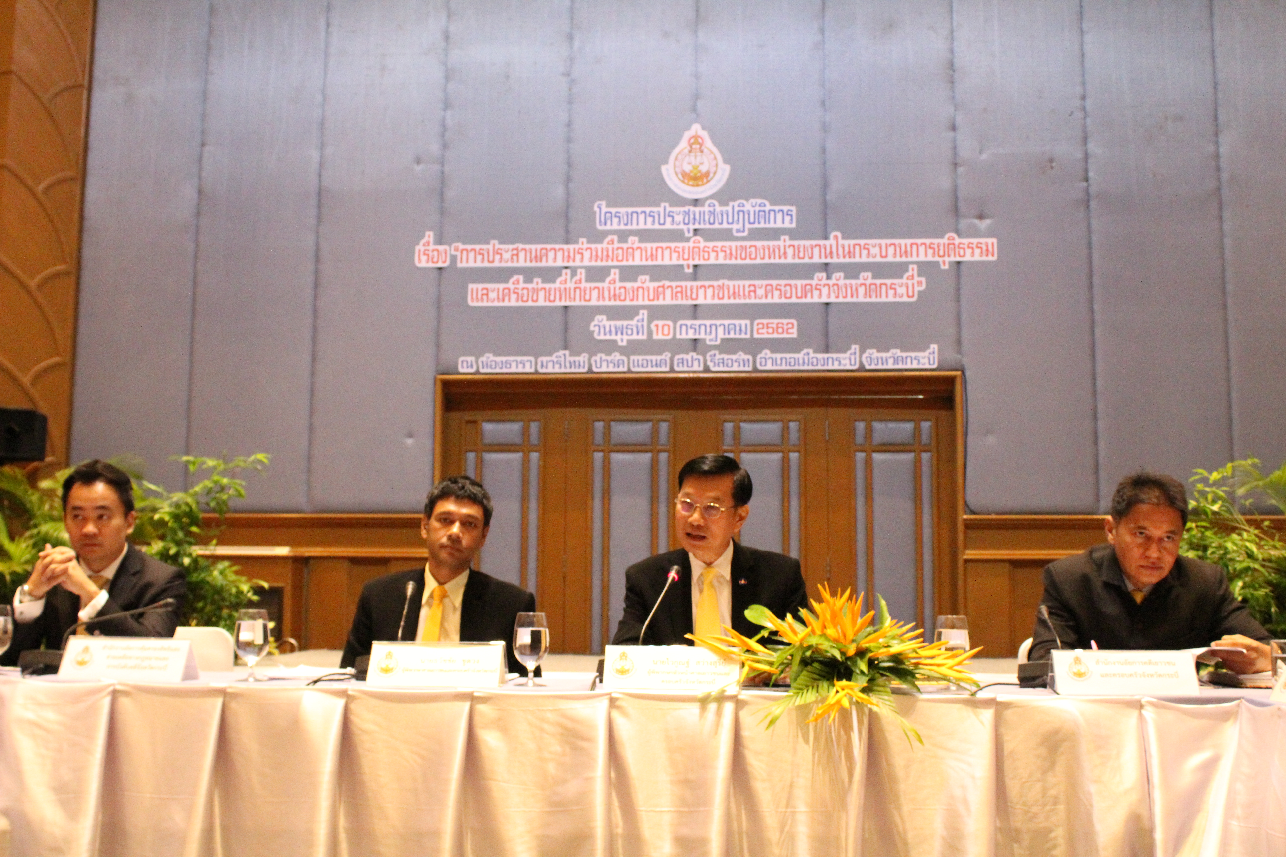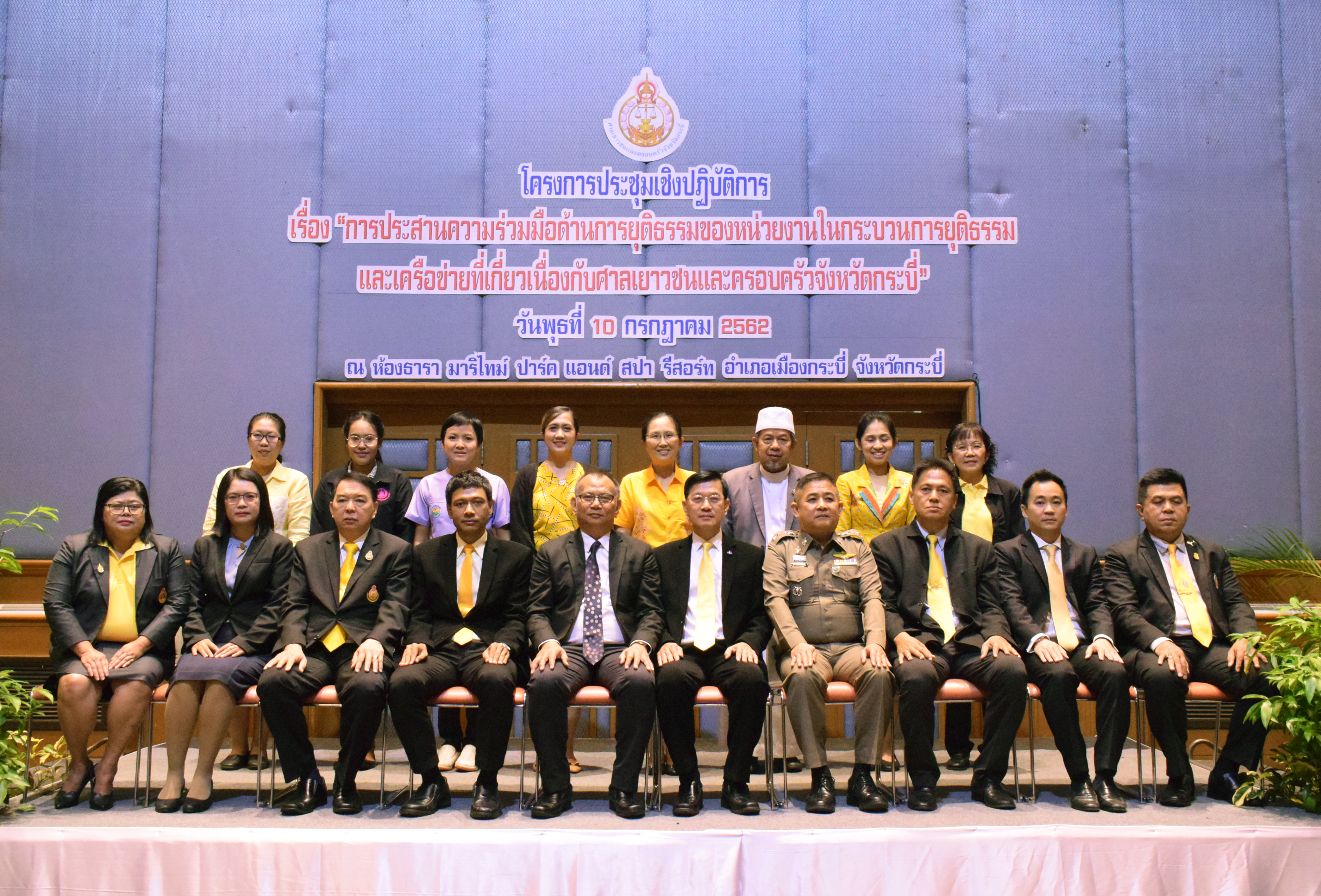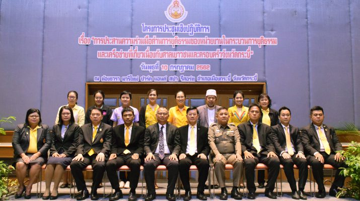 เมื่อวันที่ 10 กรกฎาคม 2562 นายไวกูณฐ์ สว่างสุรีย์ ผู้พิพากษาหัวหน้าศาลเยาวชนและครอบครัวจังหวัดกระบี่ เป็นประธานในพิธีเปิดโครงการประชุมเชิงปฏิบัติการเรื่อง “การประสานความร่วมมือด้านการยุติธรรมของหน่วยงานในกระบวนการยุติธรรมและเครือข่ายที่เกี่ยวเนื่องกับศาลเยาวชนและครอบครัวจังหวัดกระบี่”โดยมีคณะผู้พิพากษา ผู้พิพากษาสมทบ พร้อมด้วยผู้แทนของหน่วยงานในกระบวนการยุติธรรม และเครือข่ายที่เกี่ยวเนื่องกับศาลเยาวชนและครอบครัวจังหวัดกระบี่ เช่น อัยการจังหวัดคดีเยาวชนและครอบครัวจังหวัดกระบี่ อัยการจังหวัดคุ้มครองสิทธิและช่วยเหลือทางกฎหมายและการบังคับคดีจังหวัดกระบี่ ตำรวจภูธรจังหวัดกระบี่ สถานีตำรวจภูธรต่าง ๆ สำนักงานคุมประพฤติจังหวัดกระบี่ สถานพินิจและคุ้มครองเด็กและเยาวชนจังหวัดกระบี่ พัฒนาสังคมและความมั่นคงของมนุษย์จังหวัดกระบี่ สภาวัฒนธรรมจังหวัดกระบี่ ศึกษาธิการจังหวัดกระบี่ โรงพยาบาลกระบี่ เป็นต้น เข้าร่วมโครงการฯ