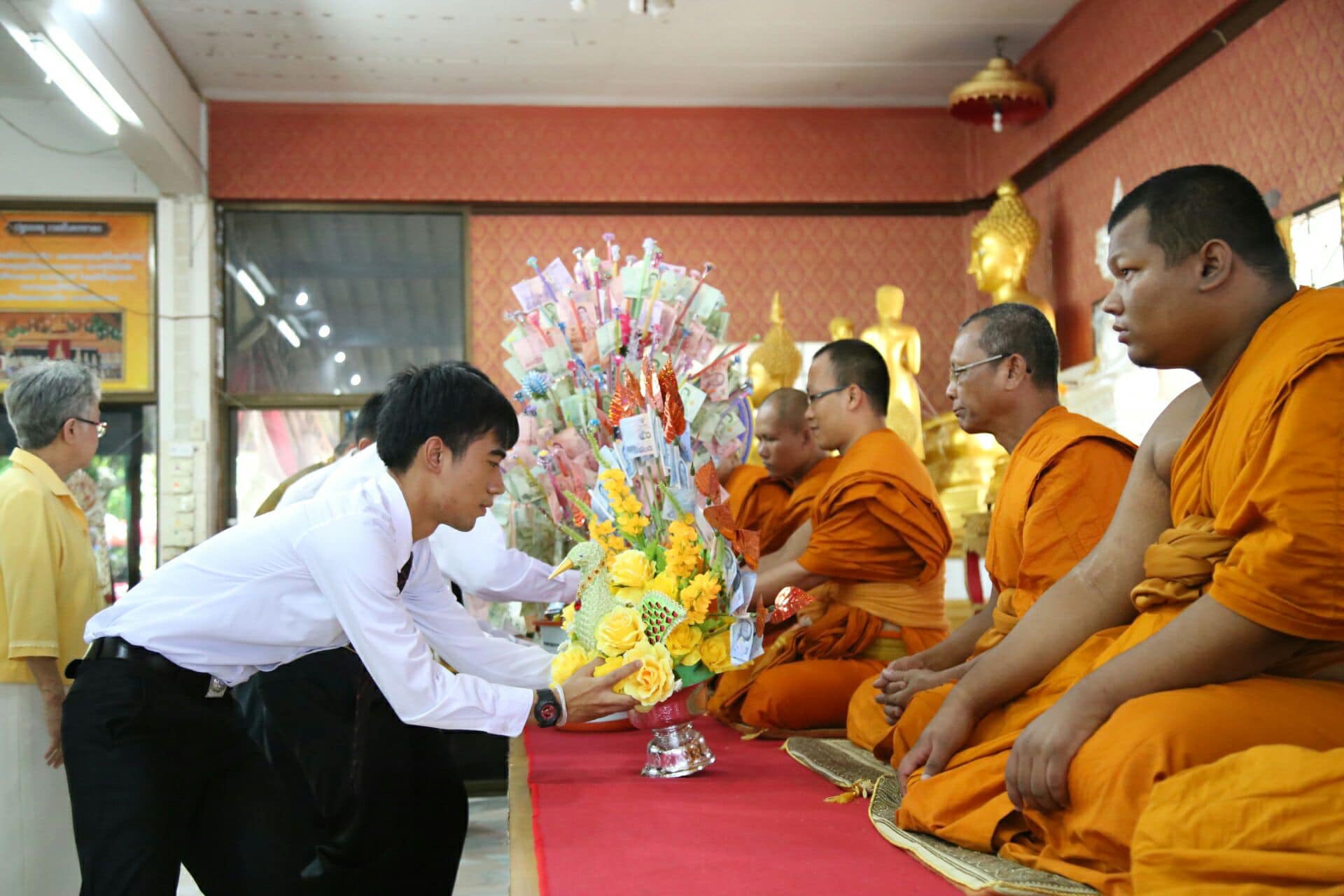 นำโดย อาจารย์ประพัฒน์ สีใส รองอธิการบดี และคณะผู้บริหาร อาจารย์ บุคลากร และนักศึกษามหาวิทยาลัย ร่วมกันถวายเทียนพรรษาและถวายจัตุปัจจัยอนุโมทนาบุญแด่พระภิกษุสงฆ์ เป็นการเสริมสร้างให้นักเรียน นักศึกษาได้ใกล้ชิดและสัมผัสกับศิลปวัฒนธรรมอันดีงาม มีส่วนร่วมในการตกแต่งเทียนพรรษา