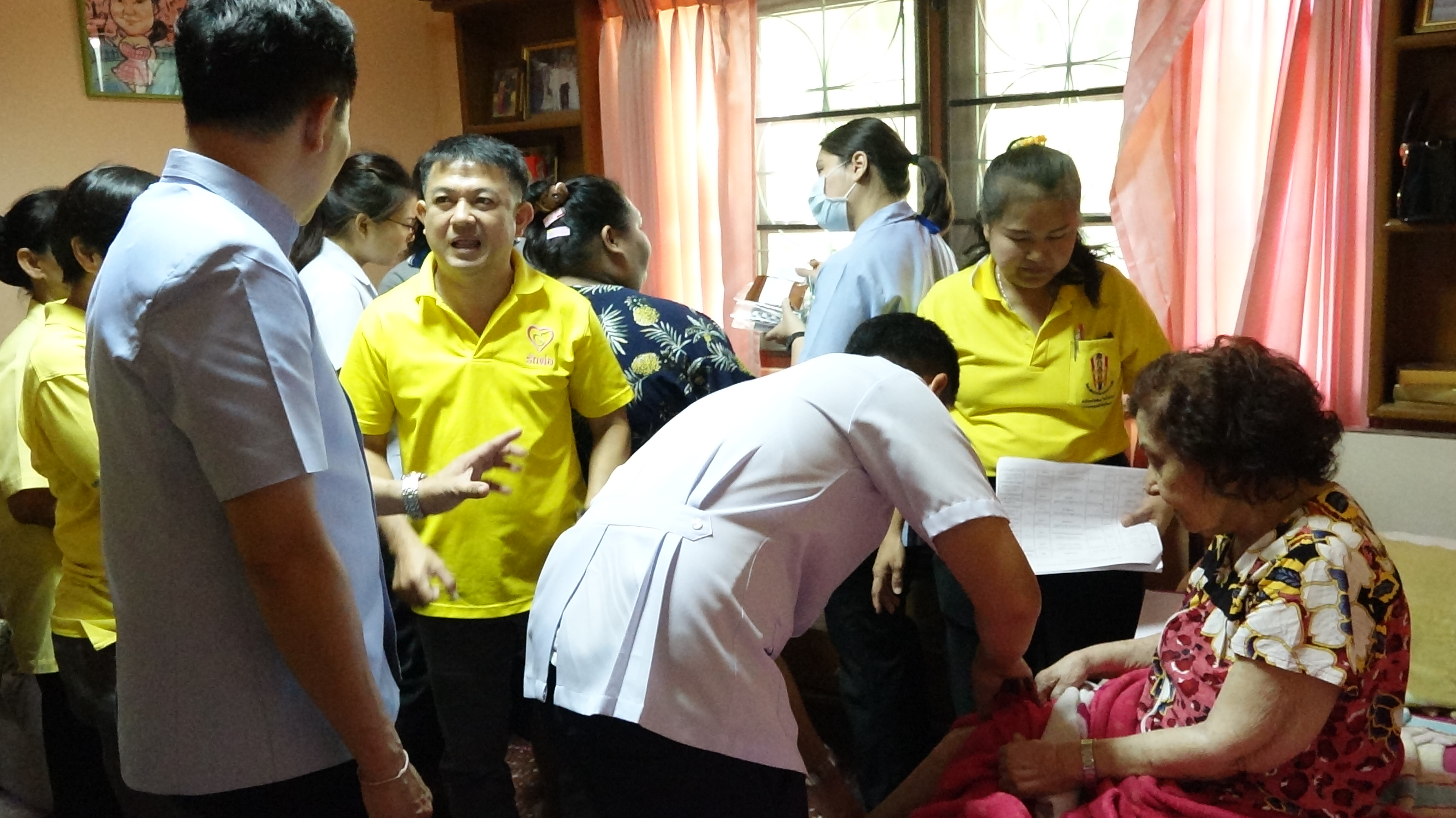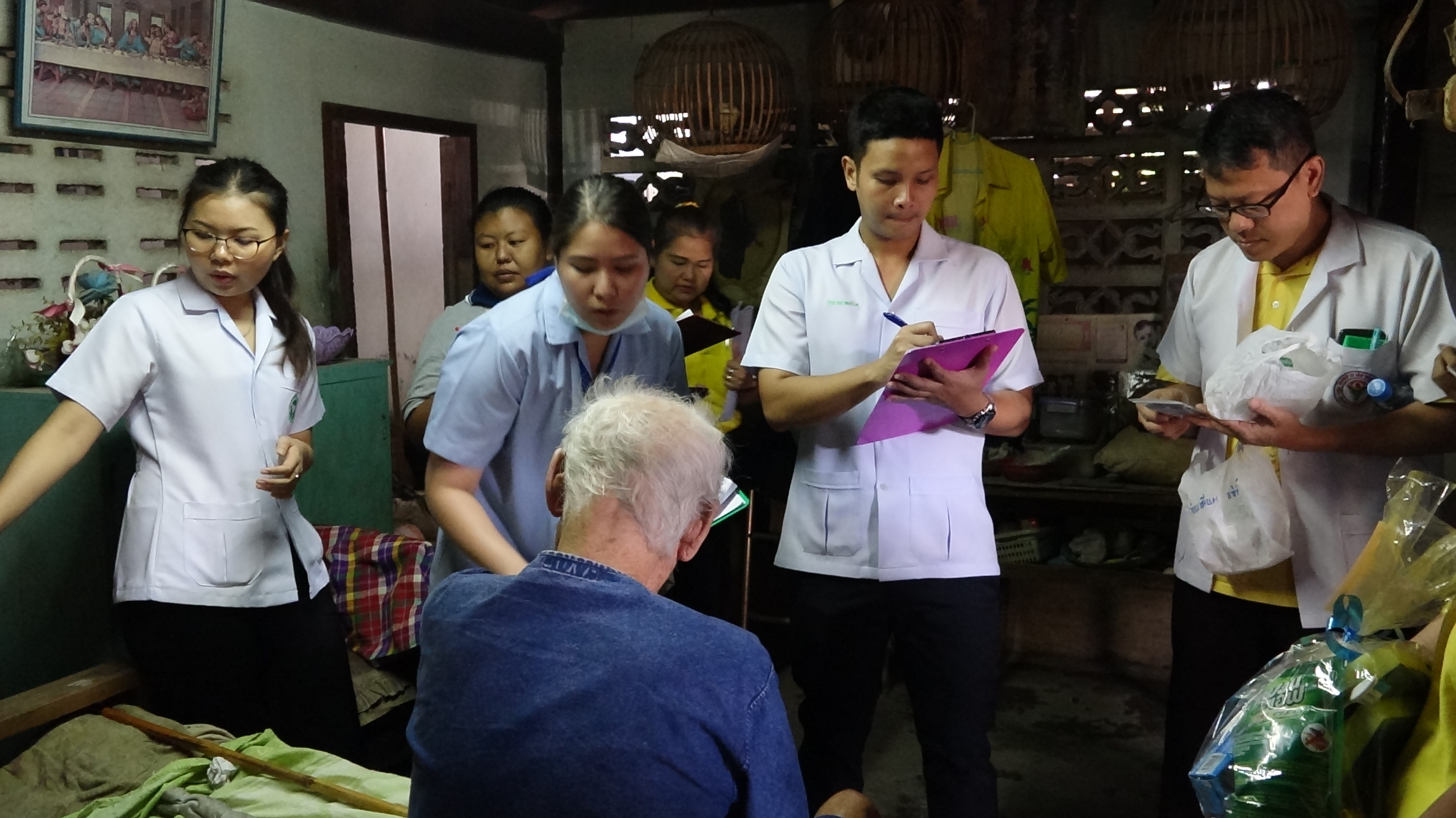 โดยมีคณะกรรมการ(พชอ.สามพราน)พร้อมด้วย สหวิชาชีพ มี พัฒนากรอำเภอ พยาบาลโรงพยาบาลสามพราน นักกายภาพบำบัด นักจิตวิทยา เจ้าหน้าที่รพ.สต.ท่าข้าม เภสัชกร นักโภชนาการ กำนัน ผู้ใหญ่บ้านตำบลท่าข้าม อสม. และกศน.อำเภอสามพราน ซึ่งในวันนี้ได้ลงพื้นที่เยี่ยมผู้สูงอายุผู้ป่วยติดเตียงและครอบครัว จำนวน 4 ครอบครัว เพื่อตรวจเยี่ยม ความเป็นอยู่ ในด้าน ต่างๆ เช่น สุขอนามัย ที่พักอาศัย อาหารสำหรับผู้ป่วย และยารักษาโรค
