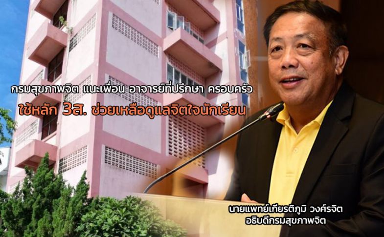 กรมสุขภาพจิต แนะการช่วยเหลือป้องกันนักเรียนฆ่าตัวตายในสถาบันการศึกษา ให้เพื่อนในชั้นเรียน อาจารย์ที่ปรึกษา ครอบครัว ใช้หลักการปฐมพยาบาลทางใจ 3 ส. คือ สอดส่องมองหา ใส่ใจรับฟัง และส่งต่อเชื่อมโยง ชี้สังเกตอาการและพฤติกรรม ที่บ่งบอกว่าเครียด ให้รีบเข้าไปช่วยเหลือโดยเร็ว หรือใช้บริการสายด่วนสุขภาพจิต 1323 ตลอด 24 ชั่วโมง พร้อมย้ำข้อมูลสาเหตุการฆ่าตัวตาย เกิดได้จากหลายสาเหตุ สื่อมวลชนไม่ควรด่วนสรุป