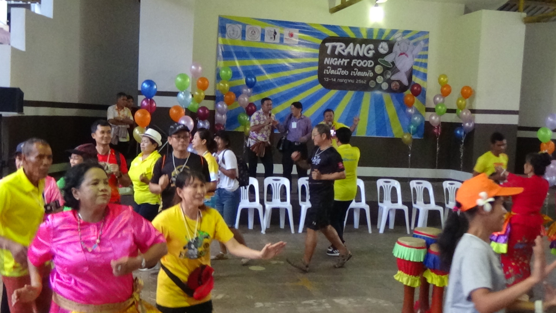 นำโดยขบวนกลองยาว ผ่าน หอนาฬิกา ประติมากรรมเด่นสง่ากลางสีแยก ถือเป็นเอกลักษณ์เมืองตรังและเป็นสีสันยามค่ำคืน วงเวียนพะยูน3 ประติมากรรมที่ทำให้หลงใหลกับ ความประณีต ประกอบด้วย พะยูนและม้า ซึ่งเป็นสัญลักษณ์ 1 ในเมือง 12 นักษัตร ร่วมสนุกครื้นเครงกับ “งานวัด” ณ ลานอเนกประสงค์สวนทับเที่ยง4 กิจกรรมสันทนาการ งานวัด รำวงเวียนครก – ถึง ตลาดเซนเตอร์ พอยท์5 หา RC และเช็คอินอีกที ณ ศูนย์โอทอป6 – ณ ตลาดชินตา7 เปิดหม้อ ล่อของ กินตามอัธยาศัย ในมนต์ เสน่ห์ยามค่ำคืน เสร็จสิ้นโครงการ เป็นการค้นหาความเป็นอัตลักษณ์ด้านการท่องเที่ยวคือ ตรัง ภาพลักษณ์เป็น เมืองท่องเที่ยวเชิงอาหาร อีกทั้ง แหล่งท่องเที่ยวทางยามค่ำคืนที่มีความสงบและสะอาด เหมาะแก่การพักผ่อน กิจกรรมดังกล่าวถือเป็นกลยุทธ์ด้านการตลาด เพื่อให้นักท่องเที่ยวรู้จักตรังในเรื่องแหล่งท่องเที่ยวหลักและแหล่งท่องเที่ยวรองที่สามารถเที่ยวตรังได้ในตลอดทั้งปี ทั้งนี้ ในวันจันทร์ที่ ๑๕ กรกฎาคม ททท. สำนักงานตรัง จัดไหว้พระทั่วไทย สุขใจถ้วนหน้า โดยนำผู้ประกอบการธุรกิจท่องเที่ยวจากจังหวัดสุราษฎร์ธานีและจังหวัดนครศรีธรรมราช มาร่วมสัมผัสความเป็นตัวตนของชาวตรัง ซึ่งคาดว่าก่อให้เกิดรายได้หมุนเวียนในพื้นที่ไม่ต่ำกว่า 70 ล้านบาท จึงขอเชิญชวนทุกท่านเข้าร่วมเป็นเจ้าของบ้านที่ดี เพื่อต้อนรับนักท่องเที่ยว อันจะนำมาซึ่งการกระจายรายได้สู่ท้องถิ่นอย่างยั่งยืนต่อไป