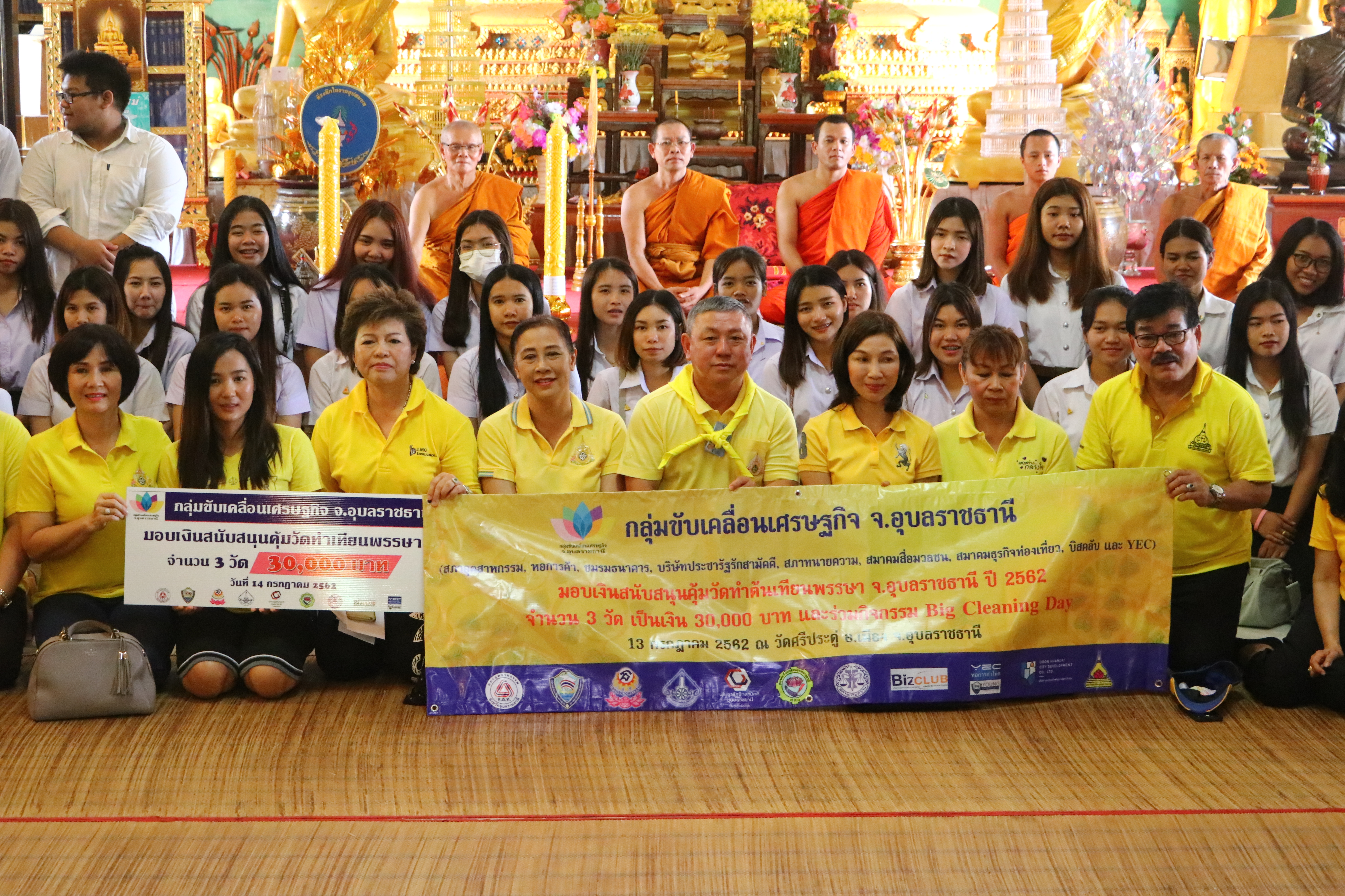 สำหรับ กลุ่มขับเคลื่อนเศรษฐกิจ จังหวัดอุบลราชธานี นั้น ประกอบไปด้วย สภาอุตสาหกรรม หอการค้า ชมรมธนาคาร บริษัทประชารัฐรักสามัคคี สภาทนายความ สมาคมสื่อมวลชน สมาคมธุรกิจท่องเที่ยว บิสคลับ และ YEC ได้ร่วมกันมอบเงินสนับสนุนให้กับคุ้มวัด เพื่อสนับสนุนเป็นค่าใช้จ่ายต่างๆ ในการทำต้นเทียน นับเป็นการสืบสานวัฒนธรรมประเพณีแห่เทียนเข้าพรรษาจังหวัดอุบลราชธานี ซึ่งเป็นประเพณีอันดีงาม ที่สะท้อนให้เห็นถึงความสามัคคี ร่วมมือ ร่วมแรง ร่วมใจของชาวบ้าน พระภิกษุ สามเณร พี่น้องประชาชน นักท่องเที่ยว กับช่างเทียน ทุกช่วงอายุ ตั้งแต่ เด็ก วัยรุ่น ผู้ใหญ่ ผู้สูงอายุ คุ้มวัดต่างๆ ในการทำต้นเทียนพรรษา ที่ต้องใช้ความปราณีต ความตั้งใจ สมาธิ ในการ รังสรรค์งานออกมาได้อย่างงดงาม อลังการ