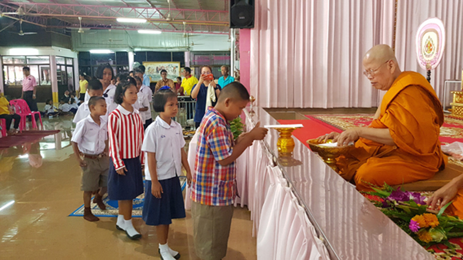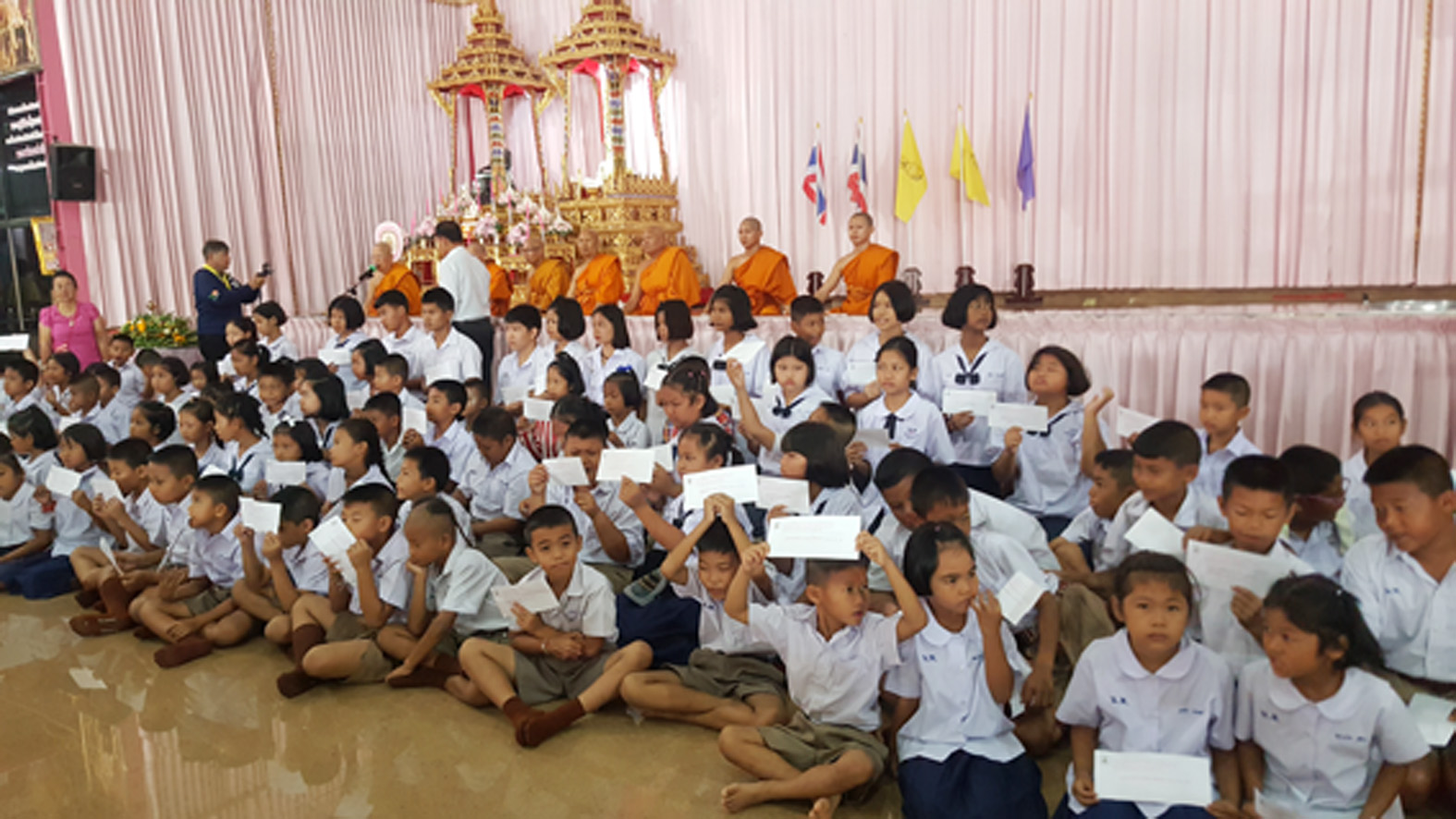 สุพรรณบุรี พุทธศาสนิกชนร่วมทำบุญวันอาสาฬหบูชานักเรียนรับแจกทุนการศึกษา
