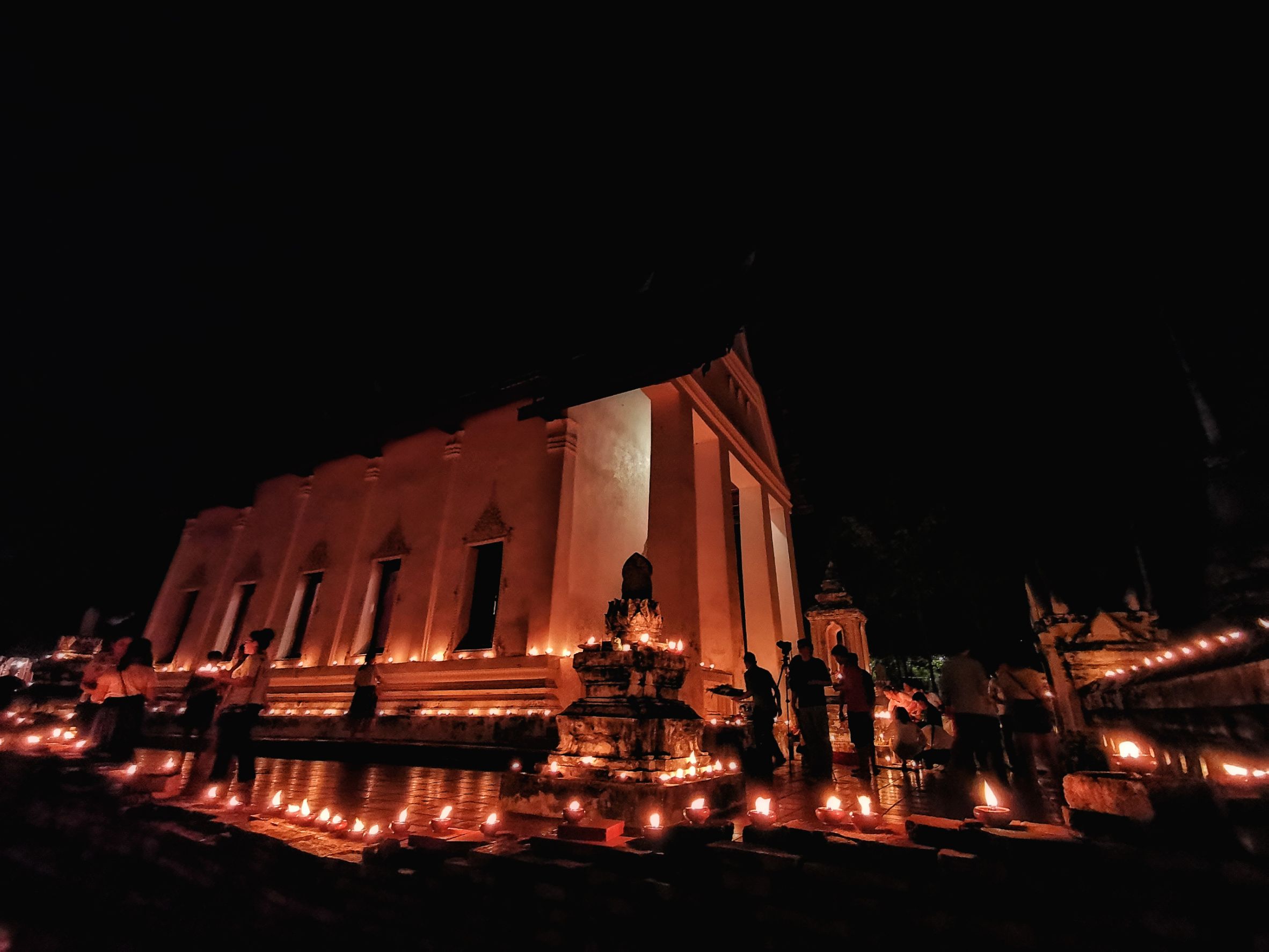 ขณะบรรยากาศพิธีเวียนเทียนรอบอุโบสถเก่าแก่ที่วัดสิงห์ ตำบลสามโคก อำเภอสามโคก จังหวัดปทุมธานี พุทธศาสนิกชนพาครอบครัวร่วมพิธีเจริญพุทธมนต์และเวียนเทียนรอบอุโบสถเก่าแก่อายุ 352 ปี พร้อมร่วมจุดประทีป 5,000 ดวง รอบอุโบสถถวายเป็นพุทธบูชาเนื่องในวันอาสาฬหบูชา โดยมีพระมหานิพนธ์ นิปโก เจ้าอาวาสวัดสิงห์ สามโคก นำสวดสรรเสริญพระรัตนตรัย สวดบท อิติปิโส ระลึกถึงพระธรรมคุณ ด้วยการสวด สวากขาโต และระลึกถึงพระสังฆคุณ ด้วยการสวด สุปะฏิปันโน และสวดคาถานมัสการพระพุทธคุณ พระธรรมคุณ พระสังฆคุณ นำประชาชนเวียนเทียนประทักษิณครบ 3 รอบ น้อมนำคำสอนขององค์พระสัมมาสัมพุทธเจ้า นำมาปฏิบัติเรื่องที่ง่ายที่สุด คือ การทำความดี ละเว้นความชั่วทั้งปวง ทำจิตใจให้ผ่องแผ้ว โดยเฉพาะการทำความดีที่ง่ายที่สุด คือ รักษาศีล 5