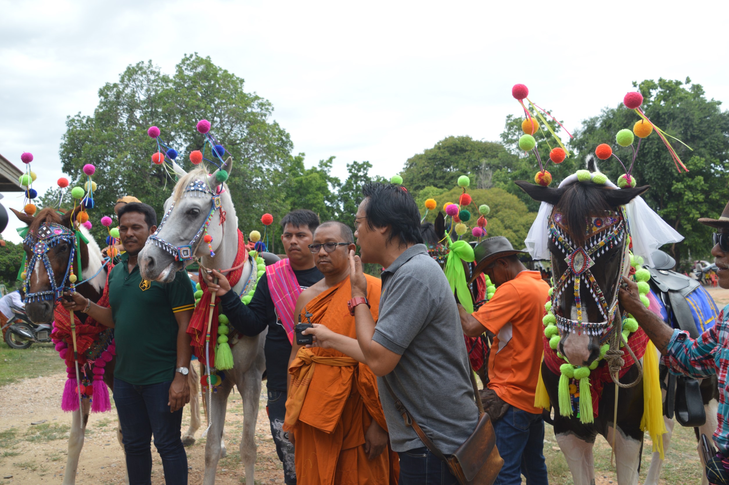 กาญจนบุรี ชาวบ้านกว่า 500 คนพร้อมใจกันจัดขบวนม้าย่อง 50 ตัว และวัวเทียมเกวียน เคลื่อนไปตามถนนยาว 2 ก.ม. เพื่อประกอบพิธีถวายเทียนพรรษา ที่โรงเรียนบ้านหนองโสน ตำบลหนองโสน อำเภอเลาขวัญ จังหวัดกาญจนบุรี นายสุดใจ สนประเสริฐ เป็นประธานในพิธี ปล่อยขบวนแห่เทียนเข้าพรรษาโดยมีพระครูโสภณกาญจนเขต เจ้าคณะตำบลทุ่งกระบ่ำเขต 2 และเจ้าอาวาสวัดนางามพร้อมด้วย นายชาติชาย ฉัตรเมธี นายกองค์การบริหารส่วน ต.หนองโสน คณะผู้บริหาร เจ้าหน้าที่ สำนักงานองค์การบริหารส่วน ต.หนองโสน ครู อาจารย์ พี่น้องประชาชนรวมกว่า 500 คนป้ายเชิญชวน งดเหล้าเข้าพรรษา