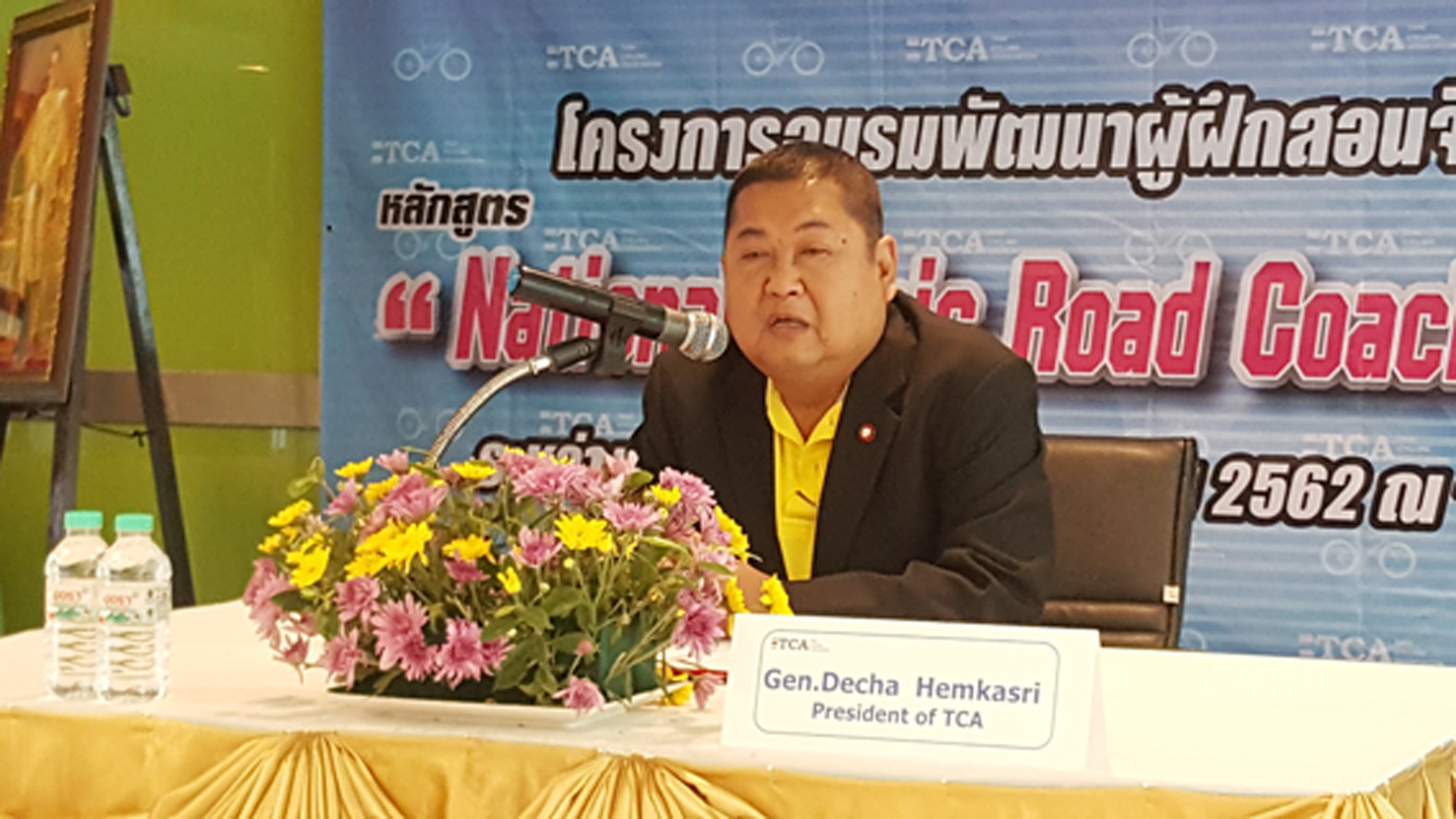 พลเอกเดชา นายกสมาคมกีฬาจักรยานแห่งประเทศไทยฯ กล่าวว่าโครงการอบรมผู้ฝึกสอนกีฬาจักรยานอาชีพ ประเภทถนนเป็นความร่วมมือระหว่างการกีฬาแห่งประเทศไทย ในส่วนของโครงการอบรมกีฬาอาชีพ, สมาคมกีฬาจักรยานแห่งประเทศไทยในพระบรมราชูปถัมภ์ และสหพันธ์จักรยานนานาชาติ (UCI) ได้กำหนดให้จัดโครงการอบรมผู้ฝึกสอนกีฬาจักรยานอาชีพประเภทถนน ประจำปีงบประมาณ 2562 รายการ “National Basic Road Coaching Course 2019” ณ จังหวัดสุพรรณบุรี เป็นการให้ความรู้เพิ่มทักษะแก่ผู้ฝึกสอนโดยวิทยากรที่มีความรู้ความสามารถและมีประสบการณ์มีคามเชี่ยวชาญ ชาวมาเลเซียและชาวอังกฤษ มาบรรยายให้ความรู้ สำหรับการฝึกอบรมตามโครงการนี้ตนหวังว่าผู้เข้ารับการอบรมจะนำความรู้ที่ได้จากการฝึกอบรม นำไปถ่ายทอดความรู้และการสอนเทคนิคเพื่อพัฒนากีฬาจักรยานอาชีพประเภทถนนให้ก้าวไกลและได้มาตรฐานมากยิ่งขึ้น เพื่อเป็นแนวทางในการปฏิบัติจริงในการฝึกซ้อมและแข่งขันของนักกีฬาจักรยานประเภทถนน