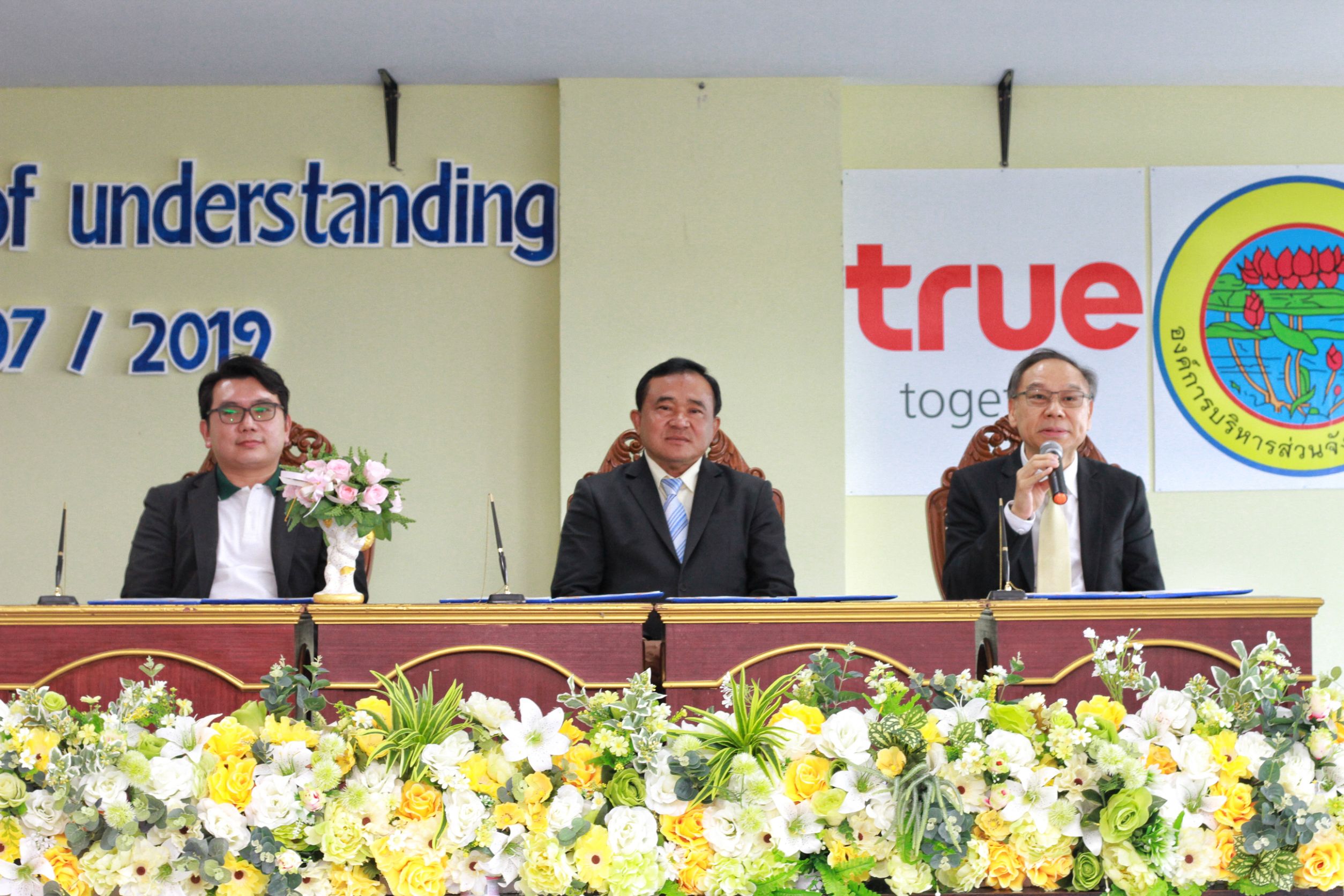เมื่อวันที่ 21 กรกฎาคม 2562 ที่โรงเรียนสามโคก ตำบลบ้านงิ้ว อำเภอสามโคก จังหวัดปทุมานี องค์การบริหารส่วนจังหวัดปทุมธานีร่วมลงนามในบันทึกข้อตกลงความร่วมมือ (MOU) 3 ฝ่ายลงนามความร่วมมือกับ บริษัท ทรูคอร์ปอเรชั่น จำกัด มหาชน และสถาบันการจัดการปัญญาภิวัฒน์ โดยการนำของนายชาญ พวงเพ็ชร์ นายกองค์การบริหารส่วนจังหวัดปทุมธานี นายอาณัติ เมฆไพบูลวัฒนา ผู้อำนวยการการบริหารอาวุโสด้านการบริหารจัดการกรุงเทพฯและปริมณฑลจากบริษัท ทรูคอร์ปอเรชั่น จำกัด มหาชน และ นายณัฐวุฒิ อธิรัฐธนาธรณ์ ผู้อำนวยการสำนักแนะแนวและรับสมัคร สถาบันการจัดการปัญญาภิวัฒน์ ซึ่งการลงนามประสานความร่วมมือดังกล่าว จะเป็นการเสริมประสิทธิภาพในการจัดการศึกษา เช่นการอบรมให้ความรู้ต่างๆที่จำเป็นกับการศึกษาและการดำรงชีวิต การสนับสนุนทุนการศึกษา การปรับปรุงสัญญาณเครือค่ายและอินเตอร์เน็ตความเร็วสูง(School net) ให้กับนักเรียนและบุคลากร