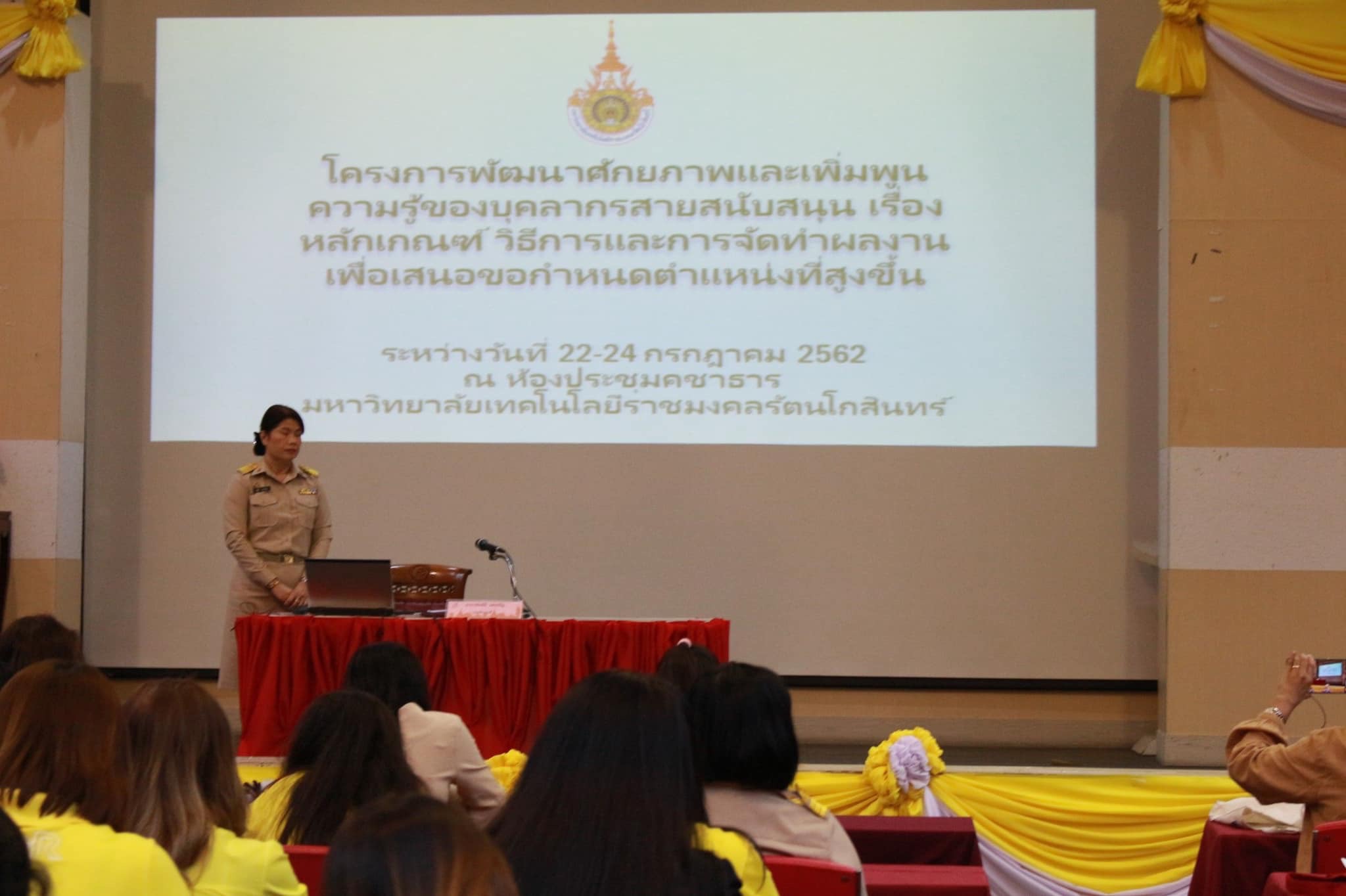 ซึ่งโครงการอบรมดังกล่าวส่งเสริมให้บุคลากรได้จัดทำคู่มือการปฏิบัติงานและผลงานวิจัยที่เกิดจากการพัฒนาความรู้ ความสามารถและประสบการณ์ เพื่อนำไปเสนอขอกำหนดตำแหน่งให้สูงขึ้น เพื่อยกระดับคุณภาพการปฏิบัติหน้าที่และสะท้อนถึงความตื่นตัวในการพัฒนาการปฏิบัติหน้าที่ของบุคลากรให้มีประสิทธิภาพมากยิ่งขึ้น ผู้เข้าร่วมโครงการ ขำนวน 70 คน ณ ห้องคชาธาร มหาวิทยาลัยเทคโนโลยีราชมงคลรัตนโกสินทร์
