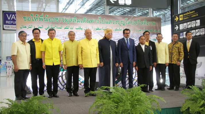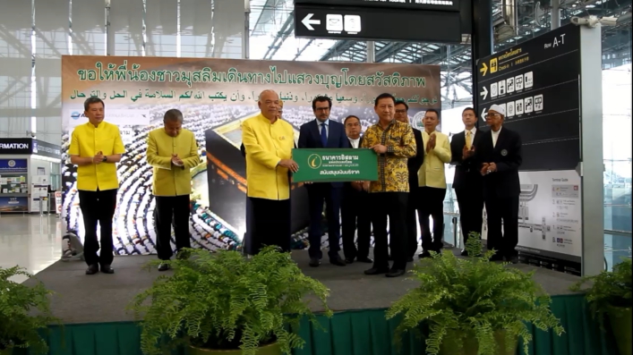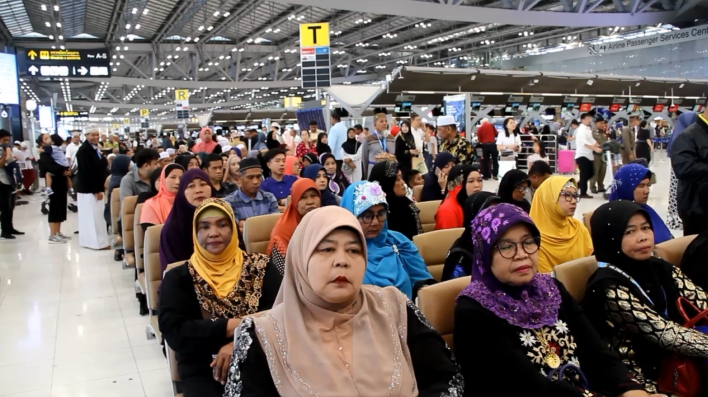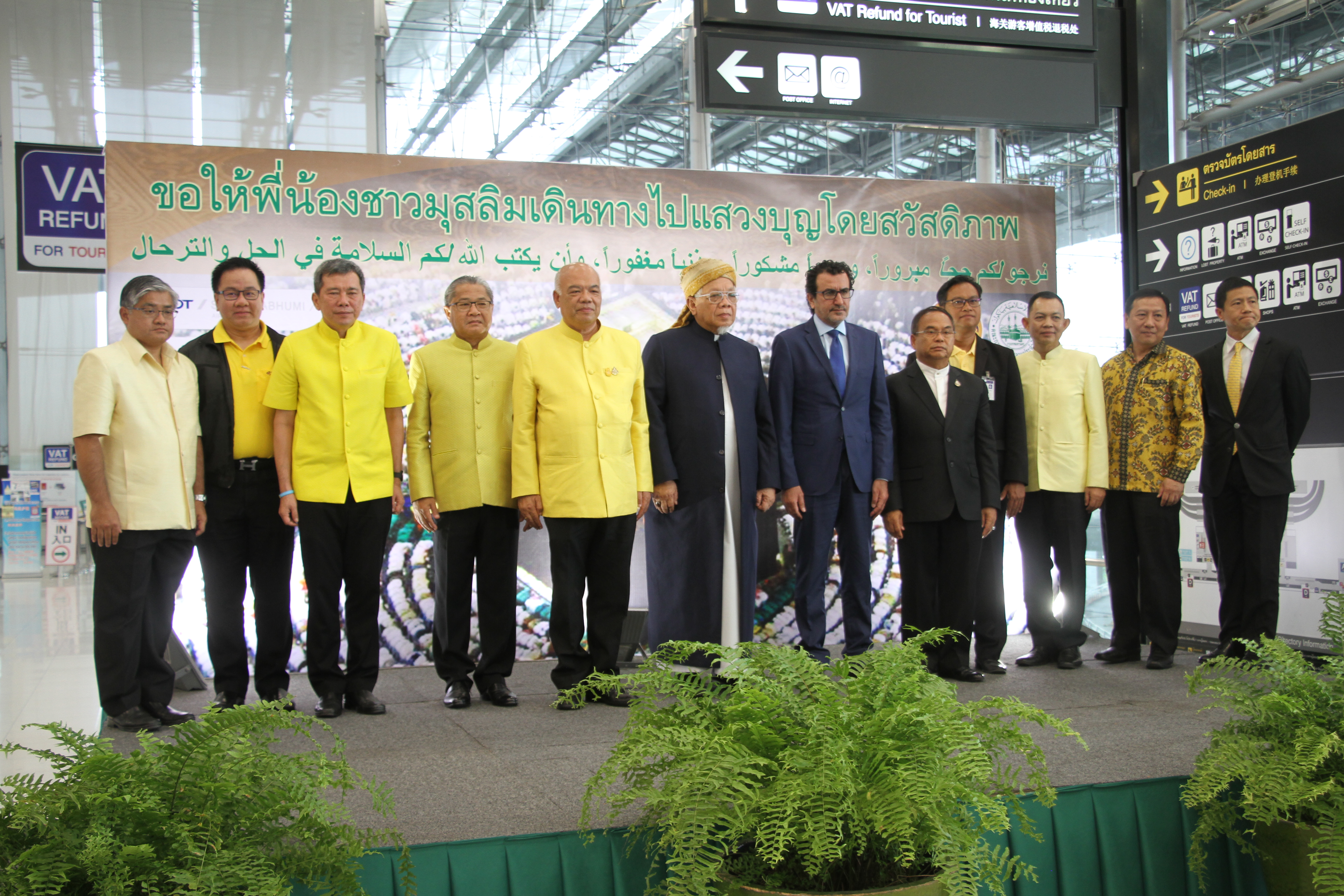 ***** ทั้งนี้ เพื่อให้ผู้เดินทางไปแสวงบุญได้รับความสะดวกรวดเร็วในการใช้บริการ ทางท่าอากาศยานสุวรรณภูมิได้จัดเจ้าหน้าที่ในการให้ข้อมูลเกี่ยวกับขั้นตอนการตรวจค้นร่างกายและสัมภาระข้อห้ามในการนำของเหลวเจลสเปรย์ขึ้นเครื่องพร้อมทั้งจัดเจ้าหน้าที่อำนวยความสะดวกที่บริเวณห้องโถงผู้โดยสารขาออกชั้น 4 ประตู 9 นอกจากนั้นยังได้มีการประสานงานการทำงานระหว่างหน่วยงานที่เกี่ยวข้องทั้งสายการบิน, บก.ตม.2 และศุลกากรตรวจของผู้โดยสาร และด่านควบคุมโรค โดยมีการบูรณาการการทำงานร่วมกันอย่างเป็นระบบเพื่ออำนวยความสะดวกให้กับผู้แสวงบุญ รวมถึง ได้จัดเตรียมสิ่งอำนวยความสะดวกอื่นๆไว้รองรับผู้เดินทางไปแสวงบุญให้พร้อมใช้งาน อาทิ ห้องละหมาดจำนวน 3 ห้องบริเวณชั้น 3 อาคารผู้โดยสารและภายในอาคารเทียบเครื่องบินE ชั้น 3 และอาคารเทียบเครื่องบิน C ชั้น 2 พื้นที่พักคอยมีป้ายข้อความแนะนำเส้นทางทั้งนี้สามารถสอบถามข้อมูลเพิ่มเติมได้ที่ AOT Contact Center หมายเลขโทรศัพท์ถึง 1722 ตลอด 24 ชั่วโมง