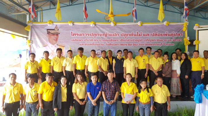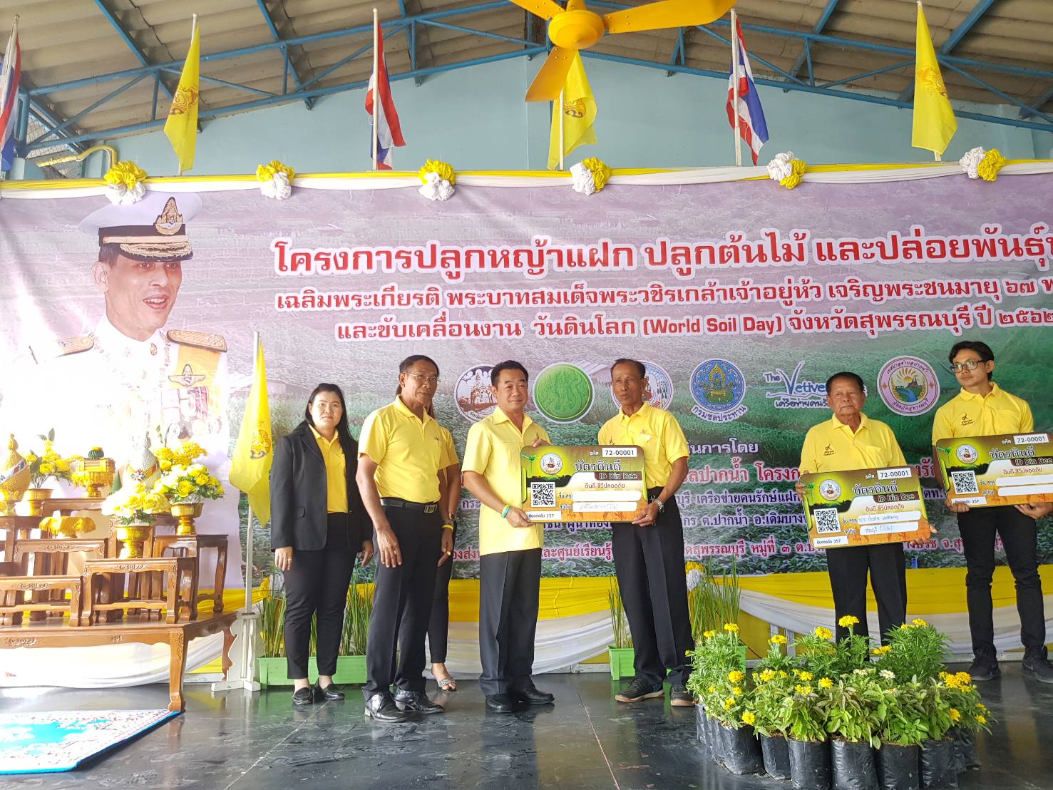 สุพรรณบุรี ปลูกหญ้าแฝก ต้นไม้ ปล่อยพันธุ์ปลา เฉลิมพระเกียรติ