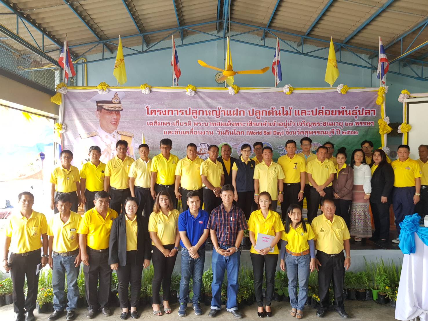 ที่ลานเอนกประสงค์บ้านท่าทอง ตำบลปากน้ำ อำเภอเดิมบางนางบวช นายนิมิต วันไชยธนวงศ์ ผู้ว่าราชการจังหวัดสุพรรณบุรี เป็นประธานเปิดโครงการรณรงค์ปลูกหญ้าแฝก ปลูกต้นไม้ และปล่อยพันธุ์ปลา เฉลิมพระเกียรติ พระบาทสมเด็จพระวชิรเกล้าเจ้าอยู่หัว พระชนมายุครบ 67 พรรษา และขับเคลื่อนงาน “ วันดินโลก (World Soil Day) จังหวัดสุพรรณบุรี ปี 2562 ” โดยมีนายวัฒนา ยั่งยืน นายอำเภอเดิมบางนางบวช พร้อมส่วนราชการให้การต้อนรับและร่วมกิจกรรม ปลูกหญ้าแฝกจำนวน 200,000 กล้า ปลูกต้นรวงผึ้งต้นไม้ประจำพระองค์รัชกาลที่ 10 ต้นพยุง และไม้ป่าอื่นๆ จำนวน 267 ต้นและปล่อยพันธุ์ปลา ปลากาดำ ปลาพื้นถิ่น จำนวน 400,000 ตัว