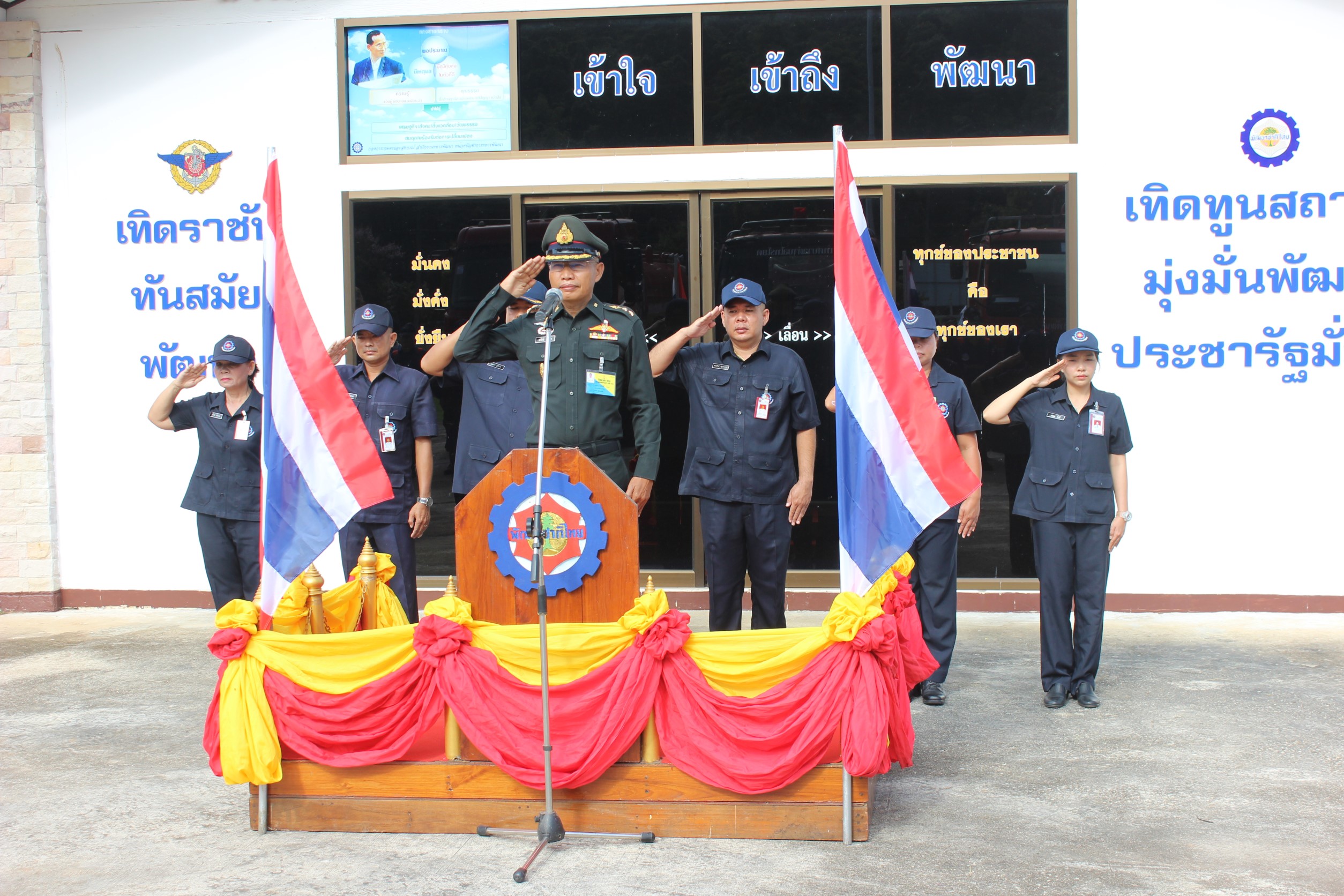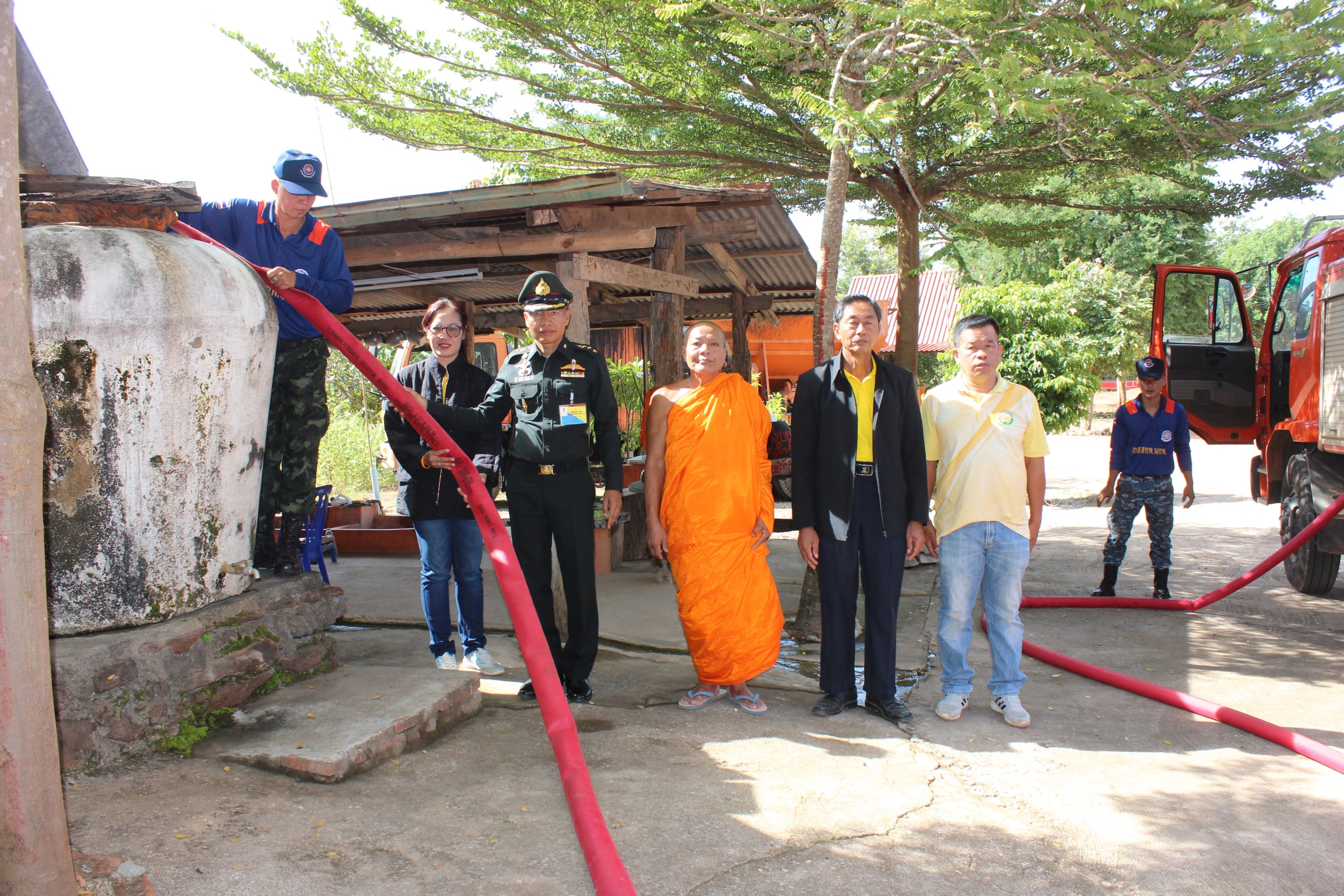โดยพันเอก ยศศักดิ์ บรรเทา ผู้อำนวยการกองการเกษตรและสหกรณ์ สำนักงานทหารพัฒนาภาค 1 หน่วยบัญชาการทหารพัฒนา กองบัญชาการกองทัพไทย ได้ตรวจความพร้อมและการซักซ้อมการปฏิบัติของ ศูนย์บรรเทาสาธารณภัย กองการเกษตรและสหกรณ์ ร่วมกับ หน่วยพระราชทานจิตอาสา 904 วปร. เราทำความดีด้วยหัวใจ เทศบาลตำบลไทรโยค เทศบาลตำบลท่าเสา เตรียมความพร้อมช่วยเหลือประชาชน โดยได้จัดเตรียม เจ้าหน้าที่ชุดเคลื่อนที่เร็ว ยานพาหนะ รถบรรทุกน้ำ ขนาด 6,000 ลิตร จำนวน 3 คัน และอุปกรณ์อื่นๆ ให้มีความพร้อมในการใช้งาน และพร้อมเข้าช่วยเหลือภัยแล้งได้ทันที หลังจากเกิดฝนทิ้งช่วงสัปดาห์ ในหลายพื้นที่รับผิดชอบ ที่ส่งผลกระทบให้ประชาชนขาดแคลนน้ำอุปโภค บริโภค รวมถึงน้ำเพื่อการเกษตรอีกด้วย ซึ่งหากมีการร้องขอความช่วยเหลือมายังหน่วย ทางหน่วยก็พร้อมเข้าดำเนินการช่วยเหลือตลอด 24 ชม. พร้อมกันนี้ กองการเกษตรและสหกรณ์ สำนักงานทหารพัฒนาภาค 1 หน่วยบัญชาการทหารพัฒนา ได้นำน้ำไปแจกจ่ายให้กับประชาชนที่ขาดแคลนน้ำ อุปโภค บริโภค พร้อมแจกน้ำให้กับวัดและโรงเรียนด้วย