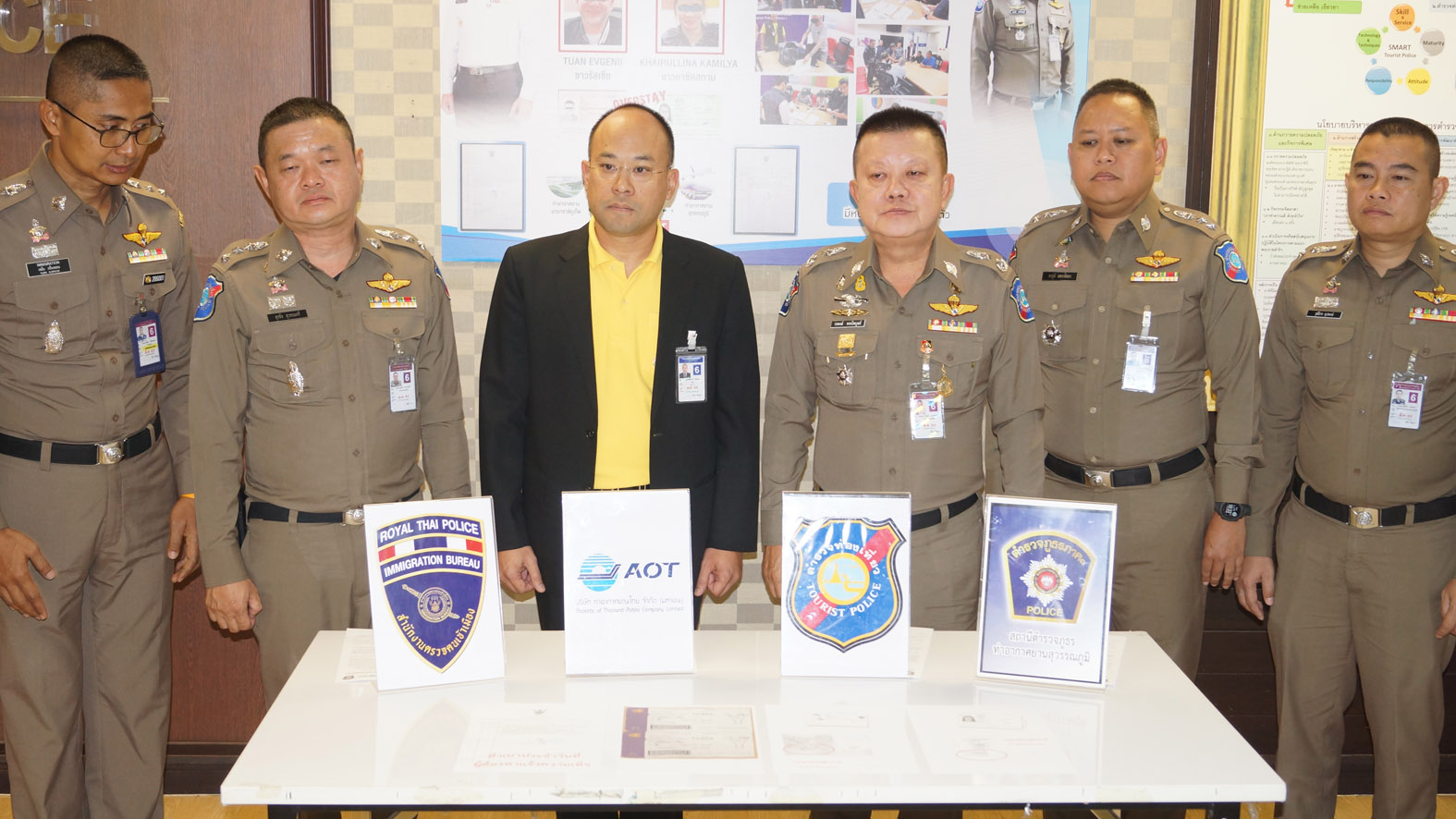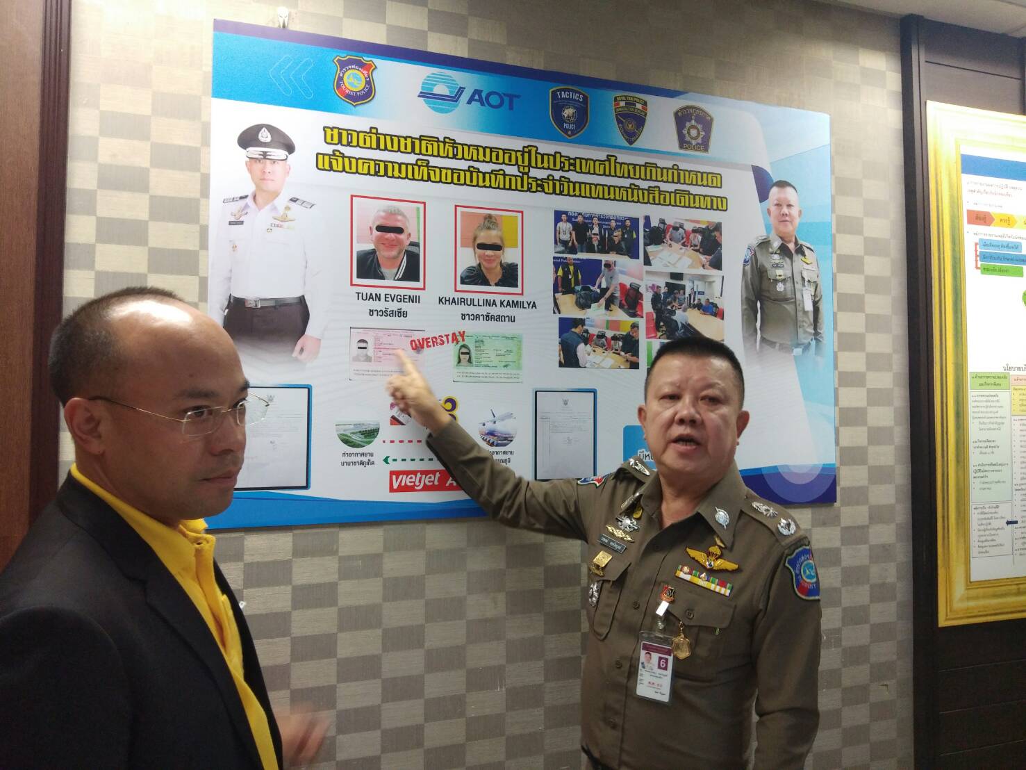 *****พล.ต.ต.วรพงษ์ ทองไพบูลย์ ผบก.ทท.1 กล่าวว่า สืบเนื่องจากเมื่อเวลา 22.30 น.วันที่ 23 กรกฎาคม 2562 นายเยฟเกนี ตูราน ชาวรัสเซีย และ น.ส.คามิลเลีย ไครูลยีนา ชาวคาซัคสถาน สองสามีภรรยา ได้เข้ามาที่ กองบังคับการตำรวจท่องเที่ยวท่าอากาศยานสุวรรณภูมิ เพื่อแจ้งความประสงค์ว่าจะเดินทางไปจังหวัดภูเก็ต แต่สายการบินไม่อนุญาตให้เดินทาง เนื่องจากไม่ได้นำหนังสือเดินทางมา จึงมาขอลงบันทึกประจำวันเพื่อเป็นหลักฐานยืนยันต่อสายการบินในการเดินทาง เจ้าหน้าที่ตำรวจท่องเที่ยวจึงพาผู้ต้องหาทั้ง 2 ไปยัง พบพนักงานสอบสวน สภ.ท่าอากาศยานสุวรรณภูมิ เพื่อขอลงบันทึกประจำวัน แต่ระหว่างนั้นเจ้าหน้าที่สังเกตพบว่าผู้ต้องหาทั้งสองท่าทางมีพิรุธ หลังลงบันทึกประจำวันเรียบร้อย เจ้าหน้าที่ตำรวจท่องเที่ยว จึงได้เชิญตัวทั้งสอง มาที่กองบังคับการตำรวจท่องเที่ยวสุวรรณภูมิ พร้อมทั้งประสานเจ้าหน้าที่ตรวจคนเข้าเมืองและเจ้าหน้าที่ท่าอากาศยานสุวรรณภูมิ มาร่วมตรวจสอบ