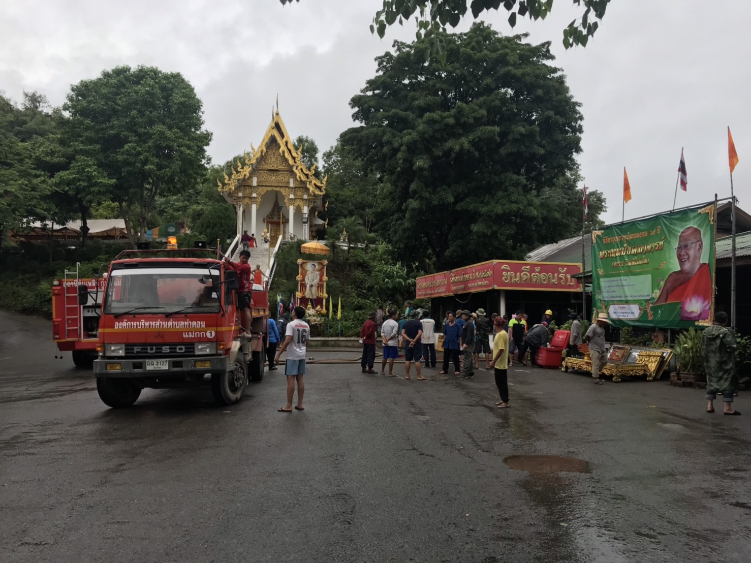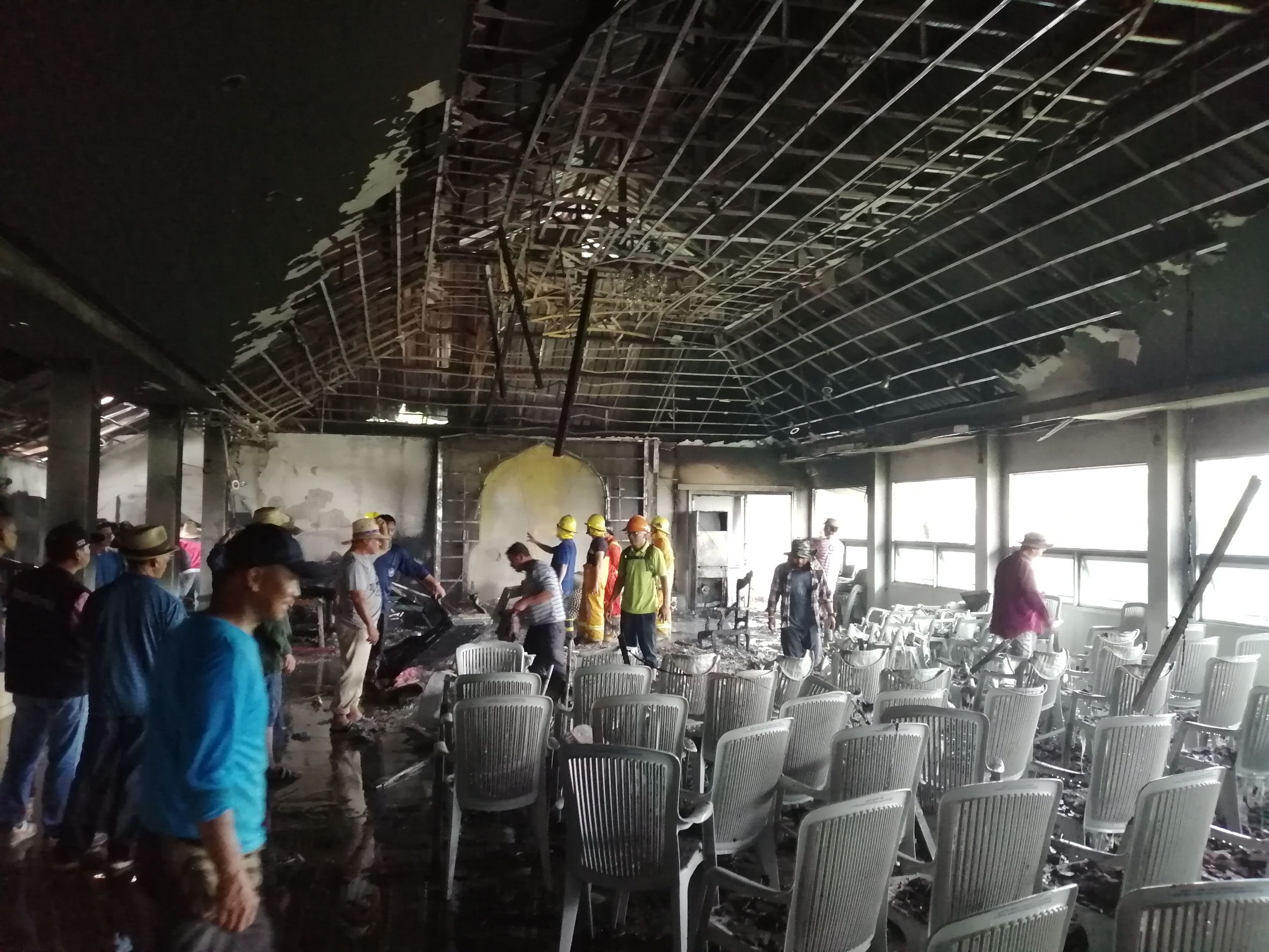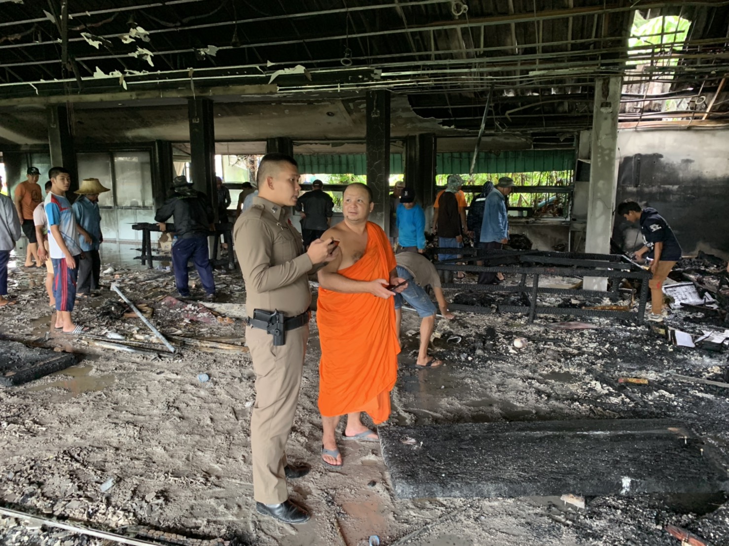 ทางชุดดับเพลิงก็ได้เข้ามาทำการช่ววยดับไฟที่ลุกไหม้จนดับสนิทลงแล้วทางตำรวจภูธรแม่อายก็ได้มาทำการบันทึกและจะเรียกทางกองพิสูจน์หลักฐานทางวิทยาศาตร์ ตำรวจภูธรภาค5 มาทำการตรวจพิสูจน์ต่อไป สำหรับความเสียหายนั้นก็มีเครื่องปรับอากาศแอร์แบบตั้งระเบิดและไหม้เสียหาย 1ตัว เพดานอาคารไหม้เสียหายทั้งหมด เก้าอี้ที่เป็นพลาสติกก็ไหม้เสียหายในบางส่วน อาคารไม่เสียหาย สามารถที่จะทำการซ่อมแซ่มได้เพราะมีการดับไฟได้ก่อนที่จะโหมไหม้รุนแรงนับว่าโชคดีที่ยังไม่มีใครได้รับบาดเจ็บ