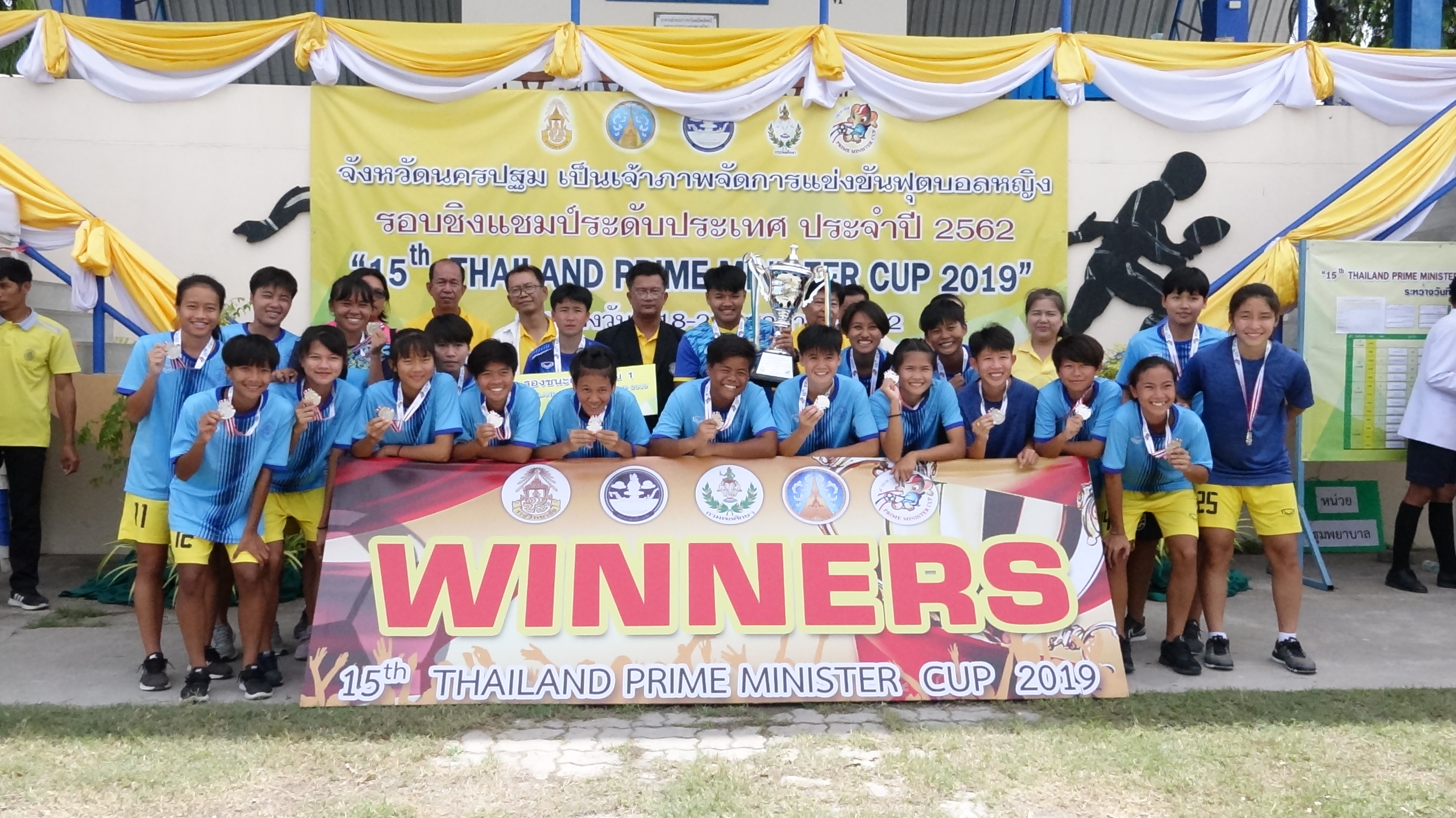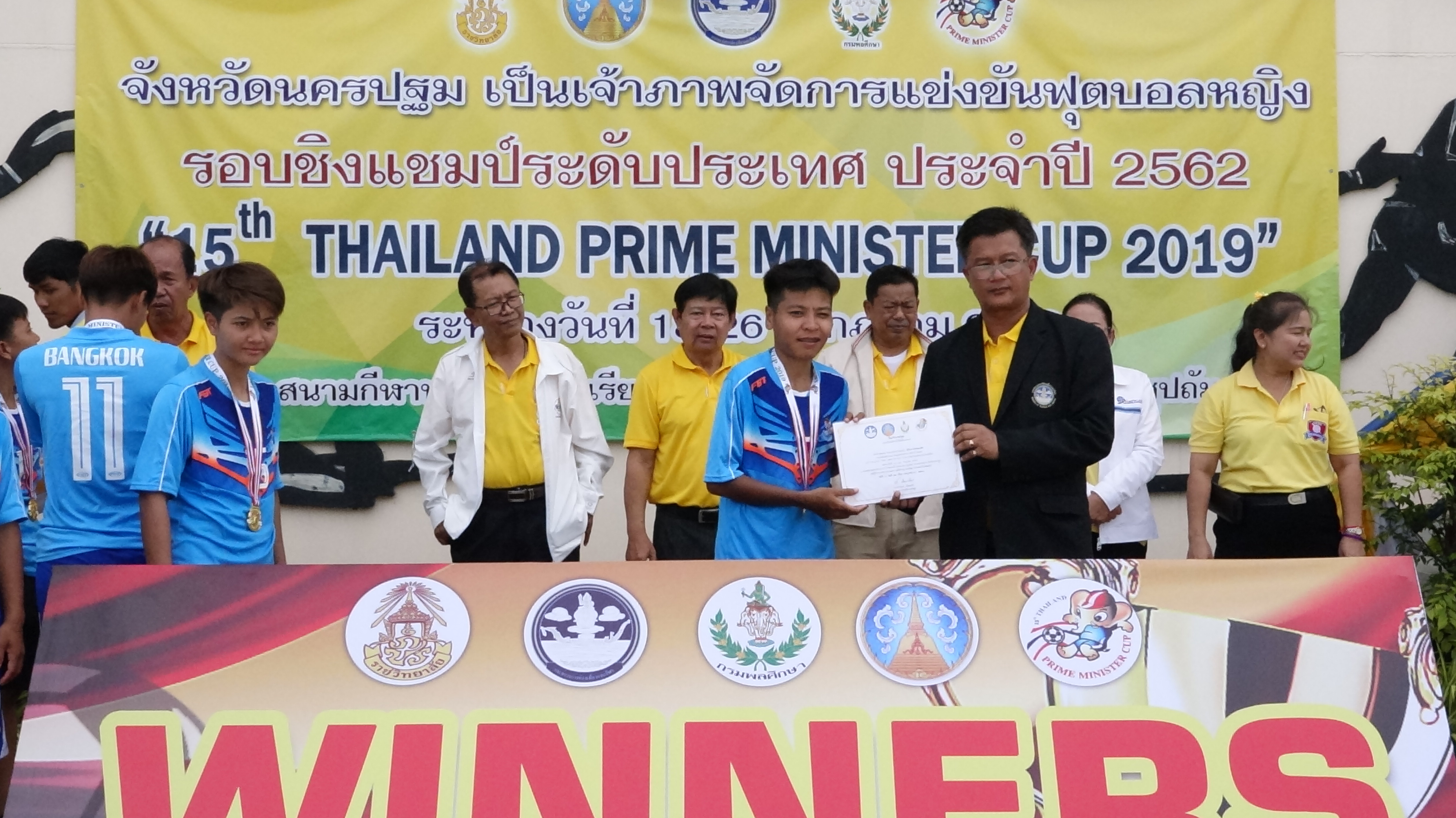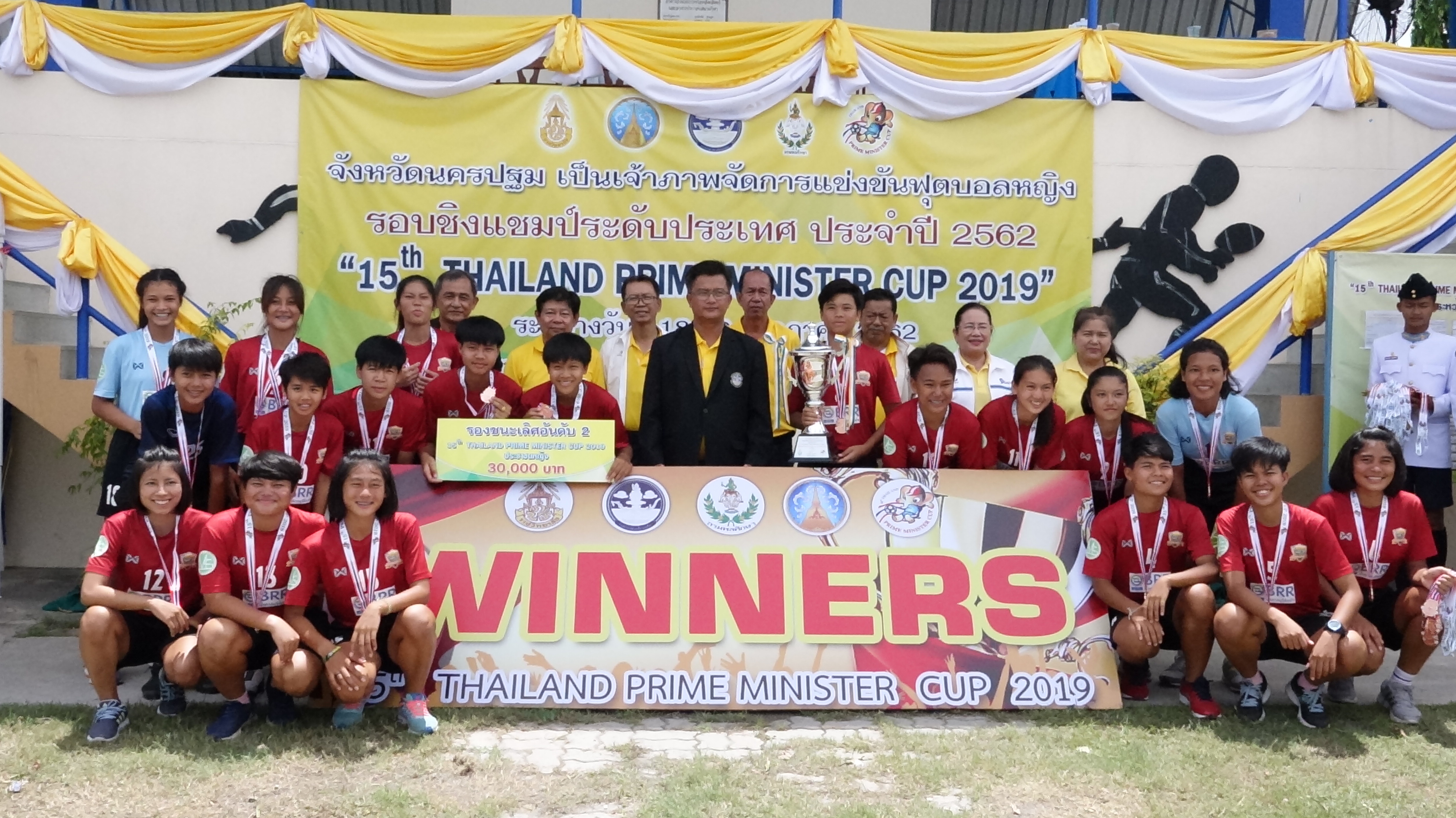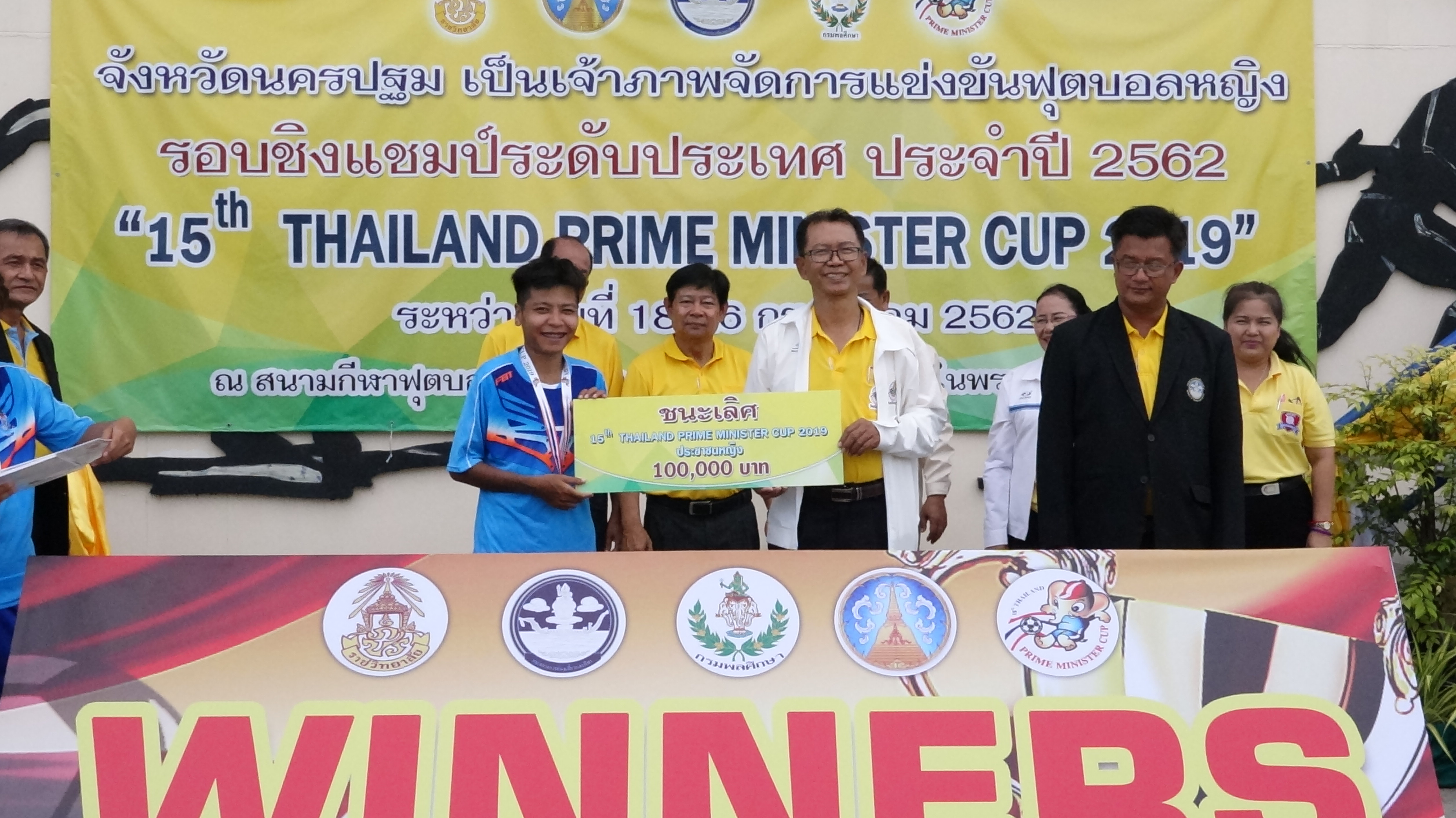 นายอุดม โอษฐยิ้มพราย ท่องเที่ยวและกีฬาจังหวัดนครปฐม ผู้แทนผู้ว่าราชการจังหวัดนครปฐม เป็นประธานในพิธีปิดการแข่งขันฟุบอลเยาวชนและประชาชน ครั้งที่ 15 ประจำปี2562 “15h THAILAND PRIME MINISTER CUP 2019″รอบชิงชนะเลิศแห่งประเทศไทย ปะเภทประชาชนหญิง โดยมีนายกนก ปิ่นตบแต่ง ศึกษาธิการจังหวัดนครปฐม กล่าวรายงาน พร้อมด้วยคณะนักกีฬาและเจ้าหน้าที่ ซึ่งการจัดการแข่งขันครั้งนี้ ได้เริ่มแข่งขันมาตั้งแต่วันที่ 19-26 กรกฏาคม 2562และได้เสร็จสิ้นการแข่งขันในวันนี้ ซึ่งในการจัดการแข่งขันครั้งนี้ มีนักกีฬาตัวแทนเขตต่างๆ จาก 10 เขต ทั่วประเทศ
