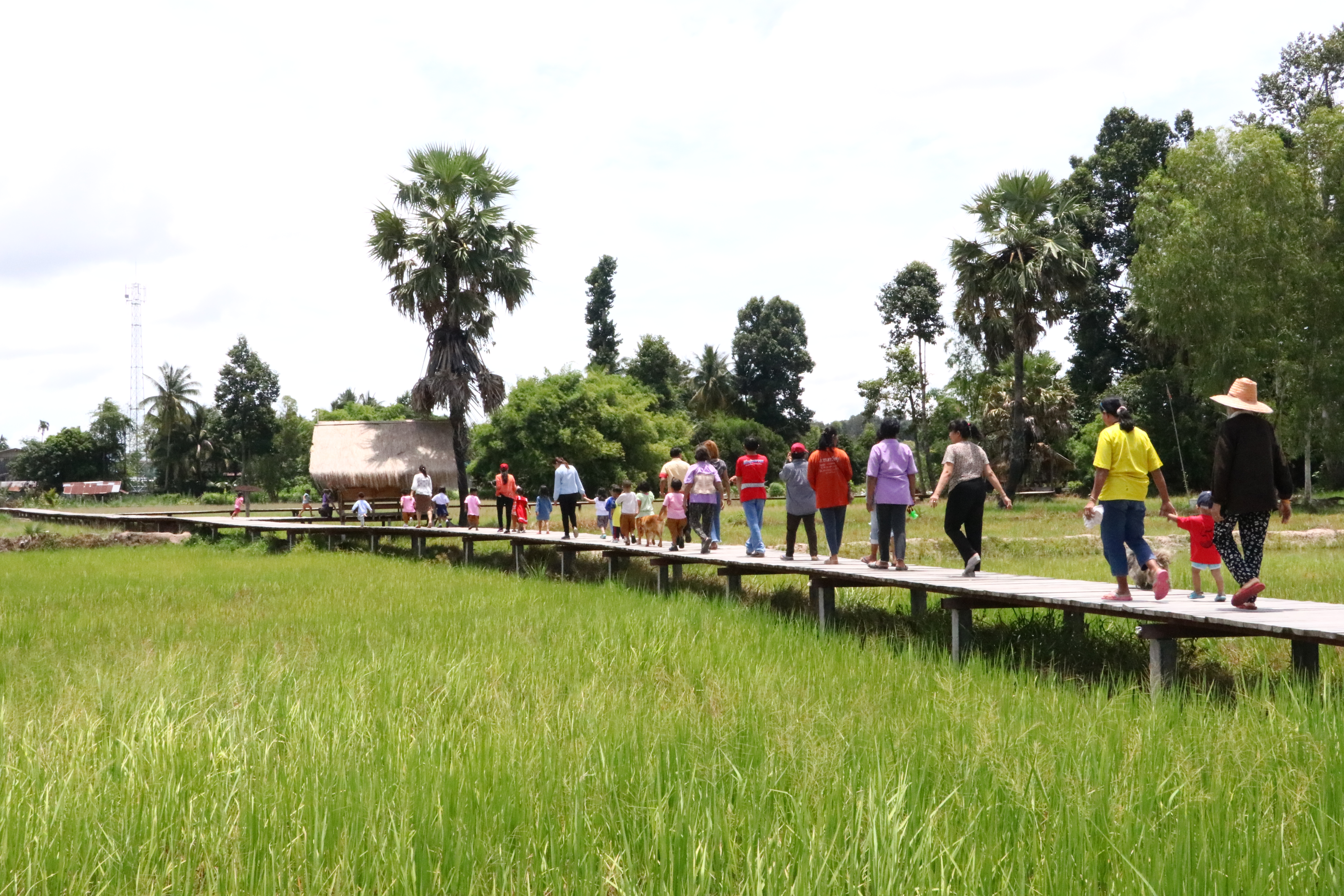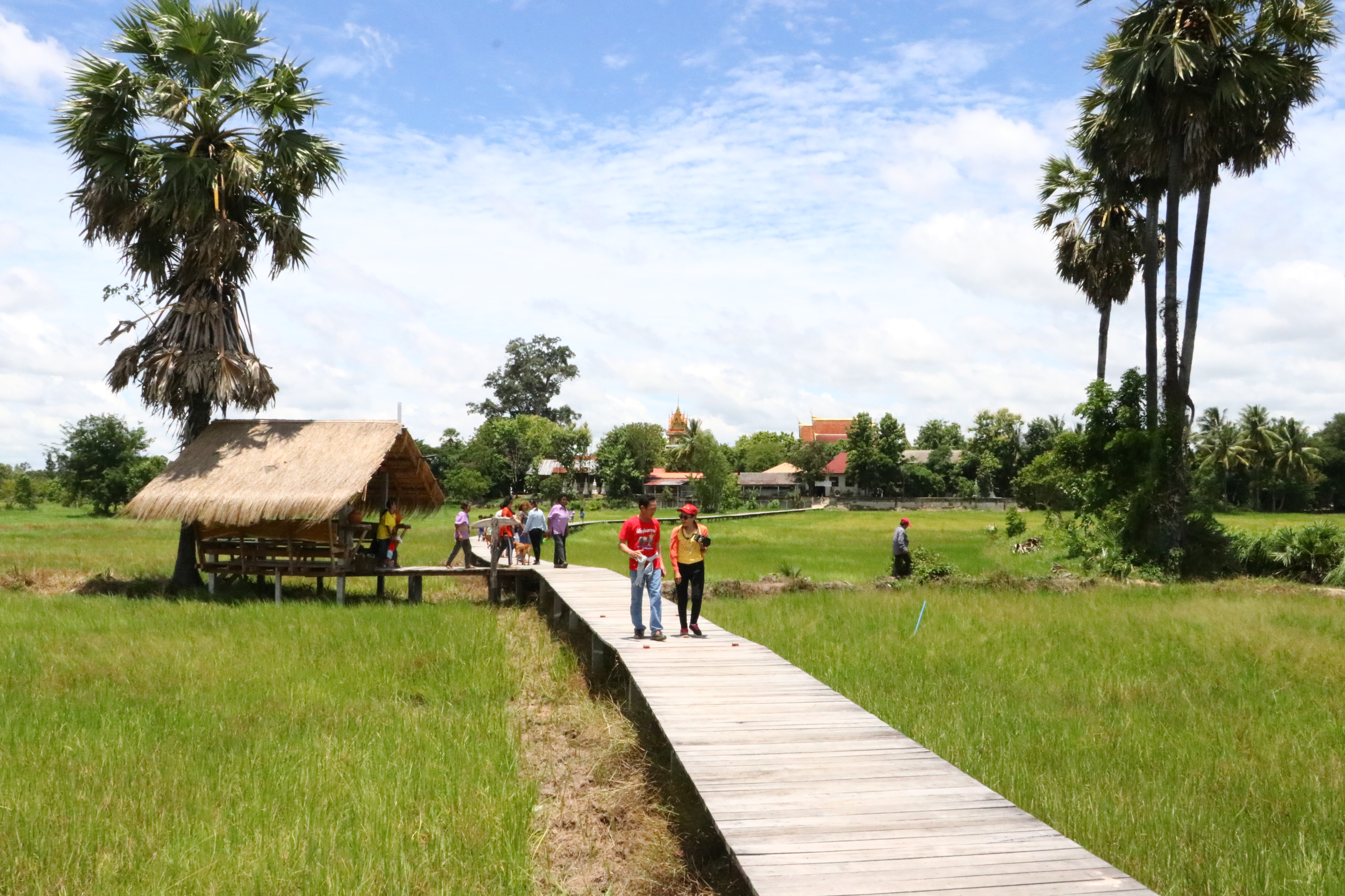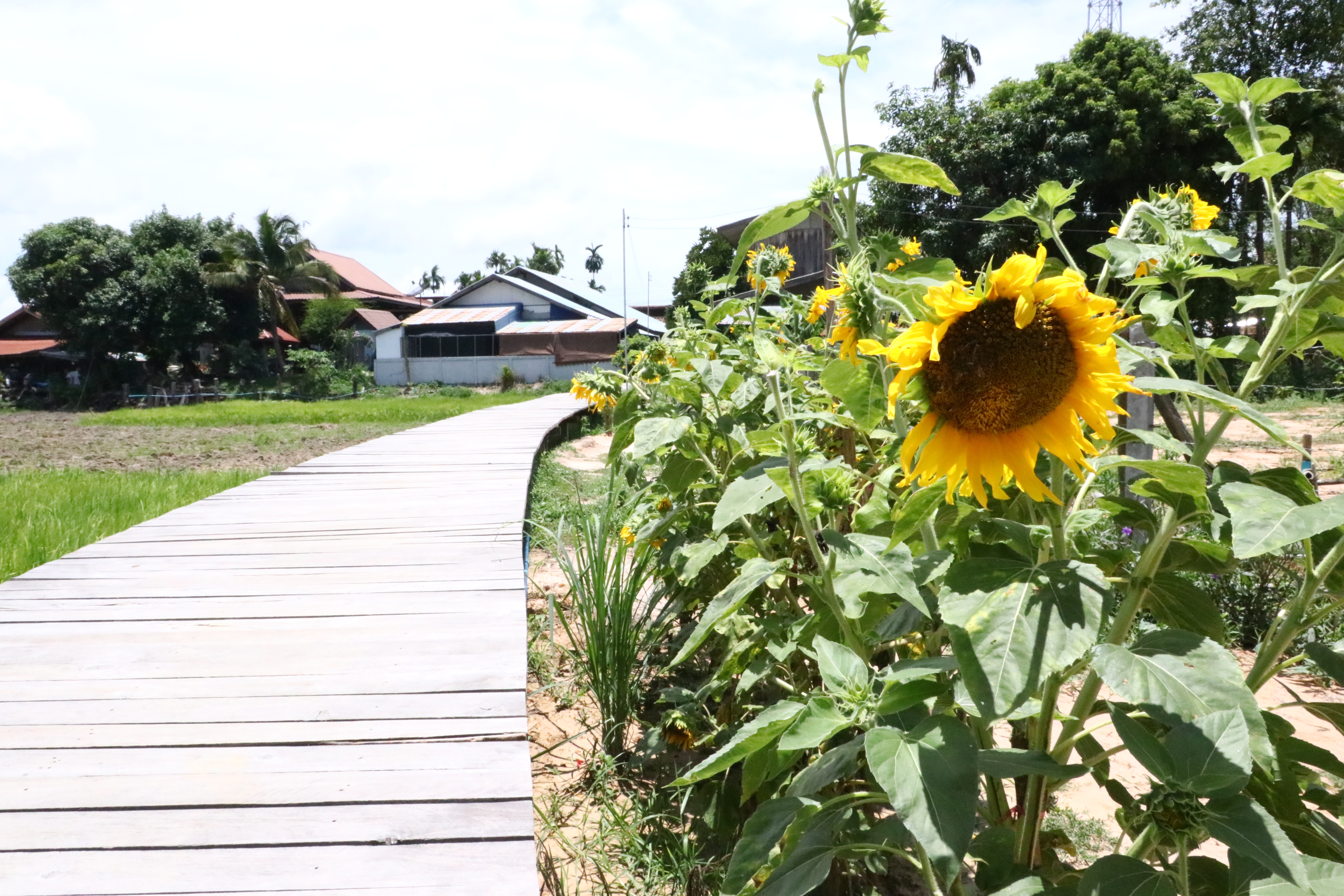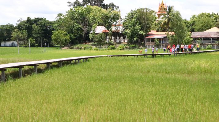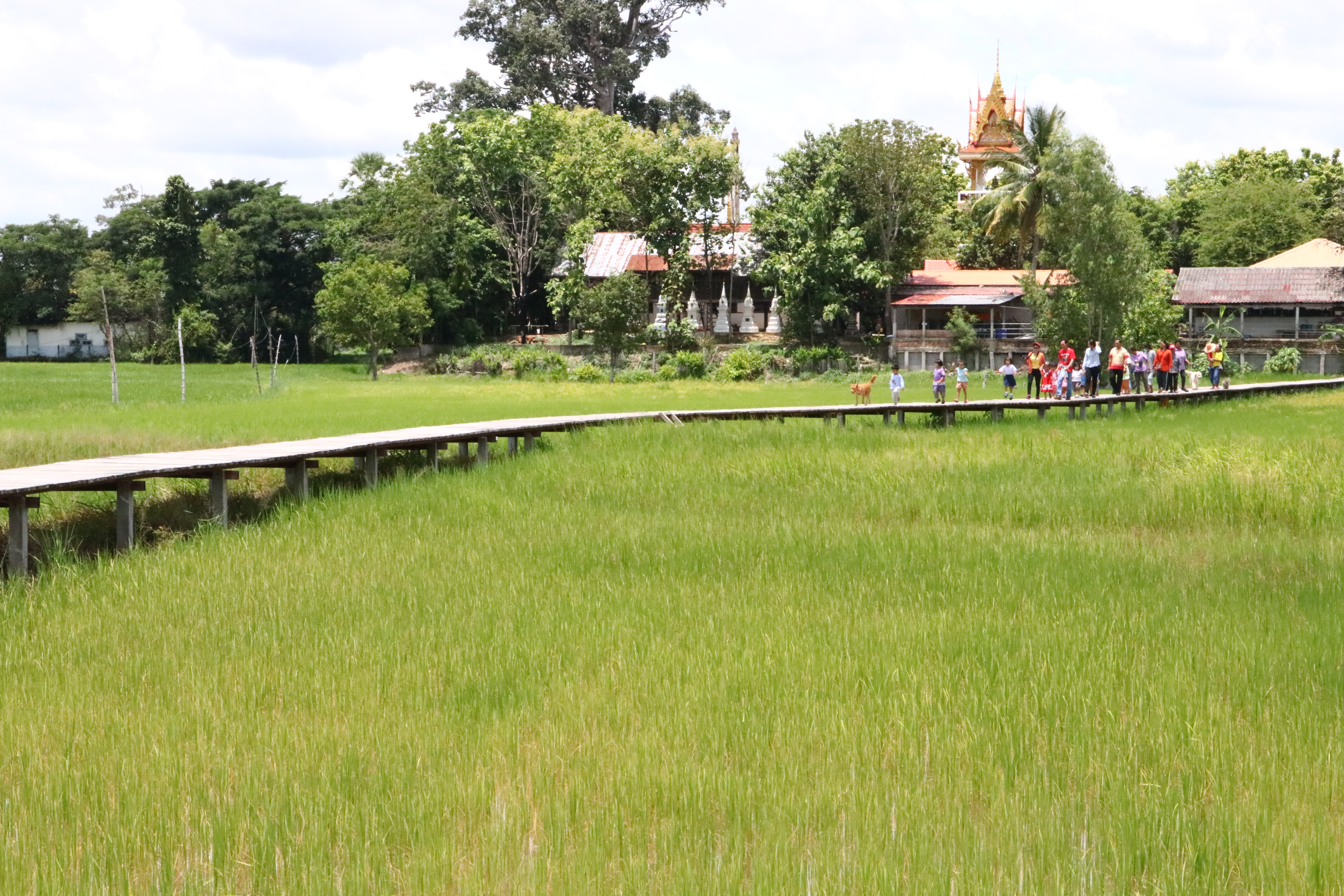 ที่ ขัวฮักขัวแพง ต.บุ่งหวาย อ.วารินชำราบ จ.อุบลราชธานี สะพานที่มีความยาวกว่า 350 เมตร ทอดยาวผ่านทุ่งข้าวเขียวขจี เชื่อมต่อเส้นทางระหว่างหมู่บ้าน ให้พระภิกษุ สามเณร ชาวบ้าน ได้สัญจรไปมา เกิดจากพลังศรัทธาของคนในพื้นที่ ร่วมกัน บริจาค รวมใจจิตอาสาลงแรงสร้างขึ้นมาด้วยความสมัครสมานสามัคคี พร้อมให้การต้อนรับนักท่องเที่ยว ได้สัมผัสถึงกลิ่นไอของท้องทุ่ง ชมพัดโชยเย็นสบาย มุมถ่ายรูปสวยๆ ที่รับรองว่าจะต้องประทับใจ นายสมบูรณ์ โสภีพันธ์ นายองค์การบริหารส่วนตำบลบุ่งหวาย กล่าวว่า ก่อนที่จะมาเป็น “ขัวฮักขัวแพง” นั้นเมื่อก่อนพื้นที่ในบริเวณนี้ เป็นคันนาที่ใช้ในการสัญจรไปวัด ระหว่าง หมู่บ้าน ชุมชน โนนบอน กับ ทุ่งบอน ที่ต้องใช้วัดร่วมกัน เป็นทางเดินที่พระสงฆ์ใช้ในการบิณฑบาต ชาวบ้านต้องใช้เส้นทางนี้เพื่อไปทำบุญ ต่อมาทางผู้นำชุมชนในพื้นที่จึงได้มีการหารือกันที่จะสร้างเส้นทาง “สะพานบุญ” ให้ชาวบ้าน พระสงฆ์ เดินทางไป-มา หากันได้สะดวก โดยเริ่มจากการขออนุญาตเจ้าของที่นาแห่งนี้ จากนั้นได้ขอความอนุเคราะห์ แรงศรัทธาบริจาคจากชาวบ้านพี่น้องประชาชน โดยใช้ช่องทางการติดต่อทางไลน์ ,เฟสบุ๊ค ซึ่งได้ผลตอบรับที่ดีมาก ทั้งจากชาวบ้านในพื้นที่ ต่างจังหวัด และ ต่างประเทศได้ให้ความอนุเคราะห์ แรงสนับสนุน ทั้งการบริจาคทุน และ ไม้ที่เป็นวัสดุสำคัญ