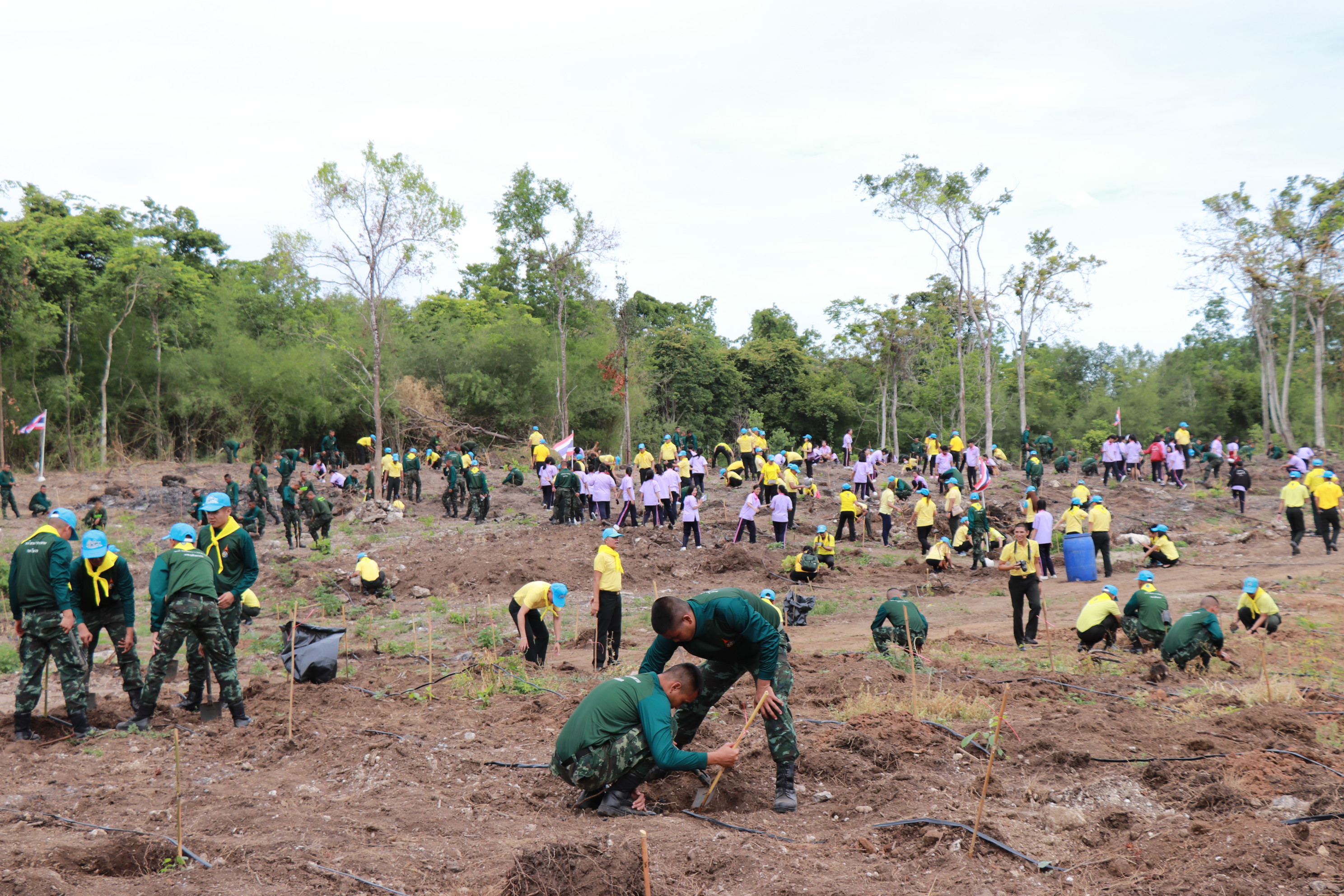 ในการนี้ พล.ต.ฐกัด หลอดศิริ ผู้บัญชาการกองพลทหารราบที่ 9 ได้มอบพันธุ์กล้าไม้ให้กับผู้แทนหัวหน้าส่วนราชการ, ภาคเอกชน กำลังพล และแม่บ้าน สำหรับพันธุ์ไม้ที่ปลูกประกอบด้วย อาทิ ต้นรวงผึ้ง, ต้นพยุง, ต้นประดู่, ต้นสัก และ ต้นมะค่าโมง รวมทั้งสิ้น 2,800 ต้น บนเนื้อที่ 12 ไร่ ซึ่งมีผู้เข้าร่วมกิจกรรม จำนวน 1,000 คน นอกจากนี้บรรยากาศภายในกิจกรรมเต็มไปด้วยรอยยิ้ม พลังแห่งความสุข ของผู้เข้าร่วมกิจกรรม