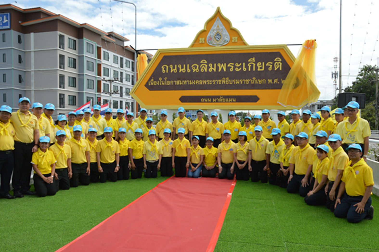 กระทรวงมหาดไทย ร่วมกับหน่วยงานที่เกี่ยวข้องได้ดำเนินโครงการ1จังหวัด 1 ถนนเฉลิมพระเกียรติ ซึ่งเป็นหนึ่งในโครงการภายใต้โครงการจิตอาสาพัฒนาสิ่งแวดล้อมและคุณภาพชีวิตของประชาชน เฉลิมพระเกียรติ เนื่องในโอกาสมหามงคลพระราชพิธีบรมราชาภิเษก โดยให้จังหวัดคัดเลือกถนนที่มีความสำคัญทางประวัติศาสตร์ วัฒนธรรม หรือ เศรษฐกิจ หรือเป็นสัญลักษณ์ของจังหวัด จังหวัดละ 1 สายทาง เพื่อดำเนินการปรับปรุงผิวถนนบาทวิถี และพัฒนาภูมิทัศน์ ให้เป็นระเบียบเรียบร้อย สะอาด สวยงาม ปลอดภัย รวมทั้งปลูกต้นไม้ ไม้ดอก ไม้ประดับ ให้ร่มรื่น สวยงามตลอด 2 ข้างทางจากนั้นผู้ว่าราชการจังหวัดสุพรรณบุรี พร้อมหัวหน้าส่วนราชการและคณะได้ร่วมกันทำกิจกรรมทำความสะอาดกวาดล้างถนน ทาสีสะพานลอยและตรวจดูความเรียบร้อยการปรับภูมิทัศน์บริเวณต้นโพธิ์ศักดิ์สิทธิ์อายุหลายร้อยปีเพื่อให้เป็นระเบียบเรียบร้อยและสวยงาม