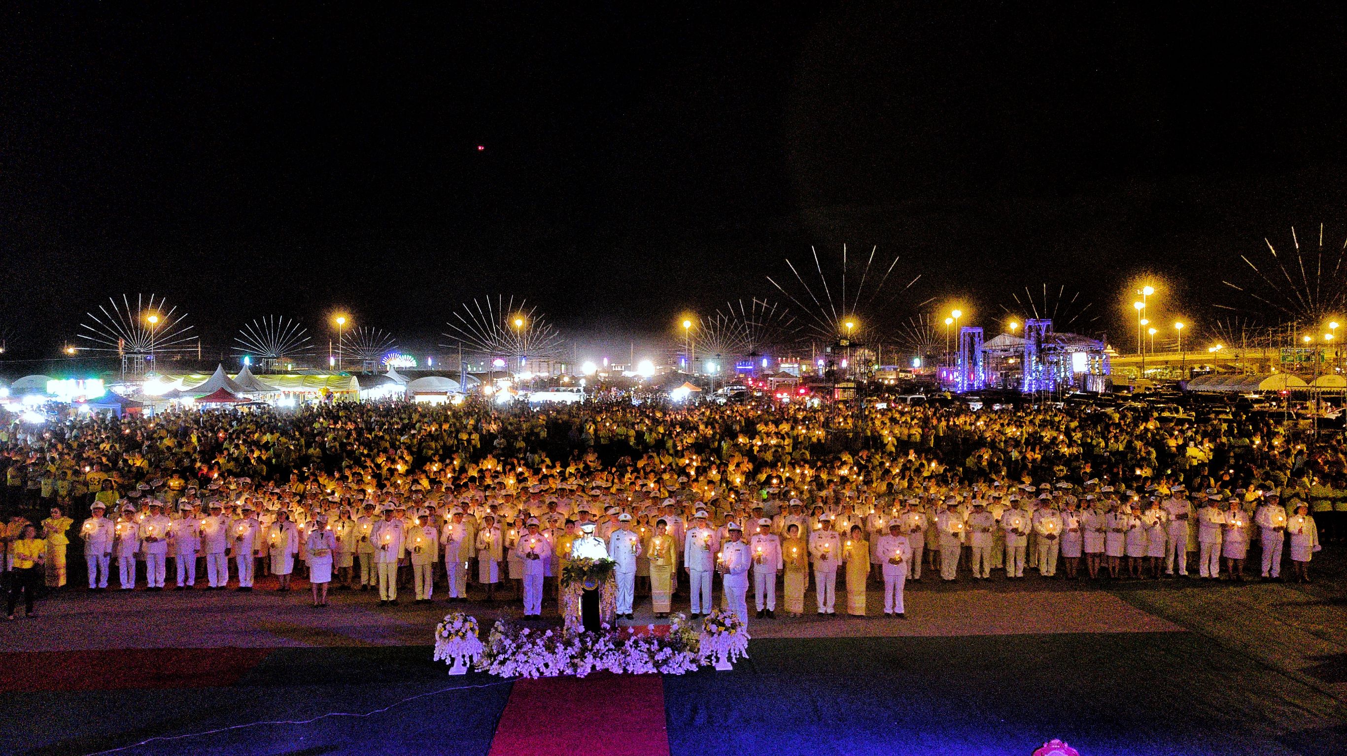 ยิ่งใหญ่อลังการ พสกนิกรชาวปทุมธานี ร่วมจุดเทียนชัยถวายพระพรชัยมงคลพระบาทสมเด็จพระเจ้าอยู่หัวเนื่องในโอกาสวันเฉลิมพระชนมพรรษา 67 พรรษา 28 กรกฏาคม 2562