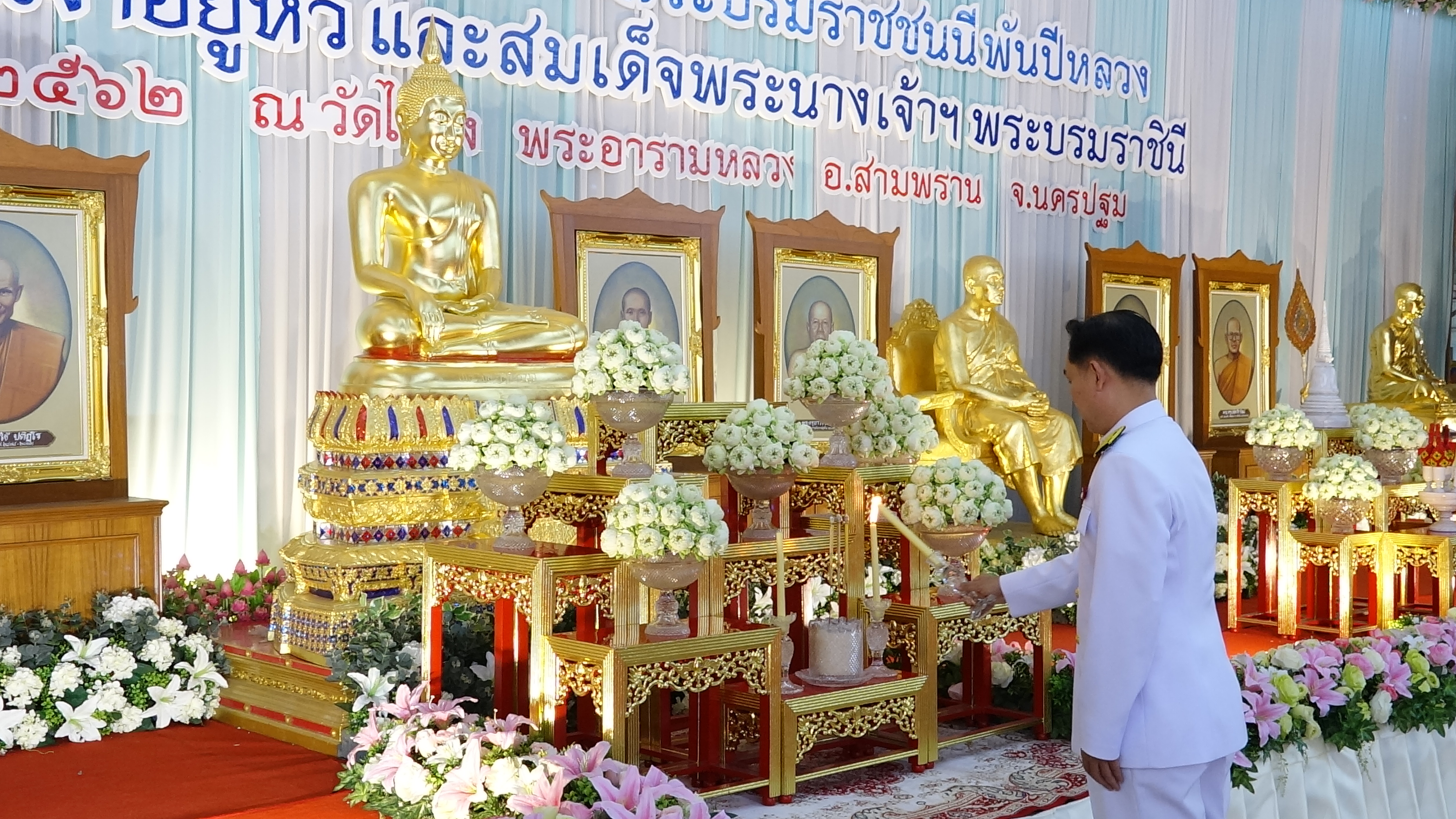 ร่วมด้วยคณะสงฆ์ วัดไร่ขิง พระอารามหลวง พร้อม ข้าราชการ ทหาร ตำรวจ องค์กรปกครองส่วนท้องถิ่น กำนัน ผู้ใหญ่บ้าน พสกนิกรชาวอำเภอสามพรานและใก้ลเคียงจำนวนมาก ร่วมพิธีเจริญพระพุทธมนต์ถวายพระพรชัยมงคล และเจริญจิตภาวนา ถวายเป็นพระราชกุศล และเพื่อเป็นการเทิดทูนสถาบันพระมหากษัตริย์ตลอดจนแสดงออกถึงความจงรักภักดี และสำนึกในพระมหากรุณาธิคุณ ด้วยการทำกิจกรรมทางพระพุทธศาสนาร่วมกัน โดยมีสถาบันพระมหากษัตริย์เป็นศูนย์รวมจิตใจของคนไทยทั้งชาติ