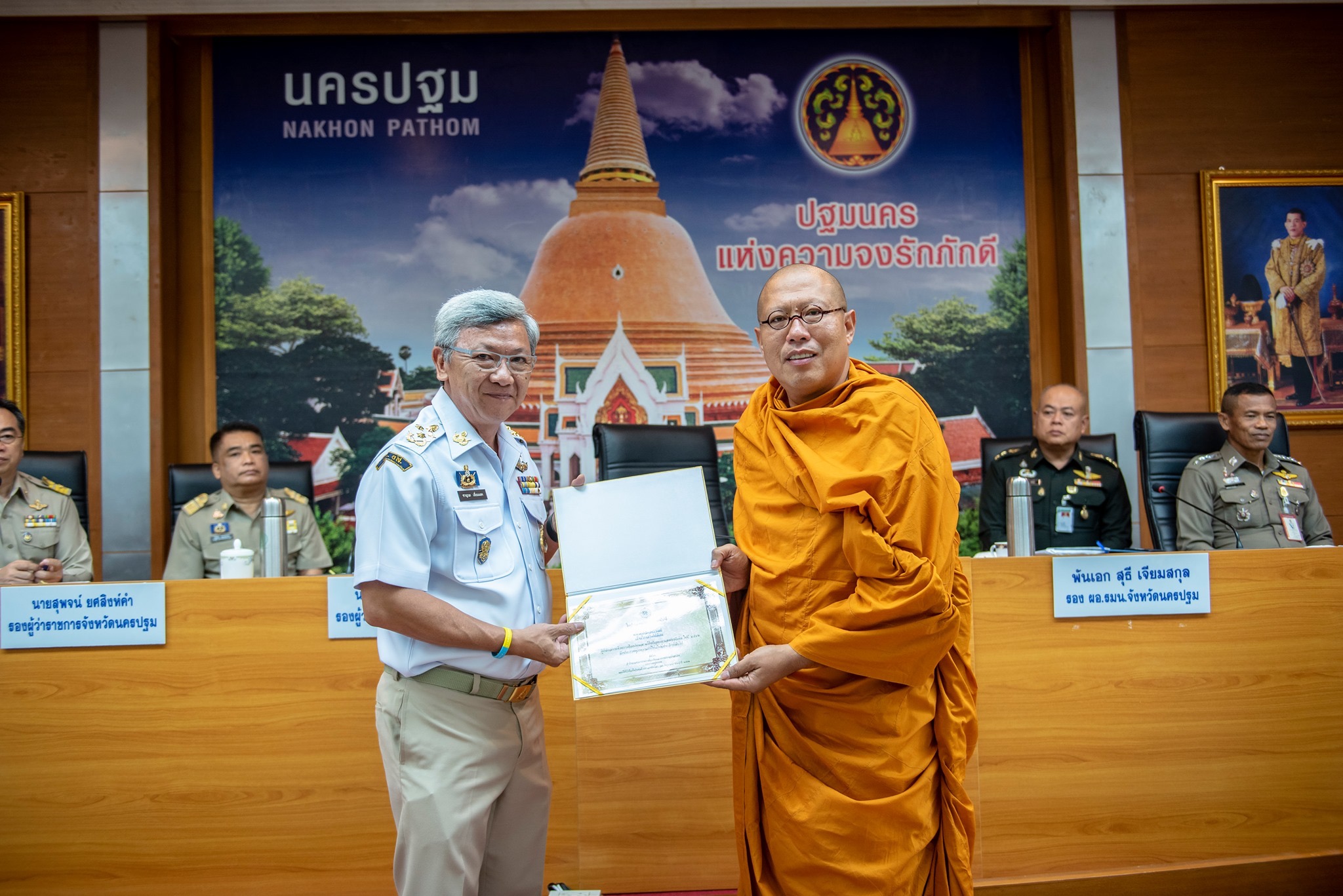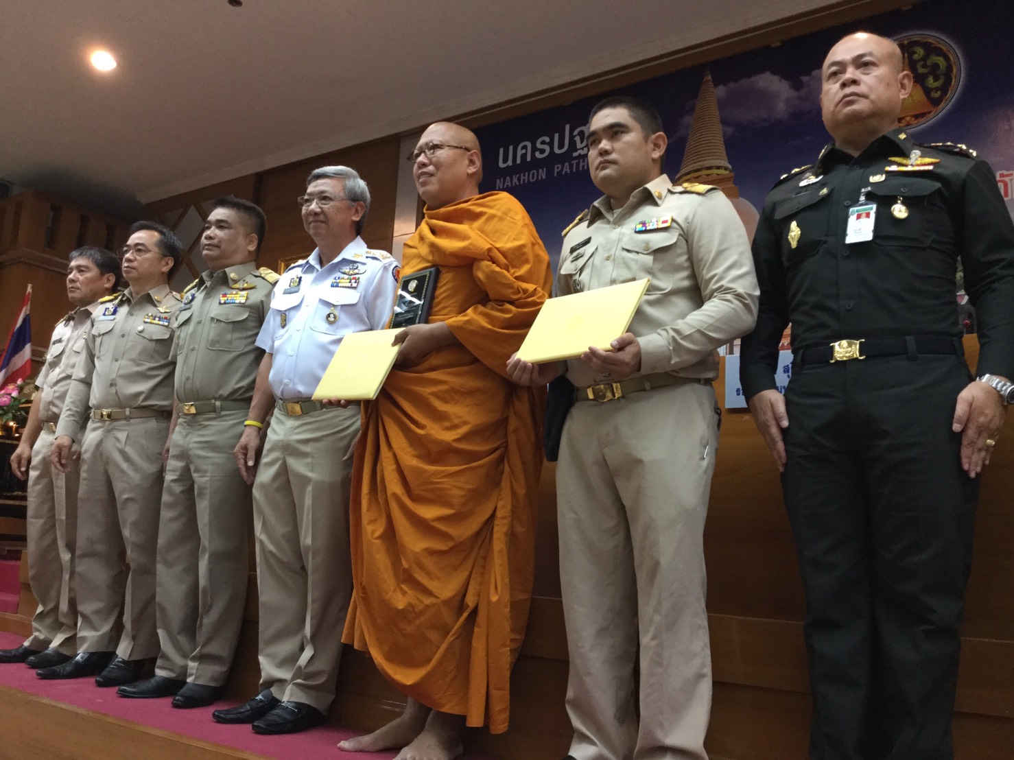 เมื่อวันอังคารที่ 30 ก.ค. 62 เวลา 09.00 น. ณ ห้องประชุม ชั้น 5 ศาลากลางจังหวัดนครปฐม นายชาญนะ เอี่ยมแสง ผู้ว่าราชการจังหวัดนครปฐม ประธานในพิธีมอบโล่ประกาศเกียรติคุณบุคคลและองค์กรที่มีผลงานยอดเยี่ยมและดีเด่นในการป้องกันและแก้ไขหาปัญหายาเสพติด ประจำปี 2562 มอบถวายแด่พระเดชพระคุณ พระครูปลัดสิทธิวัฒน์หลวงพี่น้ำฝน เจ้าอาวาสวัดไผ่ล้อม ต.พระปฐมเจดีย์ อ.เมือง จ.นครปฐม