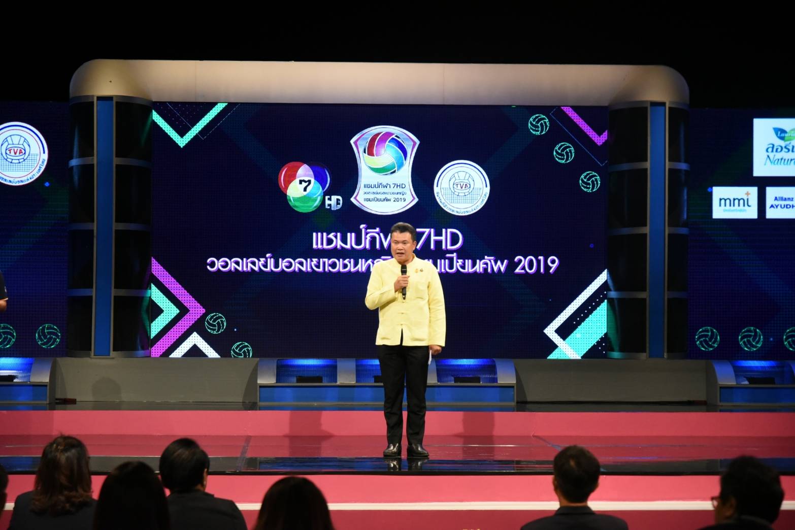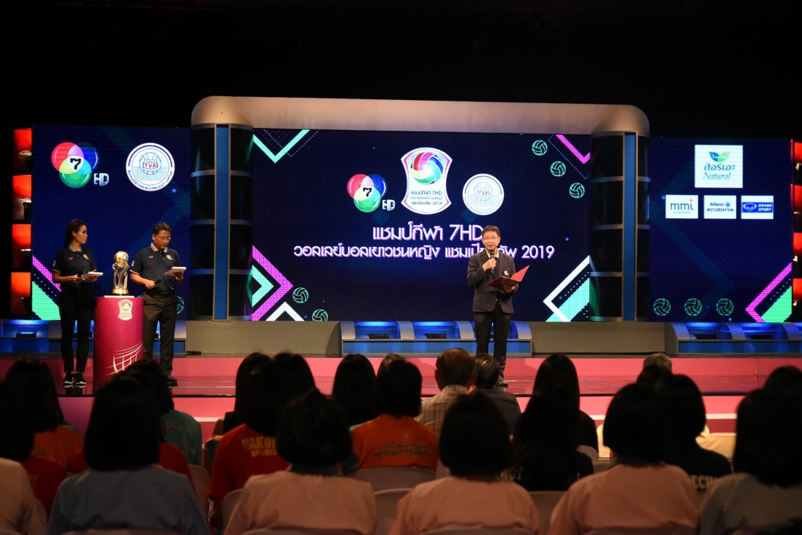 ด้านนายปิยะพงษ์ โพธิ์สูง ผุ้จัดการฝ่ายผลิตรายการ ช่อง 7HD กล่าวด้วยว่า ทางช่อง 7HD มรนโยบายสนับสนุนด้านกีฬามาอย่างยาวนาน และจากความสำเร็จของการริเริ่มจัดการแข่งขั้น แชมป์ 7 สี วอลเล่ย์บอลอุดมศึกษา ทำให้ปัจจุบันกีฬาวอลเล่ย์บอลหญิง เป็นกีฬาที่ประชาชนให้ความสนใจและติดตามเป็นอย่างมาก โดยในปีนี้ได้ปรับยเปลี่ยนรูปแบบการแข่งขั้นเป็นระดับเยาวชนให้มีโอกาสก้าวขึ้นสู่ทีมชาติ หรือนักกีฬาอาชีพในอนาคต โดยได้เชิญทีมโรงเรียน 8 ทีม ที่คัดเลือกจากทีมชั้นนำของกีฬาวอลเลย์บอลระดับเยาวชนหญิง มาประเดิมเข้าร่วมแข่งขันด้วย และในวันนี้ยังเป็นวันแรกที่เปิดรับสมัครฟุตบอลนักเรียน 7 คน แชมเปียนคัพ 2019 อีกด้วย โดยเปิดรับระหว่างวันที่ 30 กรกฎาคม – 9 สิงหาคมนี้ และเปิดรับเฉพาะโรงเรียนมัธยมฯ สายสามัญ จำนวนจำกัดเพียง 256 ทีมเท่านั้น